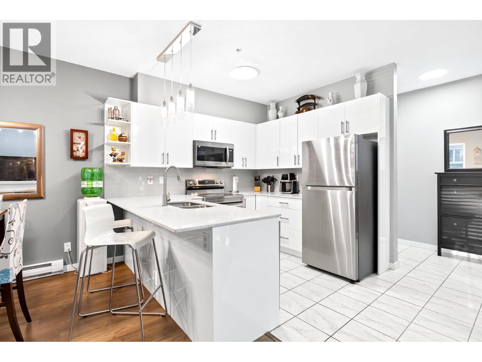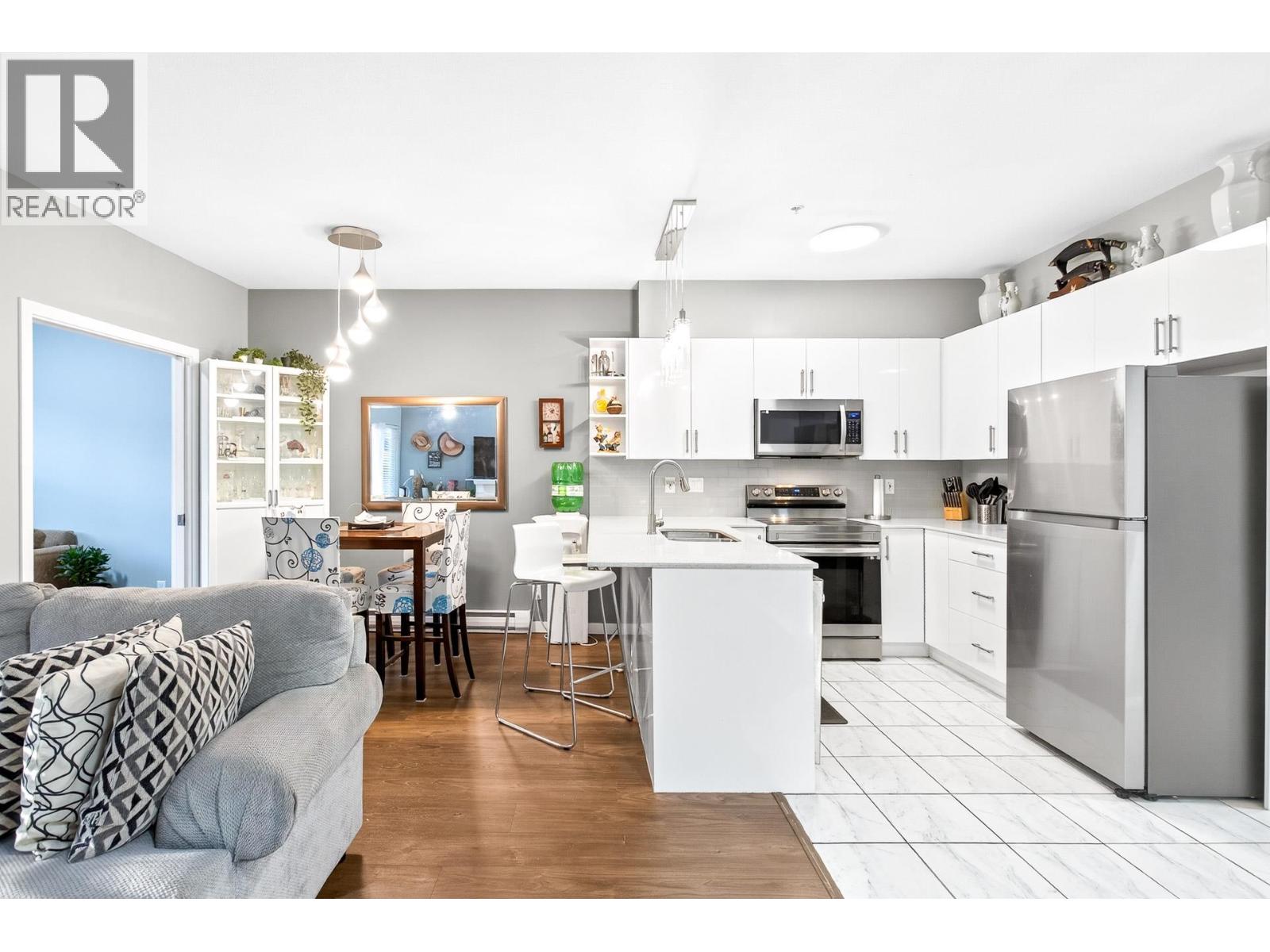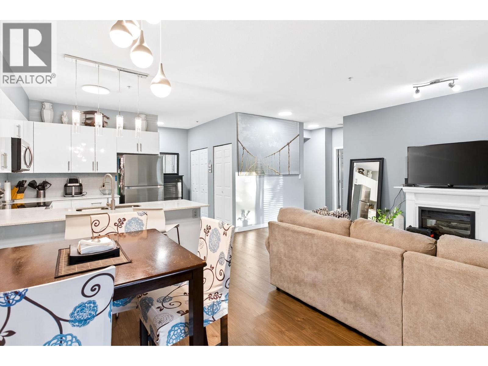 | Rare CORNER UNIT alert! This stunning 1,143 sqft home offers 2 bedrooms, 2 baths + den (large enough for a 3rd bedroom), perfect for downsizers or small families. Located directly across from Gates Park with panoramic views and scenic riverside trails. Features include 2 parking spots with EV charging capacity and a storage locker. The open-concept layout showcases a modern kitchen with stainless steel appliances, quartz counters, and a large island with breakfast bar flowing into the bright dining and living areas-spacious enough for house-size furniture. The primary suite offers deck access, a windowed ensuite with dual sinks, and a soaker tub. Steps to parks, schools, shops, trails & West Coast Express. BONUS: MASSIVE 200+ sqft covered balcony running through majority of the unit! (id:5347) | |||
