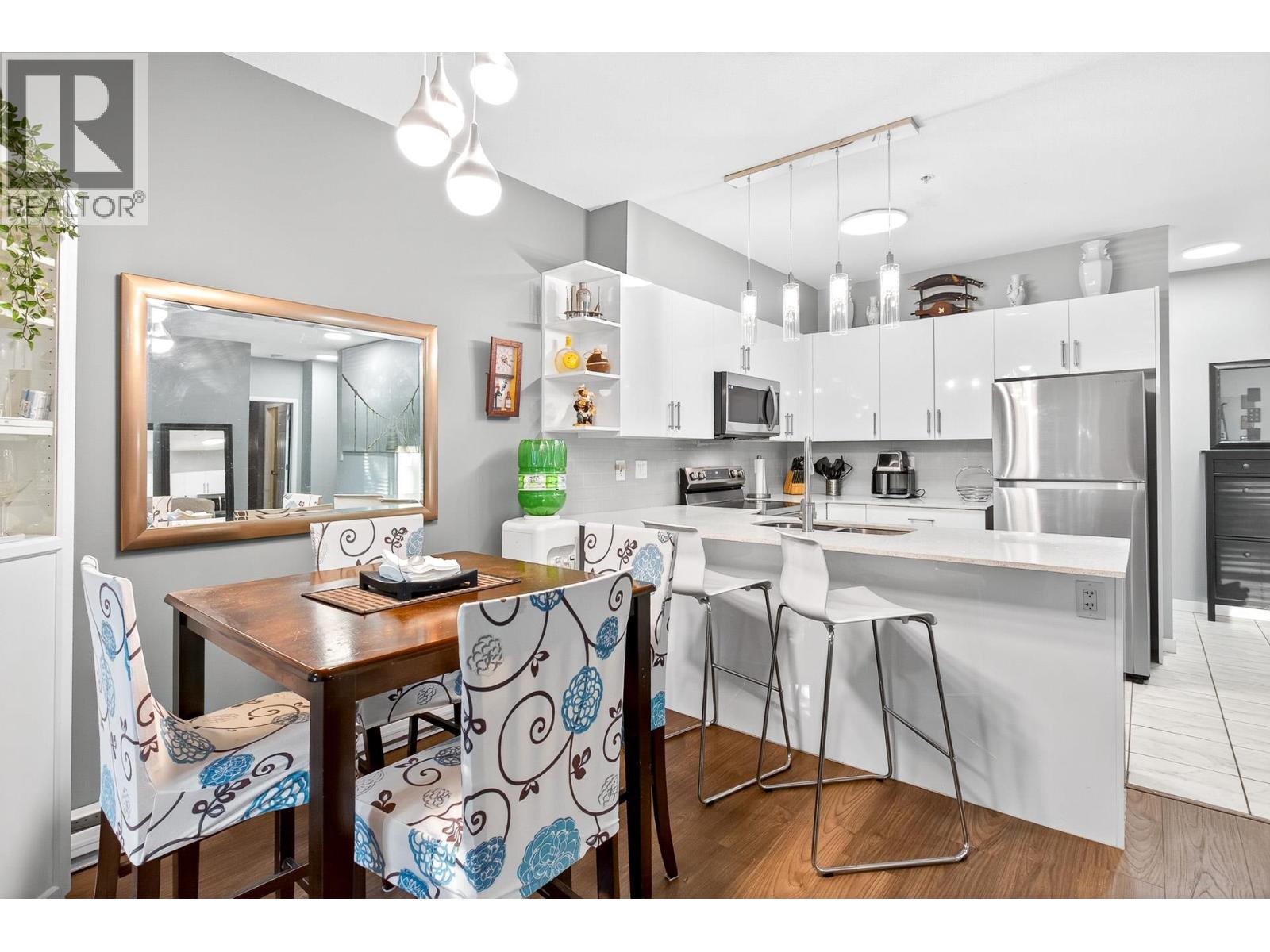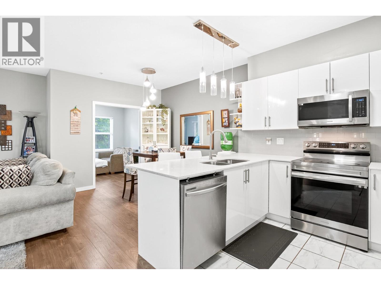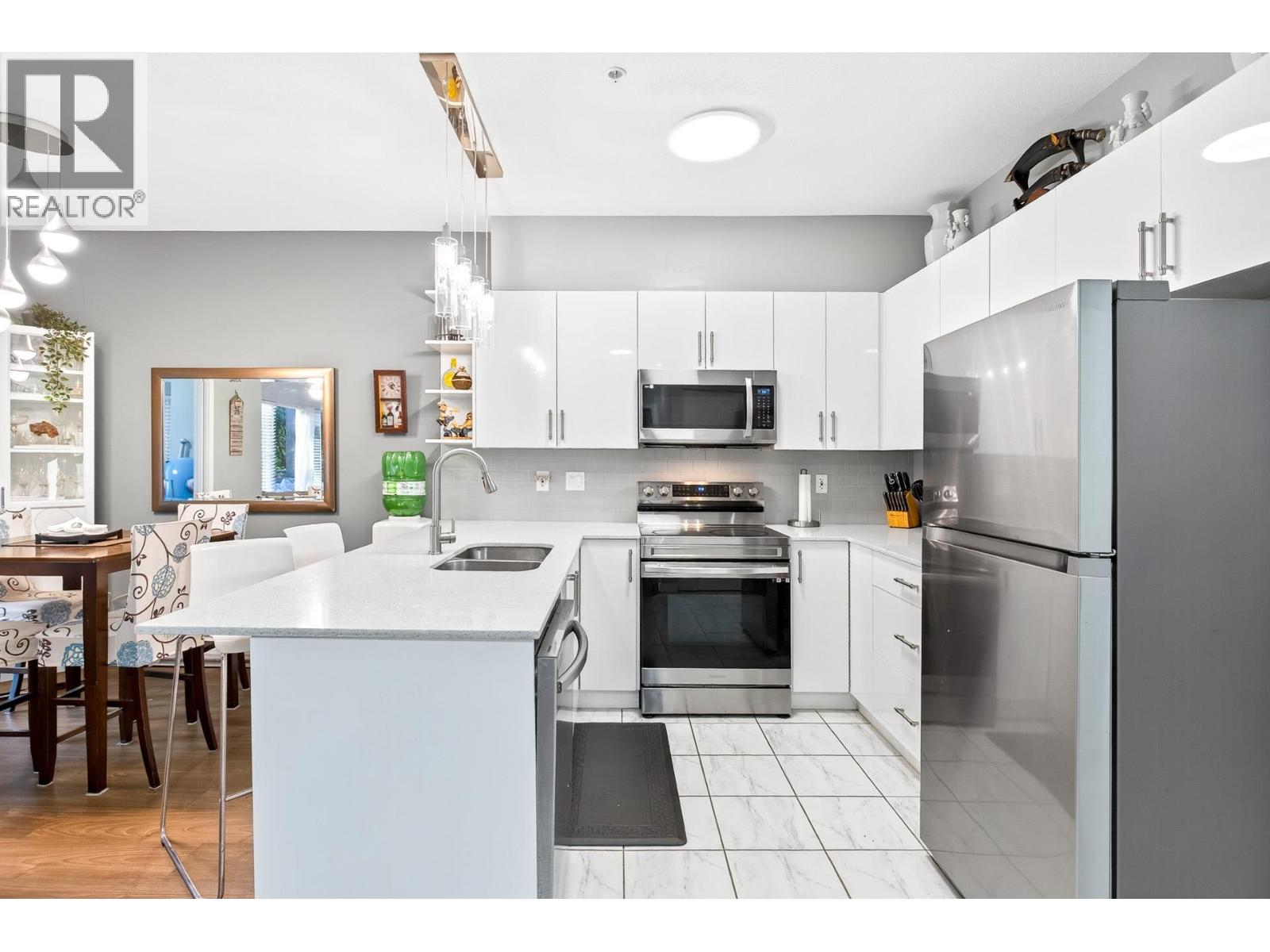 | Rare CORNER UNIT alert! This stunning 1,143 sqft home offers 2 bedrooms, 2 baths + den (large enough for a 3rd bedroom), perfect for downsizers or small families. Located directly across from Gates Park with panoramic views and scenic riverside trails. Features include 2 parking spots with EV charging capacity and a storage locker. The open-concept layout showcases a modern kitchen with stainless steel appliances, quartz counters, and a large island with breakfast bar flowing into the bright dining and living areas-spacious enough for house-size furniture. The primary suite offers deck access, a windowed ensuite with dual sinks, and a soaker tub. Steps to parks, schools, shops, trails & West Coast Express. BONUS: MASSIVE 200+ sqft covered balcony running through majority of the unit! (id:5347) | |||