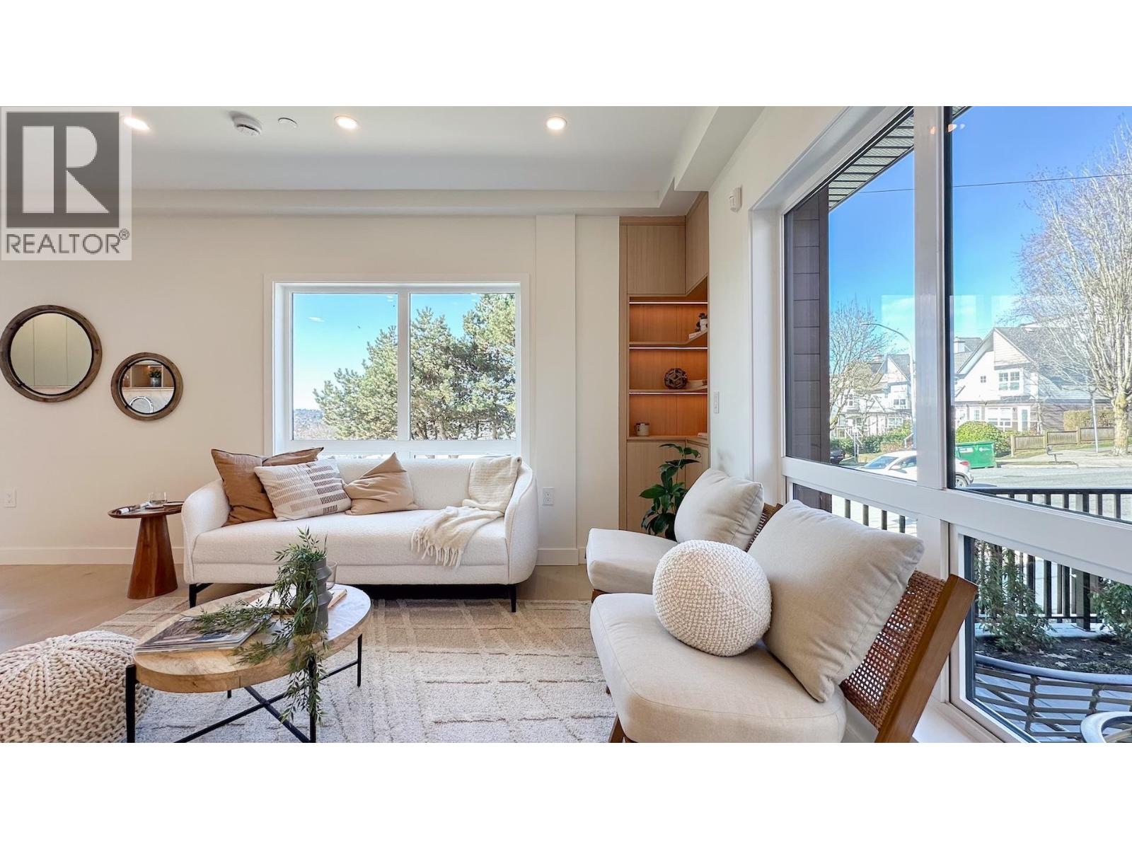 | Welcome to Burnaby North's brand new 3-bedroom residence, ideally situated just one block from Vancouver in the heart of Willingdon Heights. This South-West facing, 4-level townhouse showcases beautiful North Shore mountain views and an open-concept designer floor plan. Built by a respected local builder with a refined designer touch, this home features elegant hardwood flooring, custom cabinetry & closets, quartz countertops, and premium finishes throughout. Each unit is equipped with radiant in-floor heating and air conditioning, seamlessly combining contemporary design with everyday comfort. Enjoy a central location just minutes from Second Narrows Bridge, surrounded by vibrant restaurants, cafés, boutique shops, parks, recreation facilities and convenient transit. Warranty 2/5/10 (id:5347) | |||