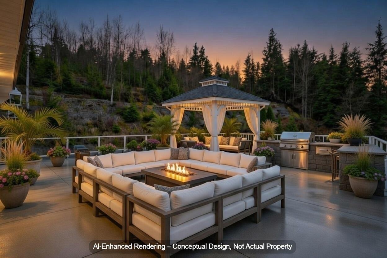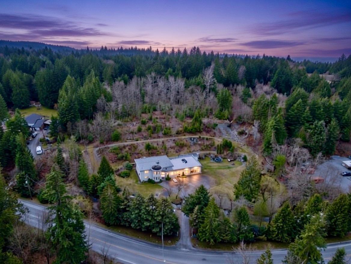 | Truly one of a kind multi-generational estate on 2.72 acres in Mission! Castle-like custom build with Turret, 5,273 sqft home w/ 8 bedrooms & 6 bathrooms. Tucked behind lush greenery & gates w/ lazy river, pond, fire pit, garden, biking trails & play structure for kids. Built for 3 families w/ flexible suites for living or income! (Downstairs) 3-bed suite w/ full bath + (unfinished ensuite) massive open great room & in-floor heating throughout. (Entry level) 2-bed 2-bath suite w/ great room. (Upper) 3 beds, main bath & ensuite, great room & 1,700+ sqft deck w/ walkouts. Elevator, Instant hot water, 1-yr furnace with A/C, clean well water, septic 10yrs (pumped/yrly) (Outdoors) Workshop, 8x8 powered bunkhouse, RV parking, 20x40 paved tent area, 15x20 paved pad. Endless options, Call Today! (id:5347) | |||