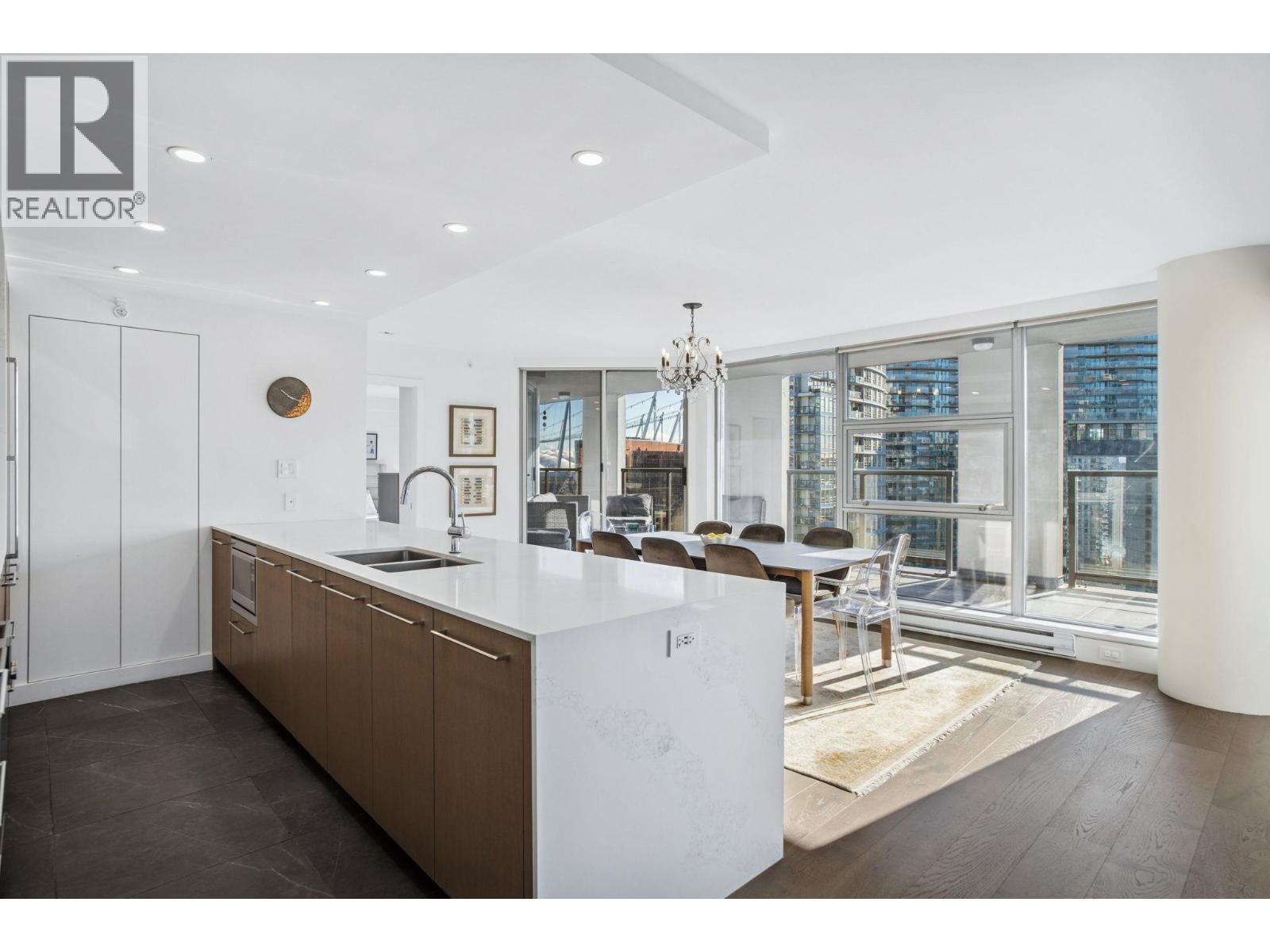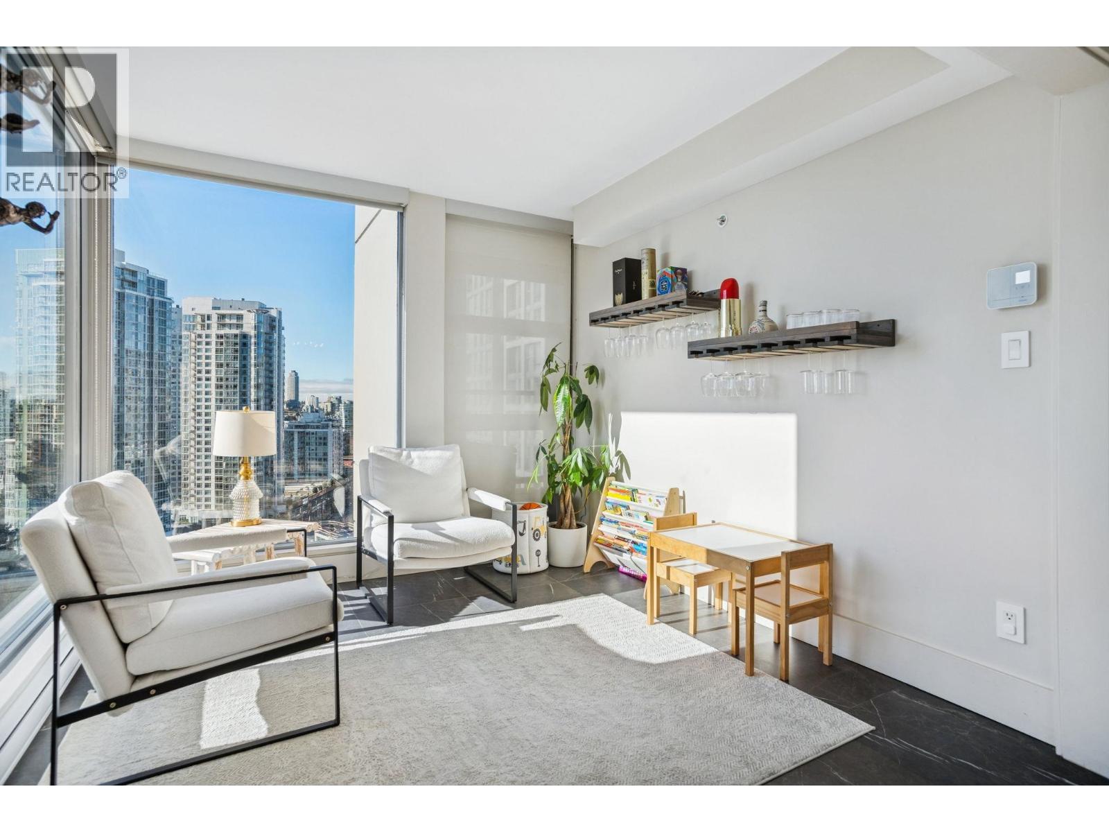 | Welcome to Nova by Bosa Properties _ a rare fully renovated 1,308 square ft corner 2 bed, 2 bath + den offering over 400 square ft of outdoor space across two covered large balconies with stunning water and city views. A smart, no-wasted-space layout enhances everyday living. The designer renovation features a gourmet kitchen with premium Gaggenau appliances, custom cabinetry, engineered flooring, spa like bathrooms, roller blinds, tailored closets, and much more. Quality concrete construction in an unbeatable location, steps to the best of Yaletown, the Seawall, parks and marina. Amenities include a gym, jacuzzi, elegant lobby, party room, and a guest suite. Includes 2 parking stalls & 1 locker - a rare turnkey opportunity in the heart of Yaletown. Contact us today for a private tour. OH: March 7 & 8, Sat/Sun 2-4PM (id:5347) | |||