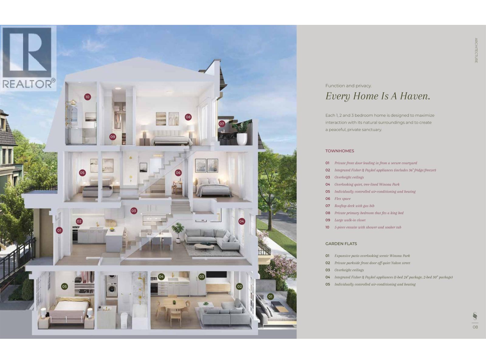 | EXTREMELY MOTIVATED! HUGE DISCOUNT AVAILABLE! Savanah Vancouver - 36 Georgian-inspired parkside townhomes & garden flats on Vancouver's Westside Cambie Corridor. This A1 plan urban 1-bed garden flat offers 435 SF interior + 100 SF private patio directly across from Winona Park. Features 9' overheight ceilings, integrated Fisher & Paykel 24" appliance pkg (cooktop, wall oven, fridge/freezer, DW), engineered hardwood floors, quartz countertops & backsplash, crown mouldings, individually controlled A/C & heating, in-suite front-load W/D, and Kohler brushed brass fixtures throughout. Light colour palette. Includes 1 parking stall. Private ground-level entry off quiet Yukon St with parkside views. Steps to Langara Golf Course & walking trails. 7-min walk to Canada Line. (id:5347) | |||