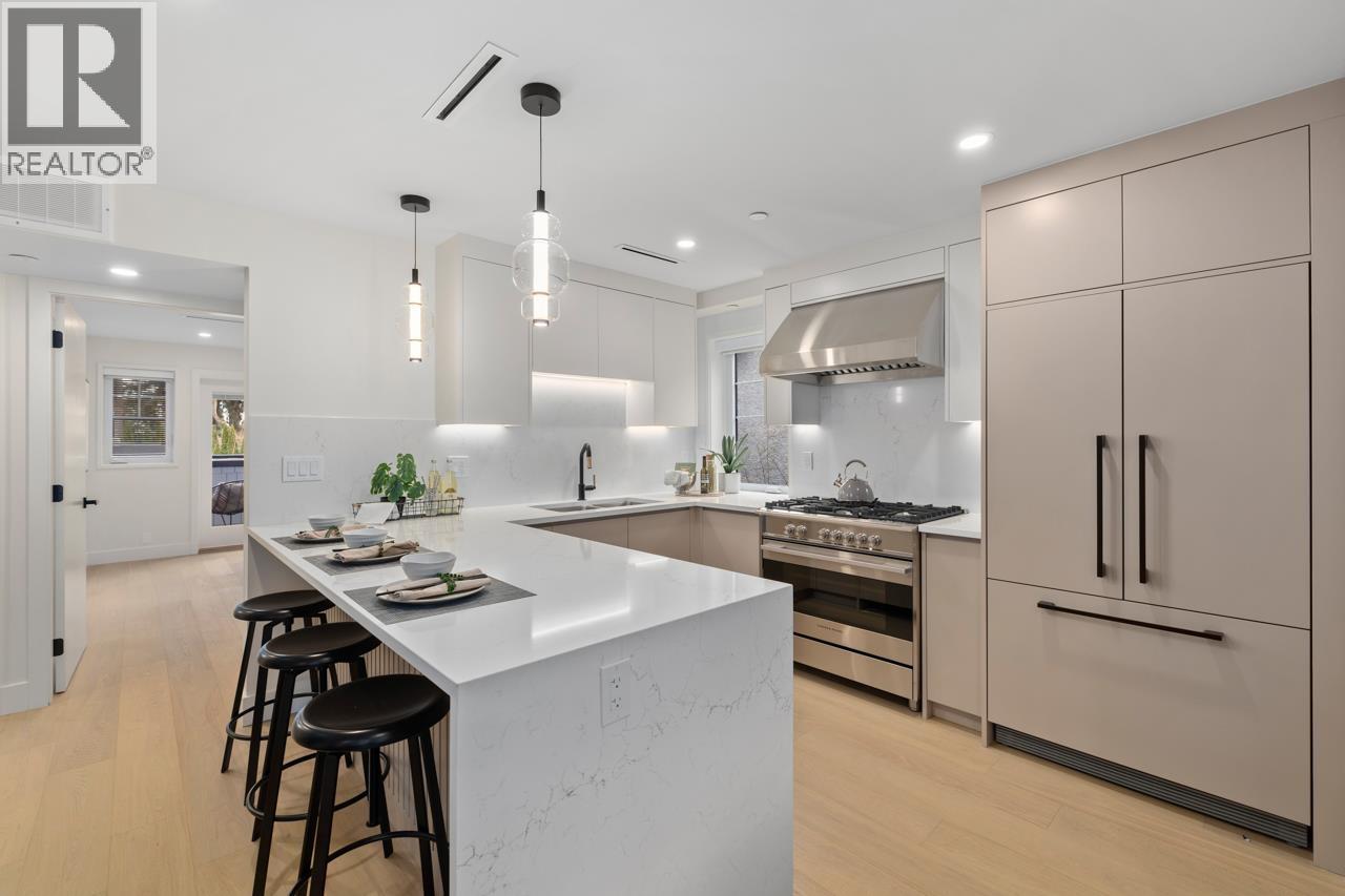 | Welcome to 5West built by Asanti homes, this 3 + Den home offers functionality and style in every detail! This residence spans 2 thoughtfully designed levels with the main floor boasting a spacious living room, dining area perfect for large family gatherings, gourmet kitchen, custom BCG cabinetry, integrated appliances and a large pantry. The home features a main floor primary bedroom with ensuite bathroom to accommodate all families. The upper level is perfect for the family retreat with 2 bedrooms and secondary family room/office. Enjoy the spacious fenced yard, storage locker and partially covered parking with unbeatable walkability to all of Kerrisdale's amenities. Open House Sat/Sun Feb 28th/March 1st 2-4pm (id:5347) | |||