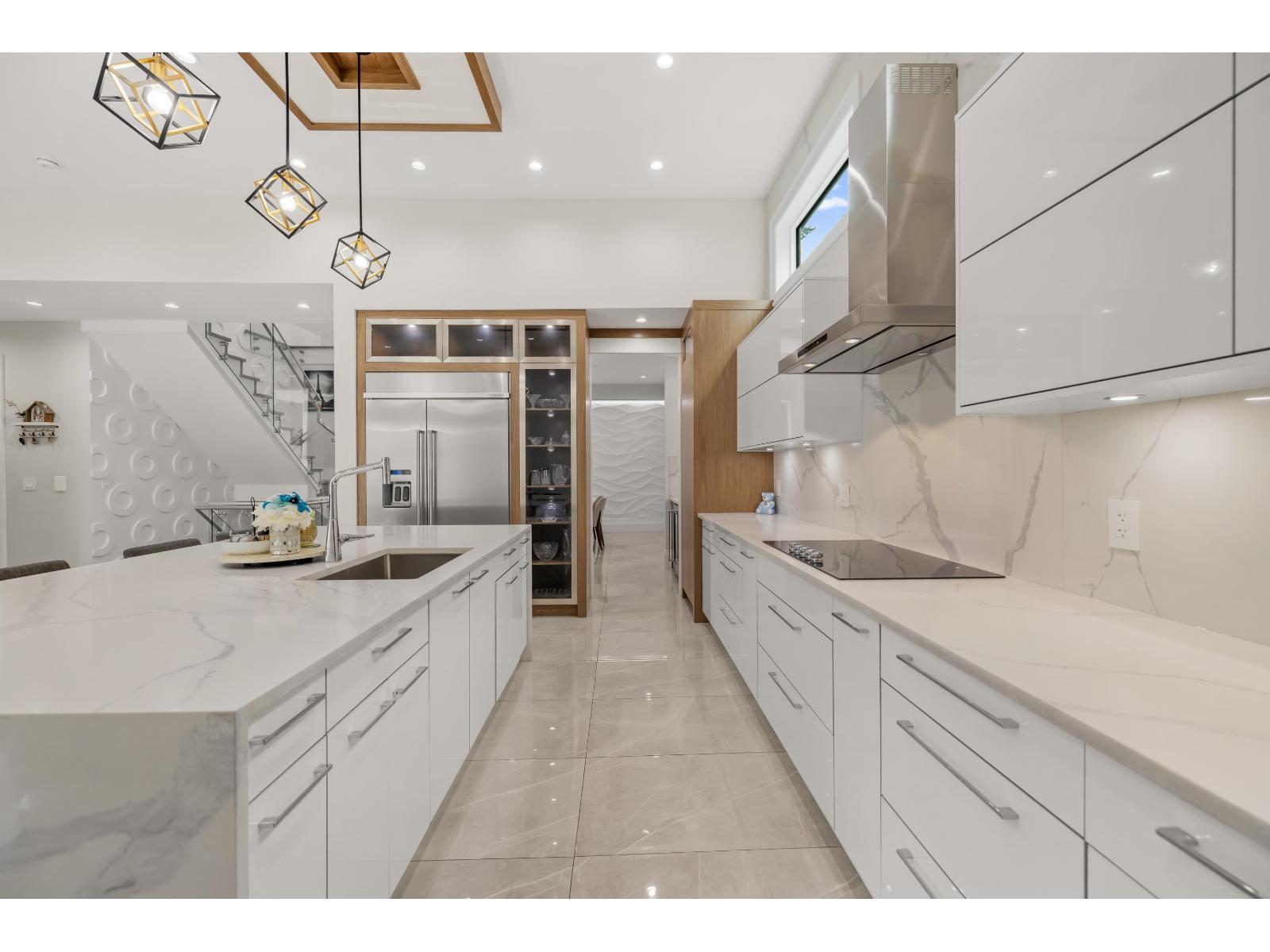 | Experience the peak of luxury with this custom-built 5,200 sq. ft. home in Fraser Heights. Designed for connection, the open-concept layout features soaring vaulted ceilings that seamlessly link the upper and lower floors. The gourmet main floor boasts a massive family room, formal dining, and a secondary wok kitchen with a walk-in pantry. Upstairs, discover four spacious bedrooms with private en-suites, including a primary retreat with three closets. Set on a 7,100 sq. ft. lot, the home offers a garden sprinkler system and tons of parking. Located steps from the best schools in town, it includes a 2-bedroom legal suite with excellent tenants who wish to stay. A perfect blend of ethical craftsmanship and smart investment. OPEN HOUSE SUN MARCH 8 2-4PM (id:5347) | |||