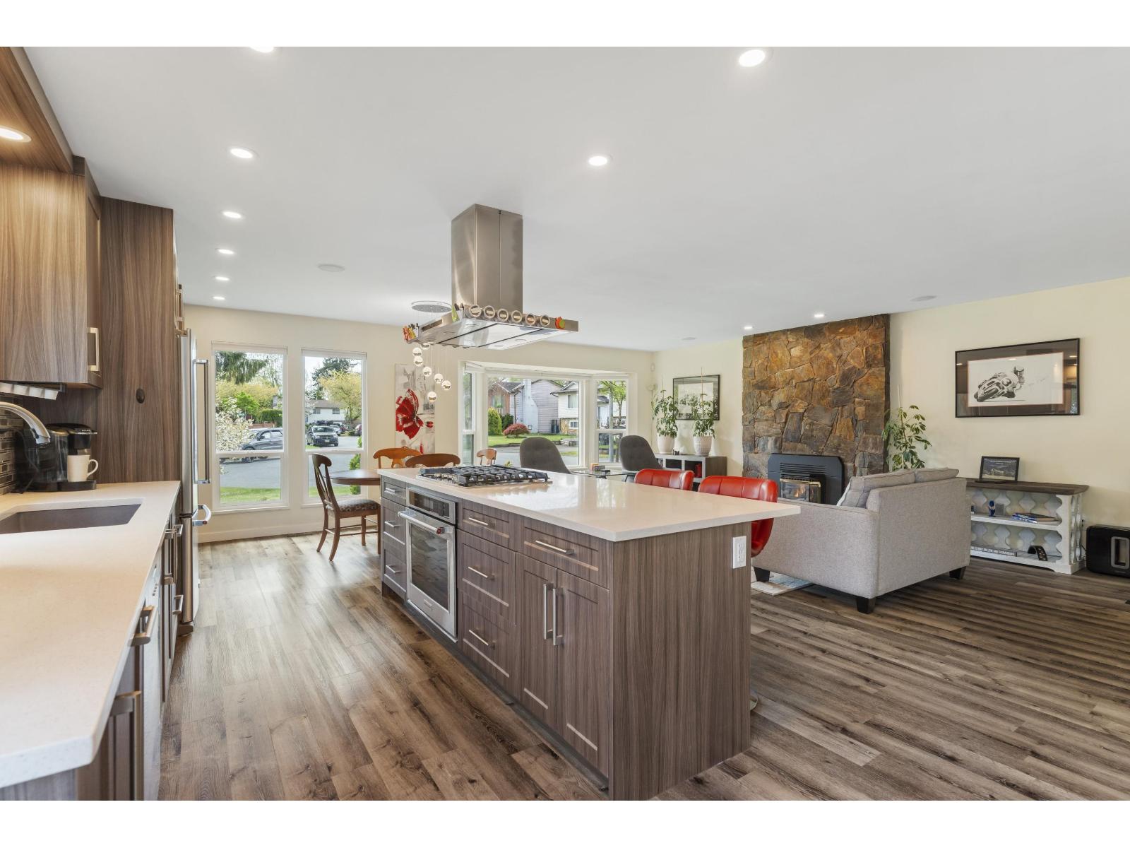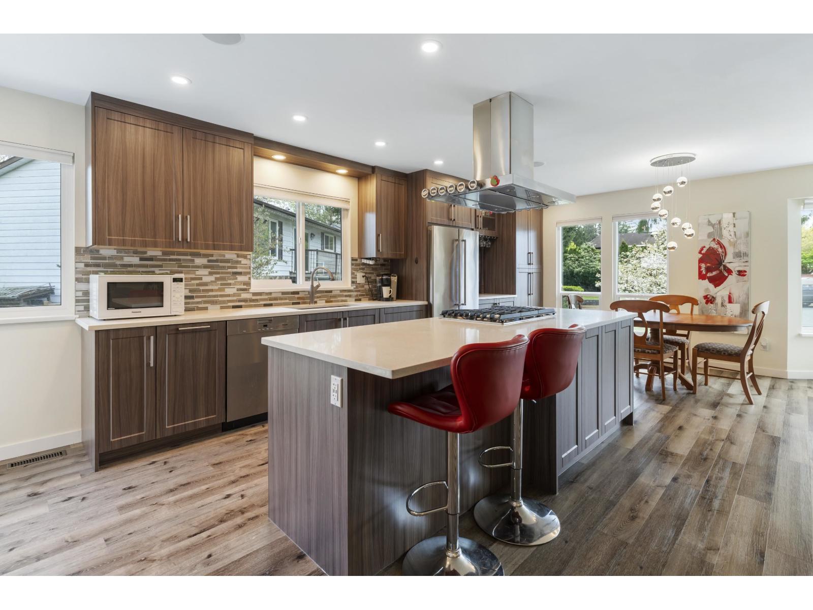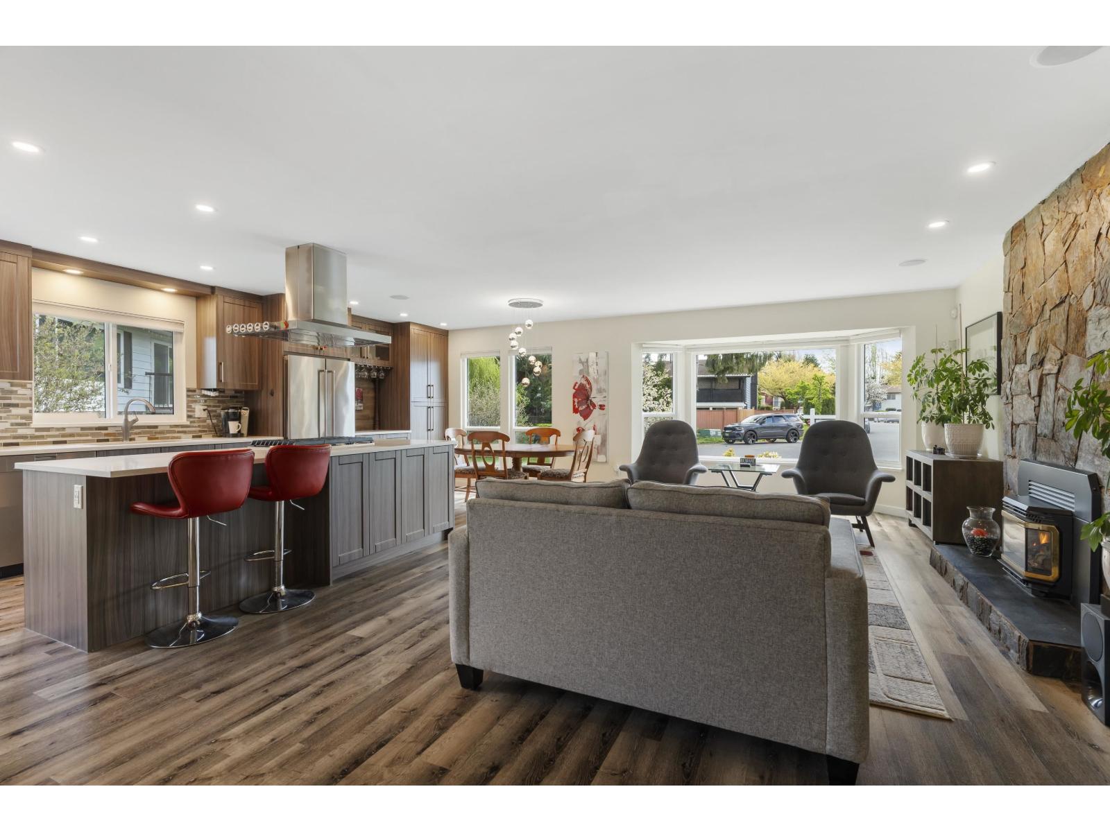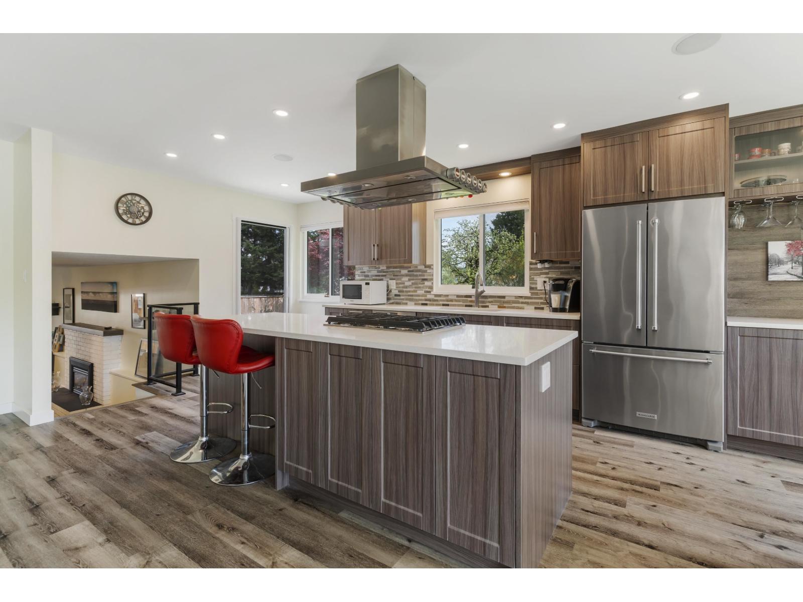 | Tucked away in a quiet East Newton cul-de-sac, this beautifully updated 3 bed, 3 bath home (with 4th bed potential) offers comfort, style, and suburban charm. Surrounded by greenery, it features a renovated kitchen/living space, 2 gas fireplaces, upgraded bathrooms and master ensuite, front windows, siding, flooring, appliances, built-ins & more. The garage doubles as a workshop with driveway parking for up to 6 cars! Enjoy the sunny fenced yard, gas BBQ hookup, EV charger, built-in speakers/TVs, and hot tub-ready patio - BONUS - A/C on main level. A perfect family-friendly retreat in a sought-after neighbourhood. Open House - Saturday, March 7th from 1-2:30PM (id:5347) | |||