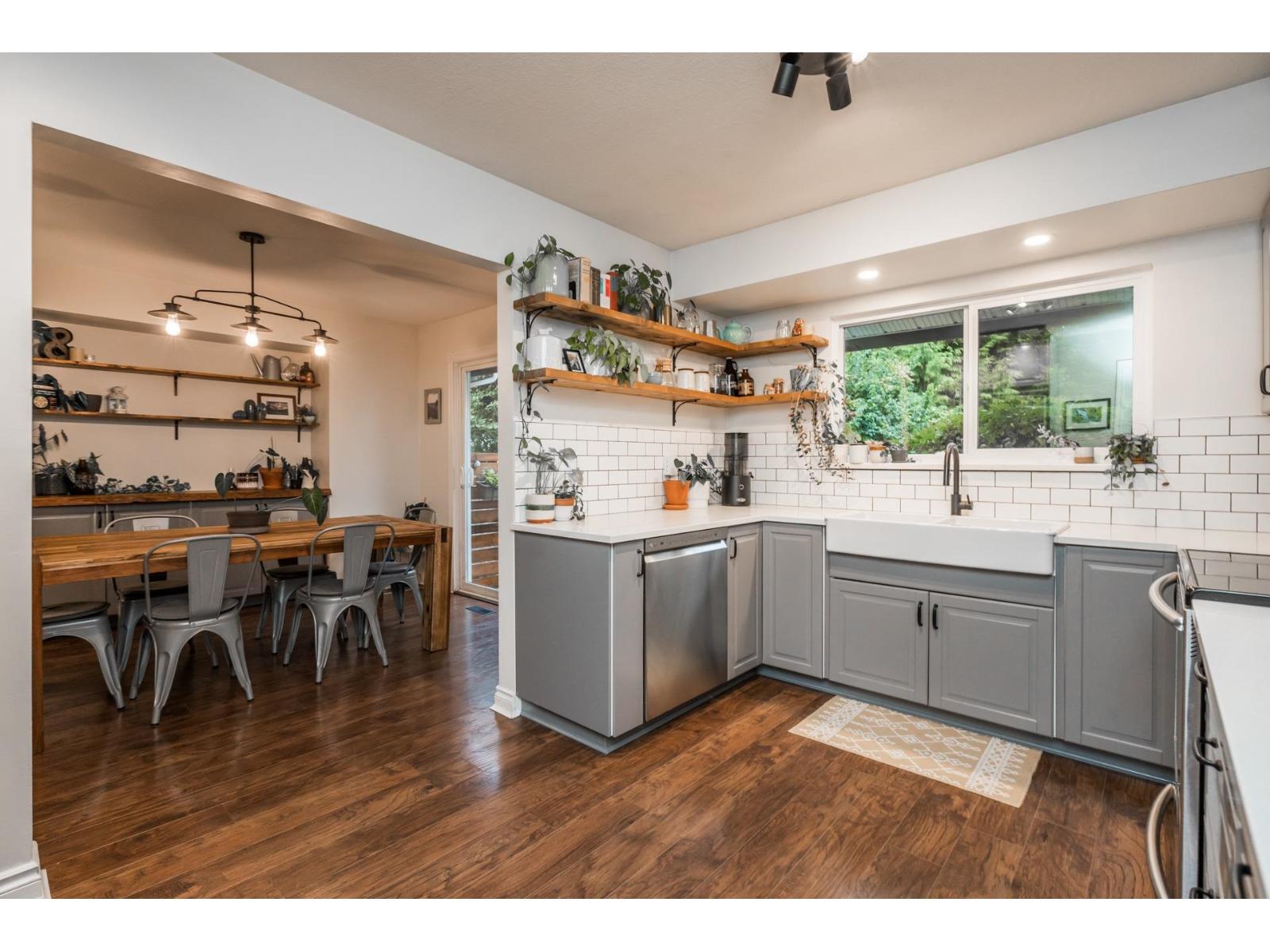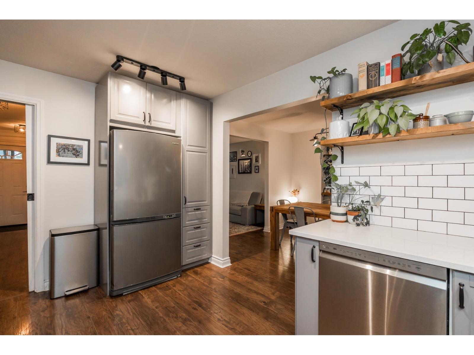 | Beautifully maintained and updated family home. Newer rich laminate flooring through the main and upper level. A large living room that will accommodate your family gatherings that opens to your formal dining room complete with a built-in buffet and sliders to a patio area. Fabulous newer contemporary kitchen with quartz counters and stainless steel appliances. Your family room has a floor to ceiling rock faced gas fireplace and sliders to a large covered patio. Three large bedrooms upstairs. Newer vinyl windows throughout. The west facing backyard is huge and very private that's perfect for entertaining. Lots of parking including RV parking. Convenience of Transit on your doorstep. Development potential "Ground-Orientated Residential" allowing townhomes, rowhomes and du- tri- fourplexes. (id:5347) | |||