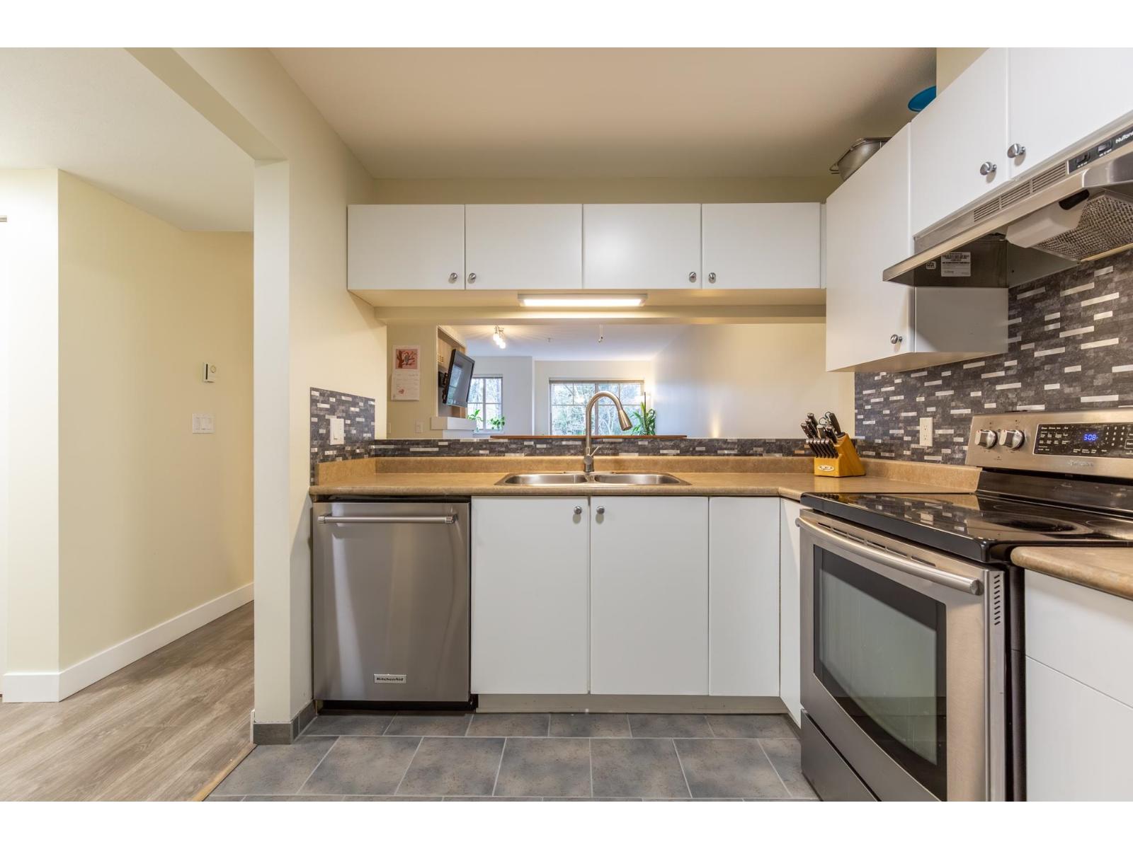| Welcome to " The Grand At Willow Creek". The over 900sf 1 bed + large den, 1 bath home offers a ton of perks! This very practical floorplan boasts open concept living/dining area that gets an abundance of natural light & also has & a cozy gas fireplace. The kitchen has been modernized with white painted cabinets + new backsplash that are complemented by the s/s appliances. The den off the living area could easily be utilized as a second bedroom. A large primary bedroom featuring a walk in closet make this the perfect place to call home. Other updates include laminate flooring, mantle, baseboards & fresh paint throughout. Enjoy a morning coffee on you patio that faces the serene creek/greenbelt. BONUS: Storage on the same floor as unit! A GREAT location close to schools, parks, & shopping. (id:5347) | |||