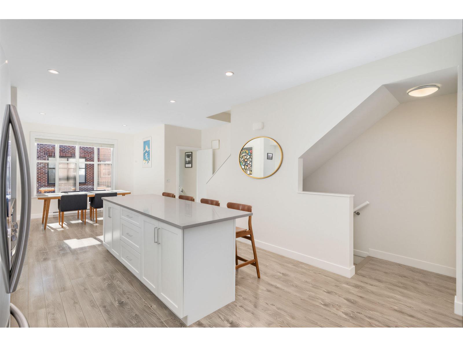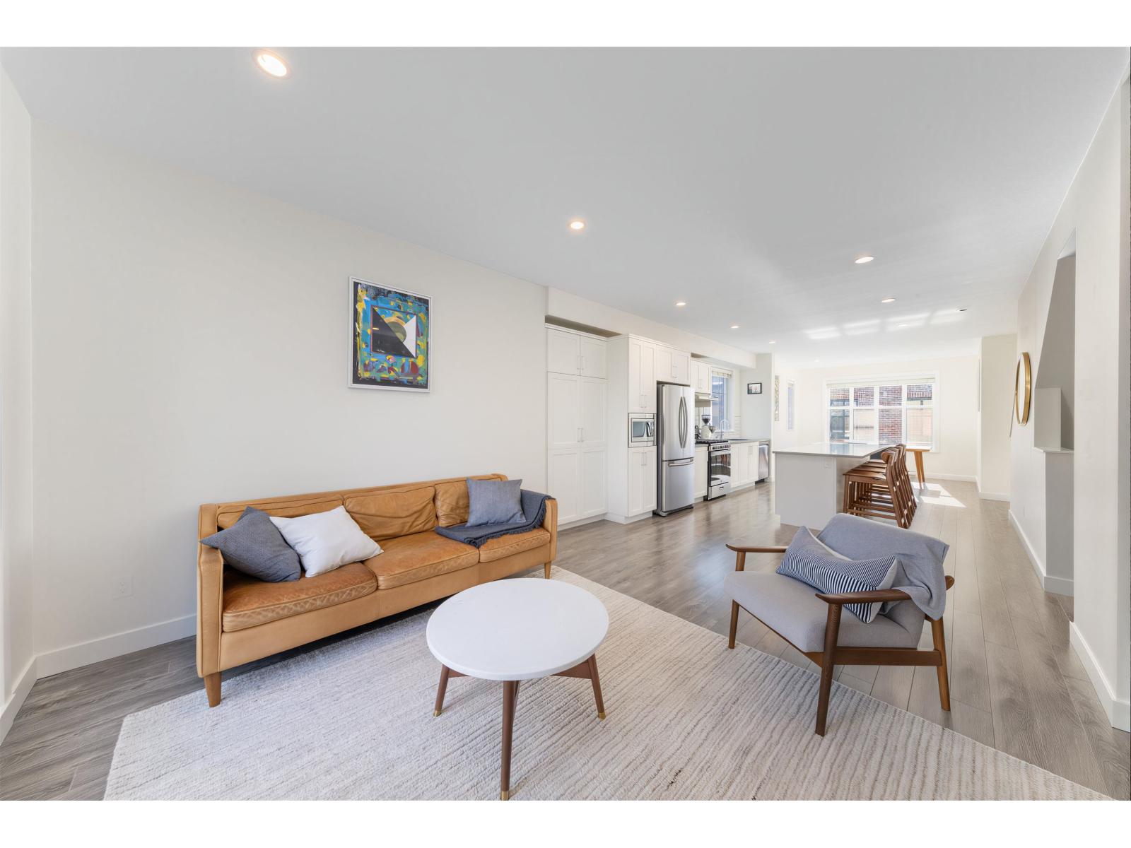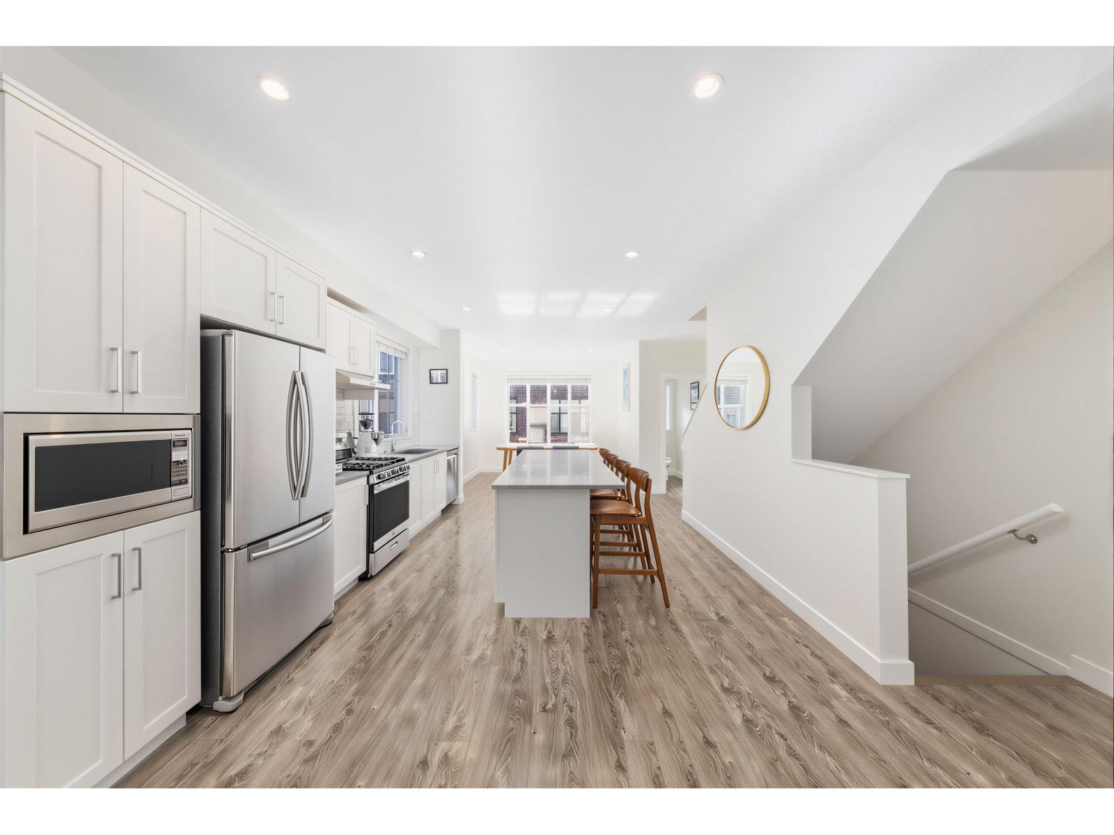 | BEST LOCATION end-unit townhome in the Complex offering 3 bedrooms, 3 bathrooms plus a den, with bright, move-in ready living space. Enjoy two outdoor areas - a private main-floor balcony and a 388 sq.ft. rooftop deck featuring a custom wraparound bench and privacy wall, perfect for entertaining while overlooking peaceful greenbelt views. The open-concept kitchen showcases a large quartz island, ample cabinetry, a 2026 gas range, along with a convenient powder room on the main level. As a desirable end unit, extra windows throughout provide abundant natural light. Rare live/work zoning allows for a legal home-based business or private office with separate garden entry. Ideally located between Grandview and Morgan Creek Golf Course, with easy access to shopping, schools, transit, and Hwy 99. OH: March 07 from 2-4pm. (id:5347) | |||
