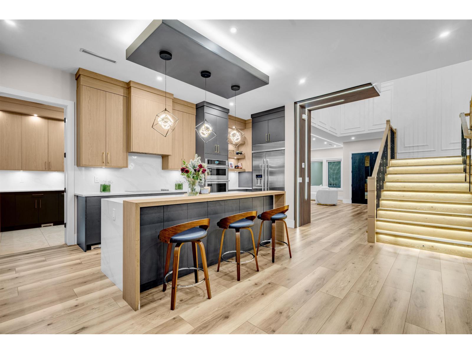 | Experience luxury living in this custom-built Cloverdale home with 9 bedrooms and 9 bathrooms. The exterior showcases stunning curb appeal enhanced by premium lighting. The main floor offers an open-concept layout with a gourmet kitchen featuring JennAir appliances, spice kitchen, bedroom with ensuite, office, powder room and mudroom. Upstairs, the primary suite includes a spa-inspired 5-piece ensuite, walk-in closet and walk-out balcony along with 3 additional bedrooms with en-suites and a laundry room. The lower level features a theatre, billiards room, wet bar, steam bath and two 2-bedroom mortgage helpers. Outdoor living shines with covered patios, balconies, turfed garden and sand pit. Equipped with SOLAR PANELS FOR ENERGY EFFICIENCY- where luxury meets functionality in every detail. (id:5347) | |||