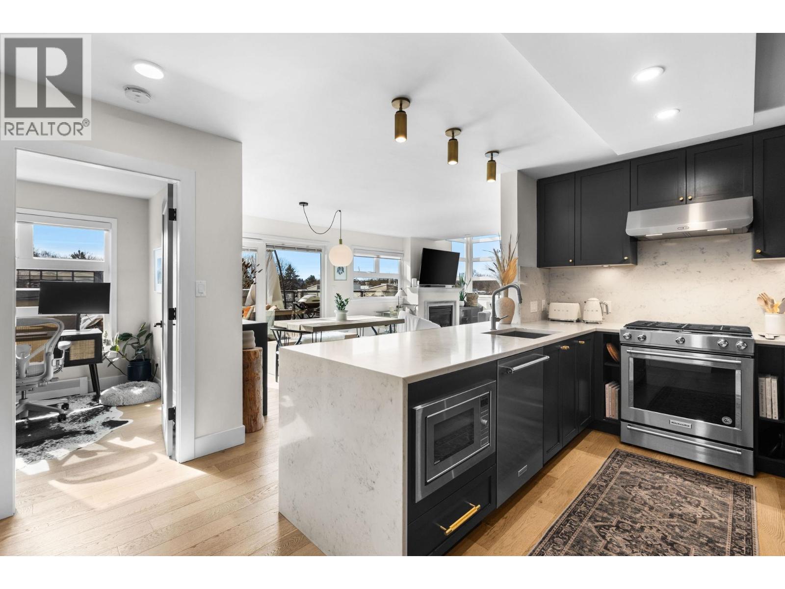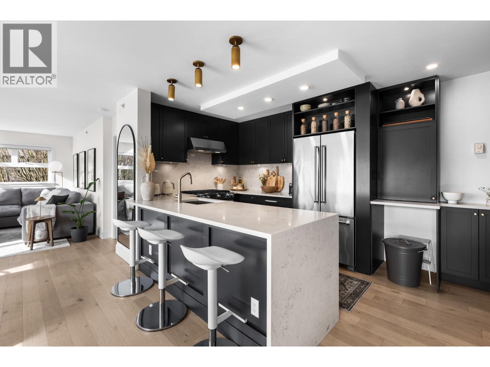 | Fully Renovated Top-Floor 2-Bed, 2-Bath Corner Suite - Bright & Turnkey This spacious top-floor corner suite is completely renovated top to bottom! Vaulted ceilings and high windows flood it with light. Designer custom kitchen cabinets, premium stone counters & tile work pair with a luxurious master steam shower and wall-to-wall custom closet. White oak laminate floors, new doors/hardware/fixtures throughout. Enjoy the large SW-facing patio with all-day sun, 2 side-by-side parking stalls + oversized storage locker. Building fully rain-screened: new exterior doors, decking, windows, re-piping, and new roof. Move-in ready luxury for your dream Kitsilano living! OPEN HOUSE: Saturday, March 7th 2-4pm (id:5347) | |||
