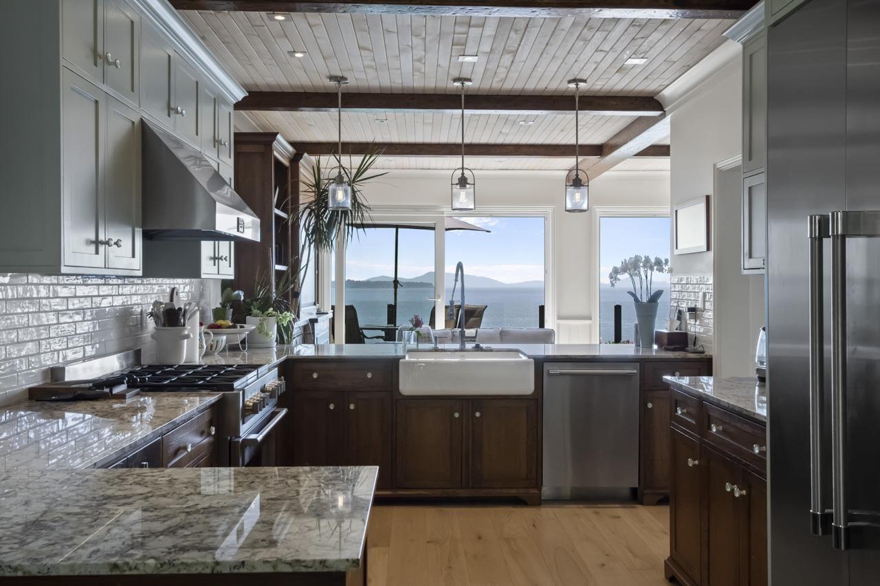 | Panoramic ocean views spanning 180 degrees, no wires & majestic Mount Baker views East. An exceptional quality renovation in 2022 + new roof & interior designer used. Precision craftsmanship from a renowned cabinet maker. Custom cabinets, superior workmanship evident in bathrooms, kitchen, living room built-ins, millwork and family room. Quality lighting fixtures & forged steel hardware. Beautiful German white oak wide plank hardwood flooring. H/E nat gas fireplaces. Quality windows exposing maximum sublime views on a whisper quiet street. Sundecks 653SF. Backyard shade oasis w/ ocean view down the pier, 187SF patio w/ water feature. Unauthorized two bdrm suite below 915SF. Double garage & driveway for 2 vehicles. Schools: Semiahmoo Sec.& Bayridge Elem. Walk to Beach and Centennial Park. (id:5347) | |||