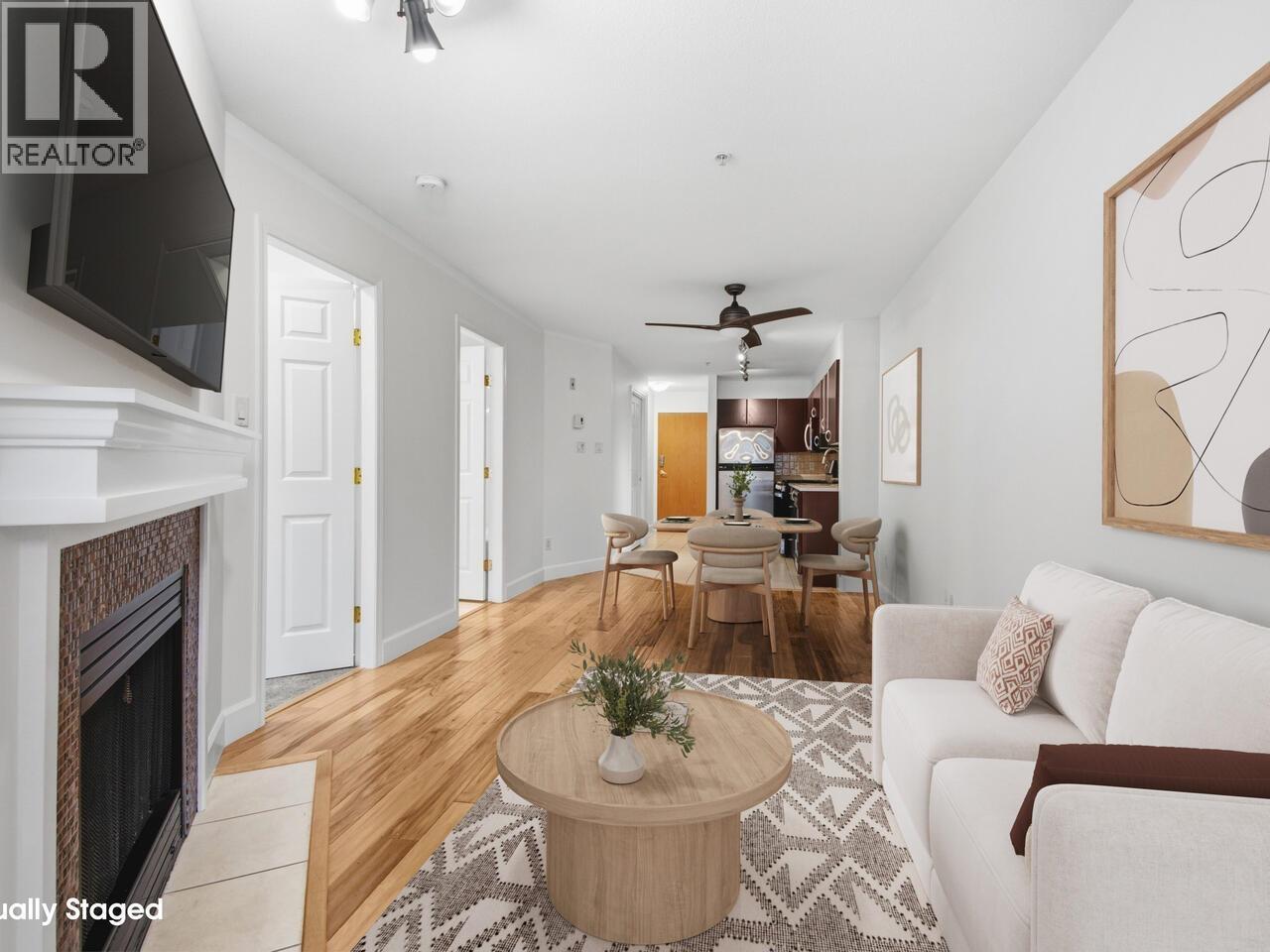 | HASTINGS SUNRISE! 1 Bed + Den cutie in the heart of this vibrant neighbourhood! Offering 672 square ft of well-designed living space, this home features stainless steel appliances, gas range, cozy gas fireplace, in-suite laundry, and bonus in-suite storage. Hardwood floors add warmth throughout, while the spacious den is perfect for a home office with custom work space. Enjoy peaceful north-facing exposure on the QUIET side of the building. Just steps to shops, local eateries, parks, community centre, and transit. Only 10 minutes to Downtown and 5 minutes to the North Shore. An unbeatable location! Call to view. (id:5347) | |||