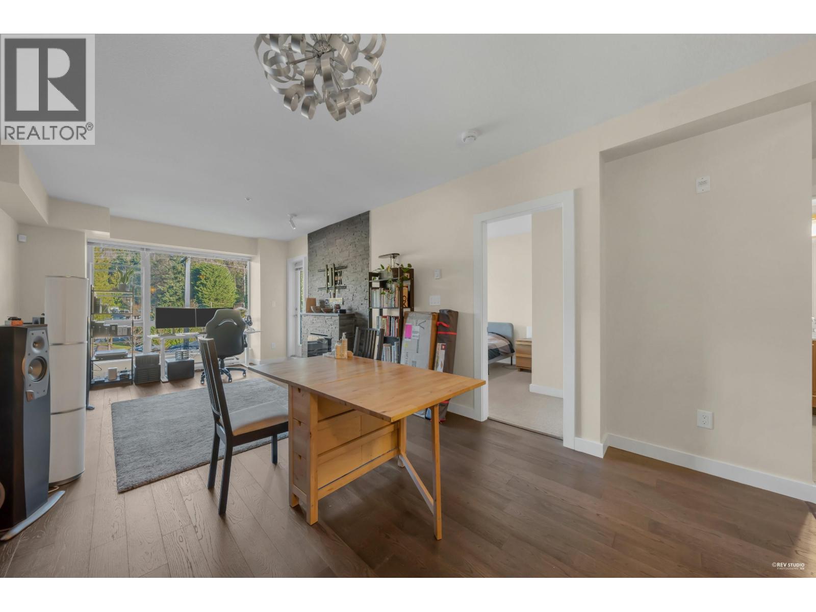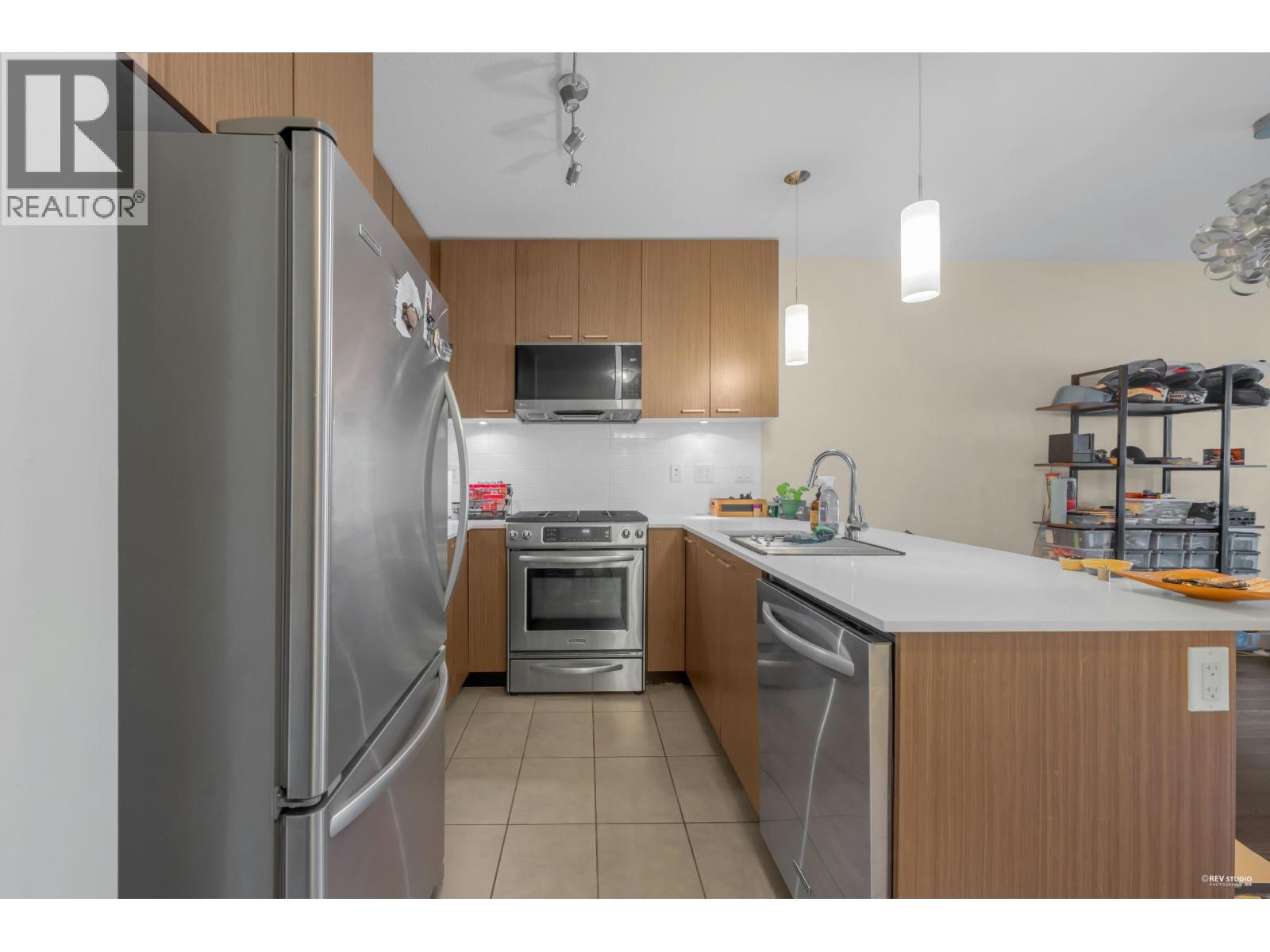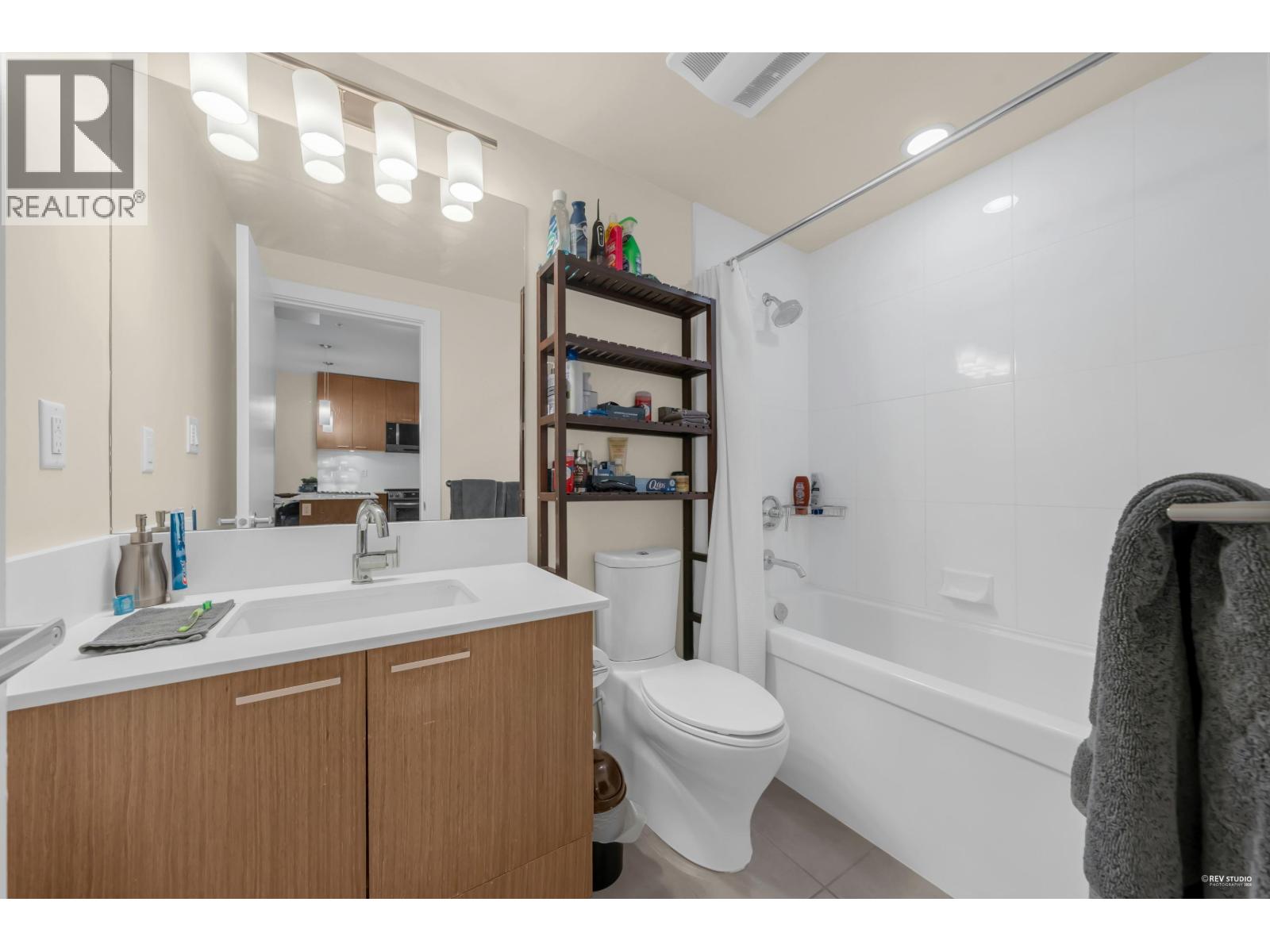 Modern North Shore living at The Drive by Onni. This well-appointed 1 bed, 1 bath home is quietly positioned on the north-facing side, offering a bright and peaceful outlook with lush greenery and mountain views. The efficient open layout features hardwood flooring and a contemporary kitchen with quartz counters, stainless steel appliances, gas cooktop, and breakfast bar. The spacious bedroom fits a king bed and includes a walk-in closet with built-ins. Spa-inspired bath with deep soaker tub. Steps to transit, groceries, cafes, and restaurants with easy access to Downtown. Well-managed building with gym, party room, bike storage & visitor parking. 1 parking included. Open House Saturday and Sunday, March 7th and 8th, 2-4 PM. (id:5347)