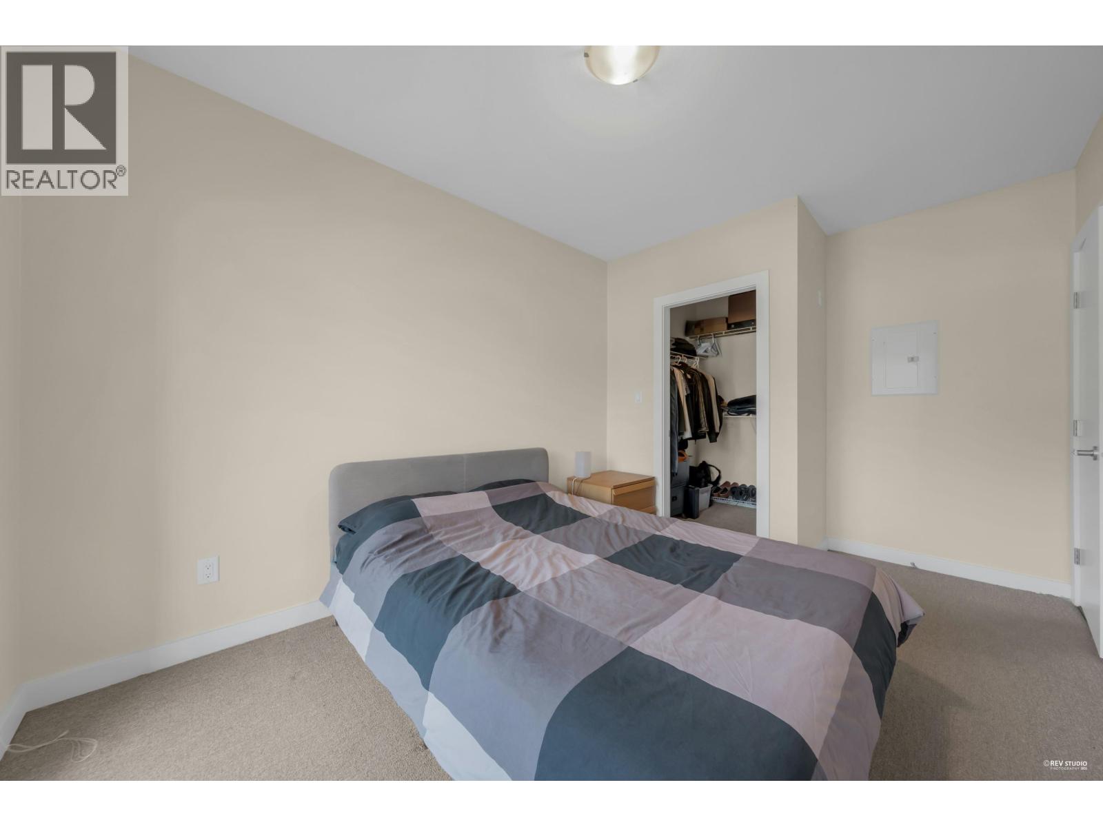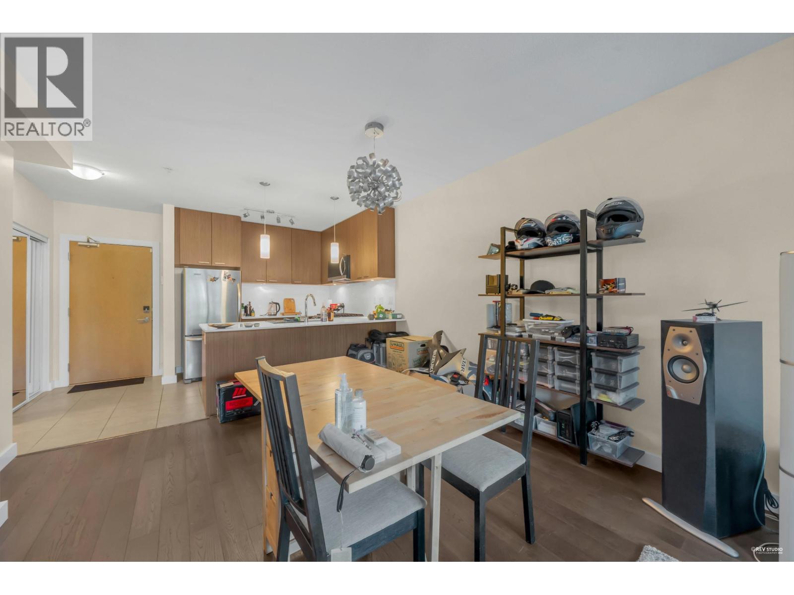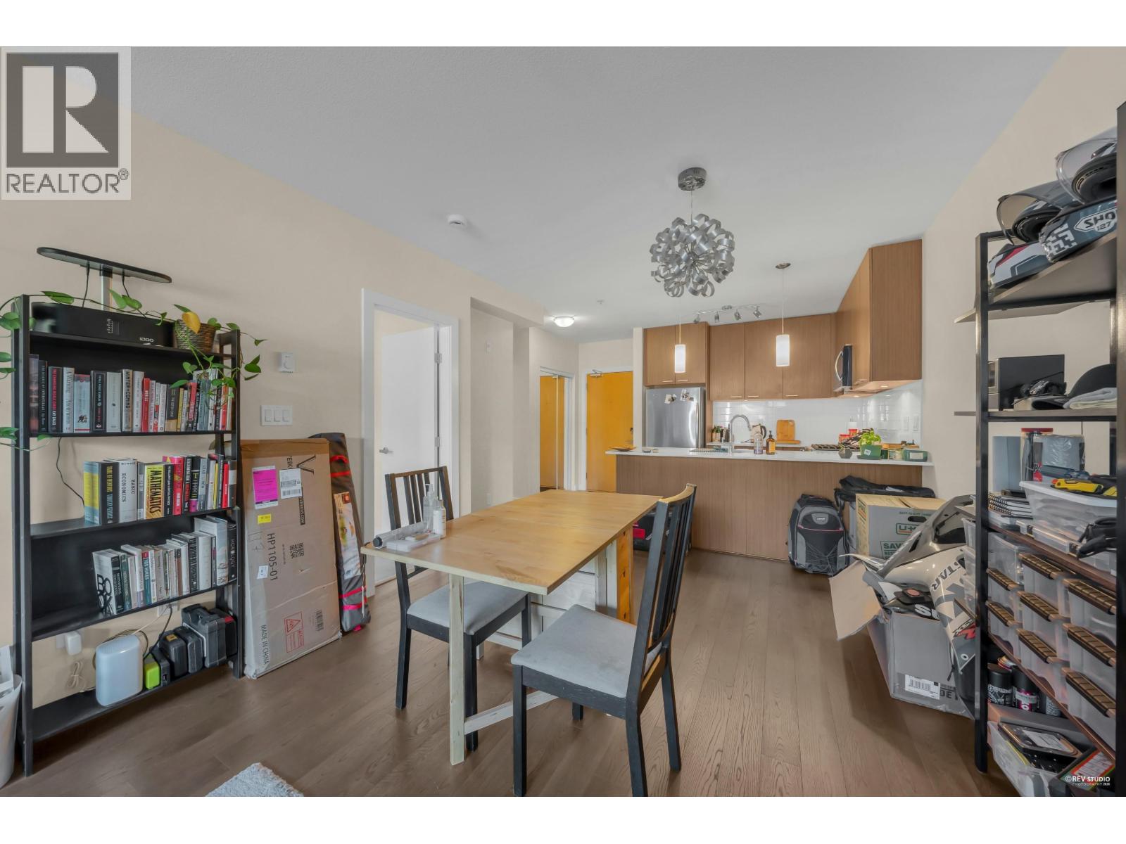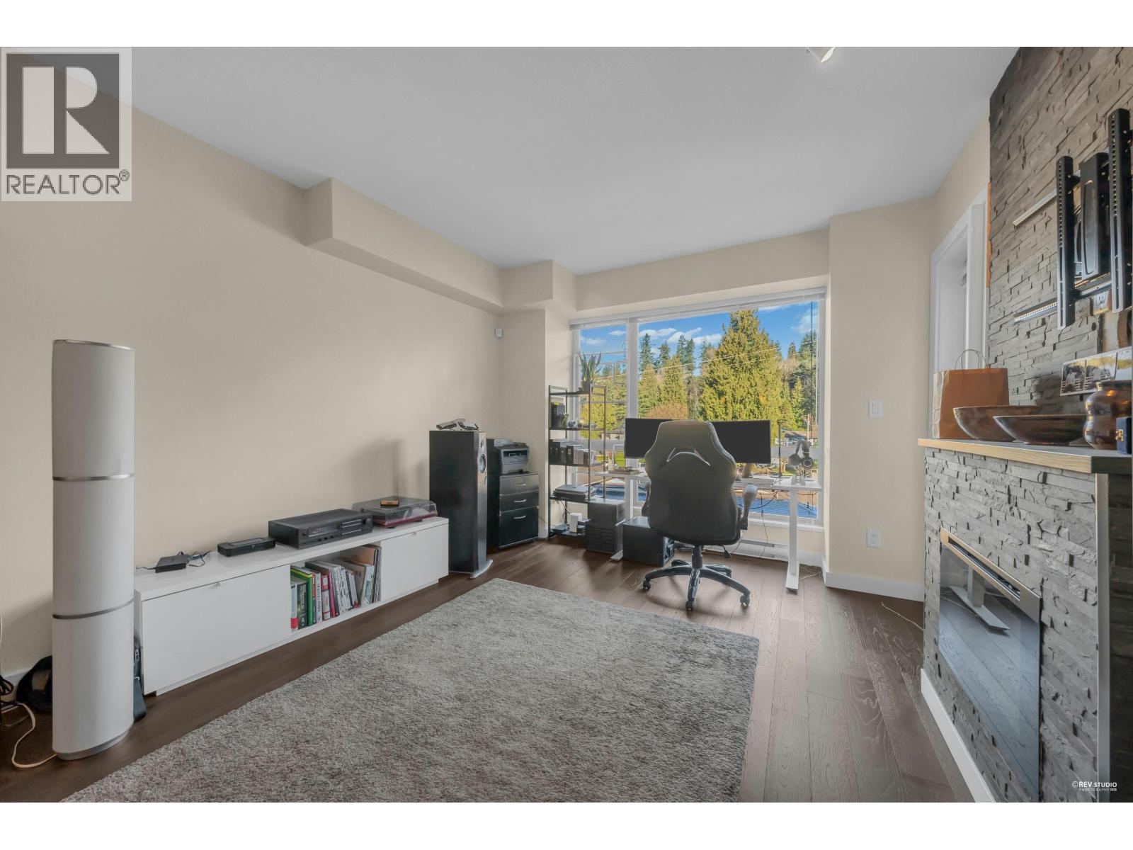 Modern North Shore living at The Drive by Onni. This well-appointed 1 bed, 1 bath home is quietly positioned on the north-facing side, offering a bright and peaceful outlook with lush greenery and mountain views. The efficient open layout features hardwood flooring and a contemporary kitchen with quartz counters, stainless steel appliances, gas cooktop, and breakfast bar. The spacious bedroom fits a king bed and includes a walk-in closet with built-ins. Spa-inspired bath with deep soaker tub. Steps to transit, groceries, cafes, and restaurants with easy access to Downtown. Well-managed building with gym, party room, bike storage & visitor parking. 1 parking included. Open House Saturday and Sunday, March 7th and 8th, 2-4 PM. (id:5347)