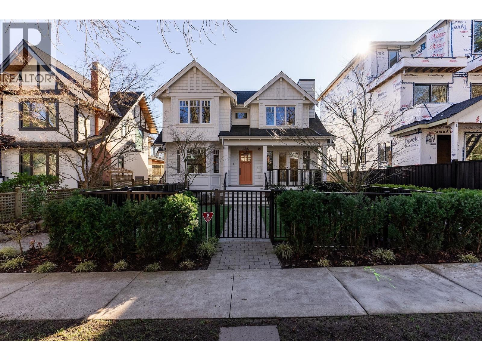 | Stunning craftsman half duplex with French doors to a charming front porch & private front yard on a quiet tree-lined street in Dunbar/Southlands. Light-filled & spacious 1,411 SF, 2 bed + 3 bath with vaulted ceilings, bay windows & open-concept living. Chef's Kitchen with custom cabinetry, quartz counters, Thermador gas cooktop & double wall ovens. Gas fireplace & indoor-outdoor flow. Primary with walk-in closet & spa-like ensuite with rain shower, bench & double vanity. 2nd bed with walk-in closet & full ensuite. Radiant in-floor heat, central A/C & Savant home automation. Built by JC Tycon Developments with interiors by AKC Design Studio. Remainder of 2-5-10 warranty. Steps to Kerrisdale & Dunbar shops. Close to Crofton House & St. George's. One of a kind. Nothing to do but move in & enjoy. (id:5347) | |||