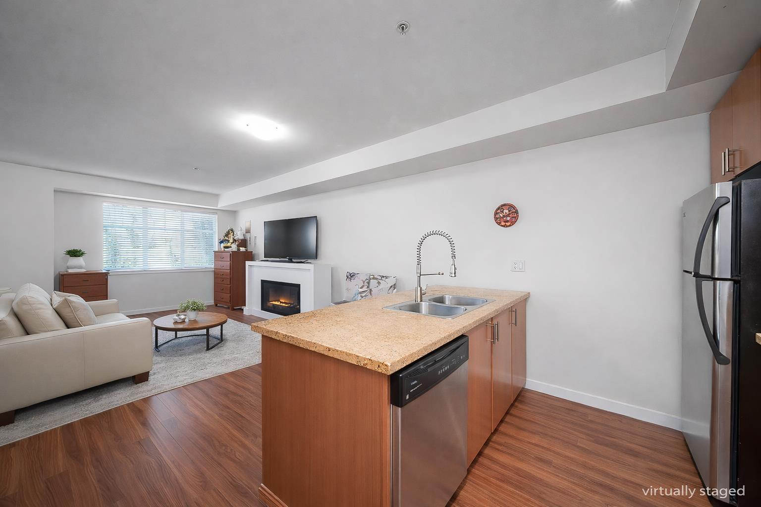 | Welcome to "The Fuse," a highly sought-after gated townhouse community! Perfectly positioned on the quiet side of the complex, this spacious 2-bedroom, 2-bathroom home offers 1,006 sq. ft. of comfortable living space with a bright, open floor plan. The generous living room flows seamlessly into a modern kitchen, complete with stainless steel appliances and sleek granite countertops. The home is well-maintained and features a nearly new hot water tank (installed just a year ago). Included are 2 highly desirable side-by-side parking stalls and 1 storage locker. Unbeatable prime location: just minutes to the SkyTrain, Surrey Central Mall, SFU, City Hall, Library, Holland Park, and multiple grocers including T&T, Safeway, and Save-On-Foods. Catchments: Woodward Elementary and Kwantlen Park Sec (id:5347) | |||