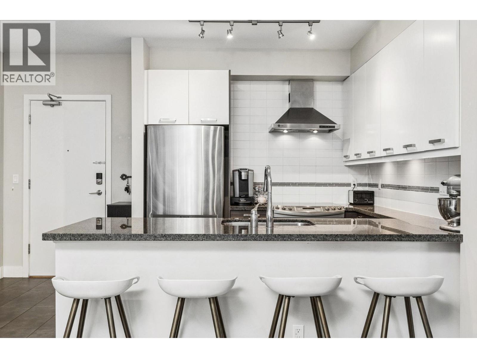 | Ivy at Marine is a boutique development of 24 residences by the Executive Group, combining modern design with a convenient North Shore location. This seldom available two-bedroom, two-bath home offers an ideal layout for everyday living. The open-concept kitchen features granite countertops, modern cabinetry, stainless steel appliances, designer hood fan, imported tile backsplash, and an oversized breakfast bar perfect for entertaining. The living area is highlighted by an electric fireplace, premium laminate flooring, large windows for ample natural light, all opening onto the large deck capturing iconic North Shore Mountain views. Two generously sized spa-inspired bathrooms offer limestone countertops and contemporary cabinetry. Includes RARE two full-size side-by-side parking stalls, and storage locker. Residents enjoy private fitness studio and bike storage, and convenient short walk to groceries, coffee, transit, and the Spirit Trail, with quick access to Highway 1 and Whistler. Don't miss it - call now! (id:5347) | |||
