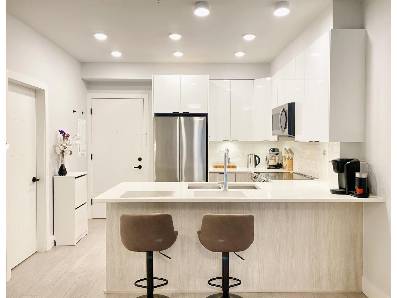 | Fresh Price! Quiet 1-bed, 502 sf unit on the 2nd floor, away from traffic, facing the courtyard, and steps away from the future Skytrain station! Features include under-cabinet lighting, oversized laundry, and summer-cool layout with A/C option. Amenities include: Gym, party room, 2nd-floor garden, bike & storage rooms, secure oversized parking, and two meeting rooms. Walk to nearby restaurants and shops with transit nearby! Great investment, great for down-sizing or a great choice for a First Time Homebuyer. Serious Value Available Today! (id:5347) | |||