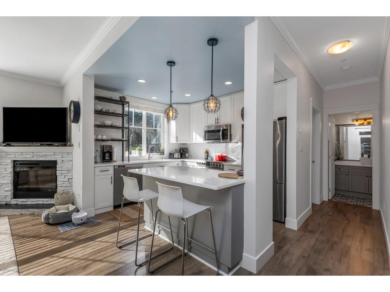 | Welcome to The Sterling. Bright & spacious 2 bed/2 bath + den corner unit! Nearly $60K spent on a FULL 2022 renovation including stunning new kitchen, bathrooms, heat pump w/AIR CONDITIONING, paint, mouldings & more-truly magazine worthy! Open concept layout with south & west exposure for abundant natural light. L-shaped kitchen w/island flows into dining & living room w/electric fireplace. Den off entry makes the perfect home office. Bedrooms on opposite sides for privacy. Walk-thru closet to gorgeous ensuite in primary. Minutes to Hwy 1, hospital & amenities. Rentals & pets allowed-call today! (id:5347) | |||