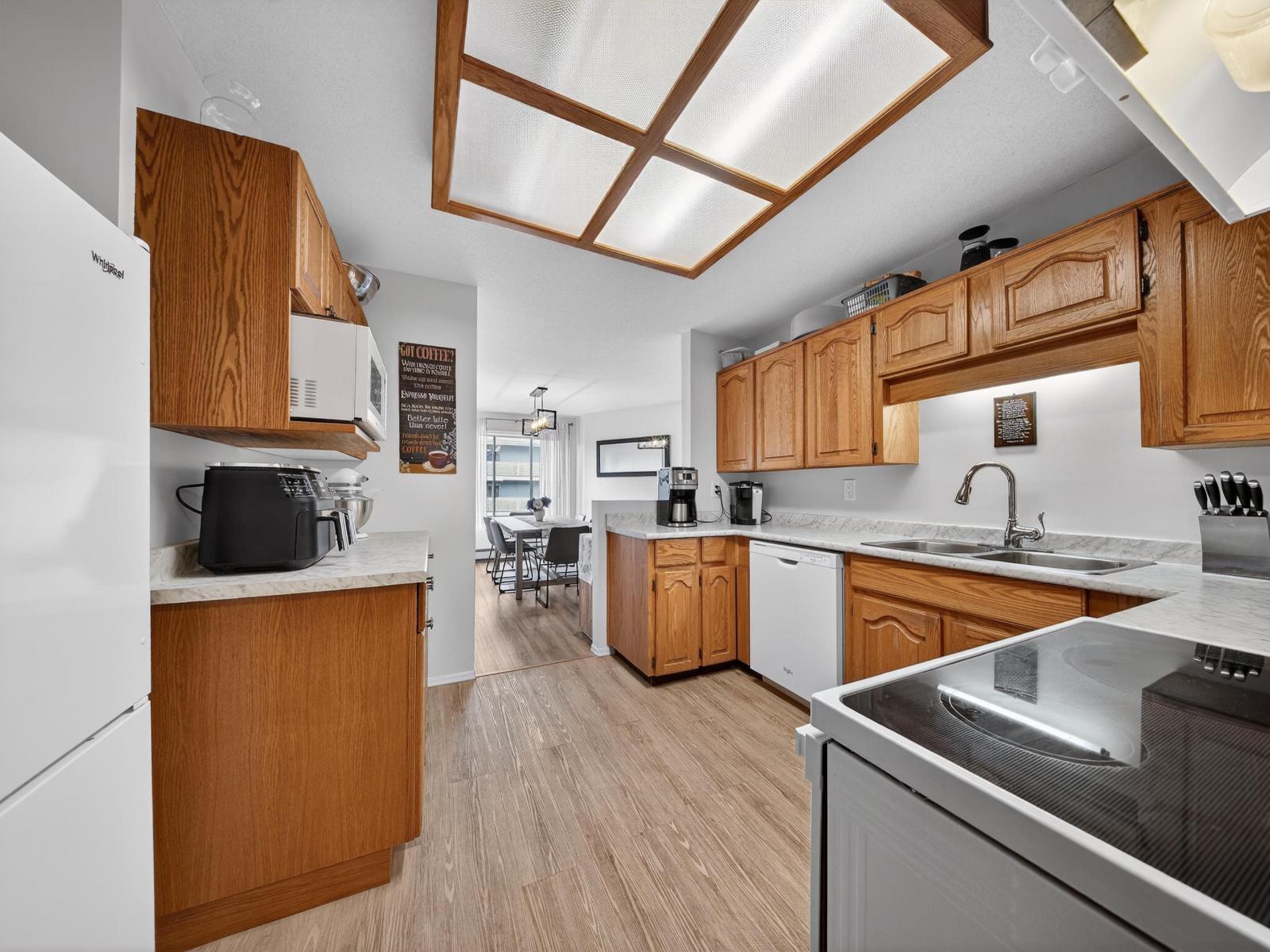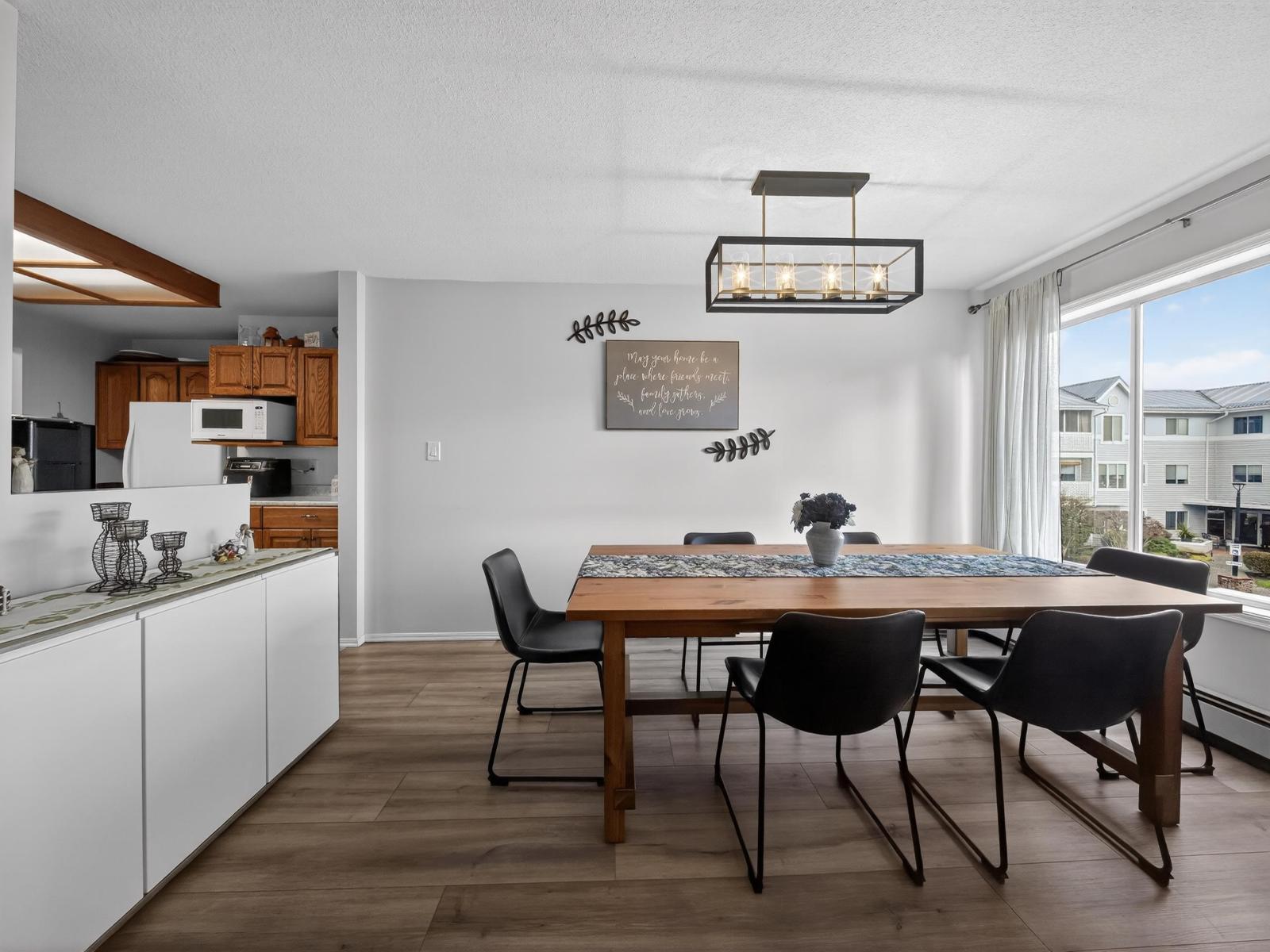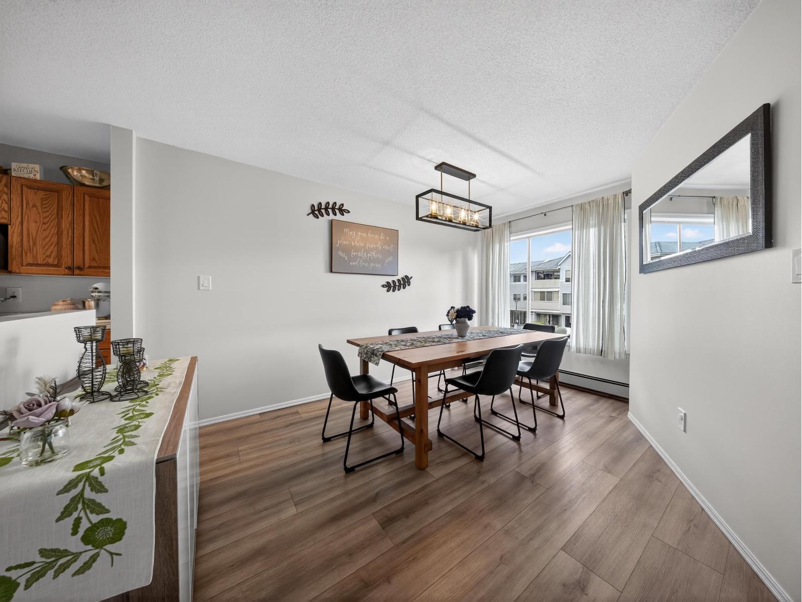 | Welcome Home! This spacious 2-bedroom, 2-bathroom condo in the desirable 55+ Park Place community is updated with new flooring and paint. Enjoy a full dining room plus a bright living room w/ sliding door access to the peaceful, raised balcony. Large primary bedroom suite w/ walk-in closet 3pc ensuite. Well-managed building w/ outstanding amenities: indoor pool, hot tub, sauna, guest suite and games room w/ fitness area. Prime location just a short walk to grocery stores, Sevenoaks Mall, restaurants, cafes, & Mill Lake. Includes Storage locker & one secure underground parking. (id:5347) | |||