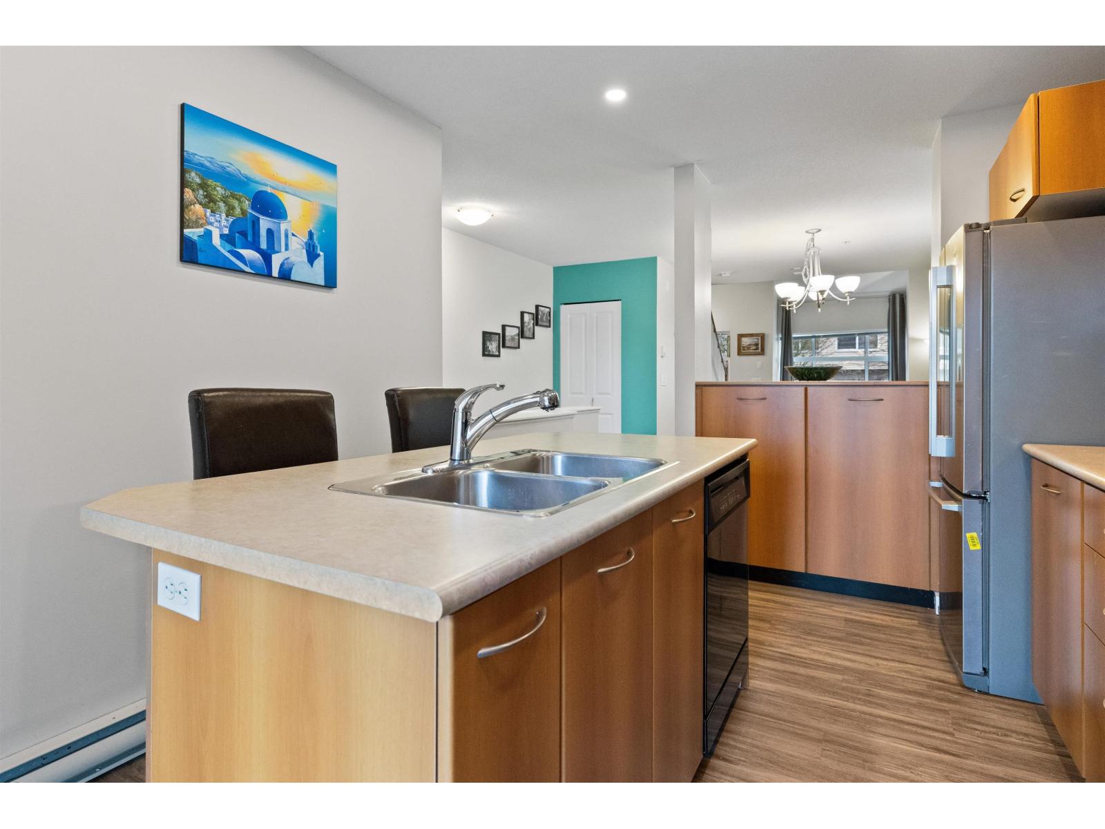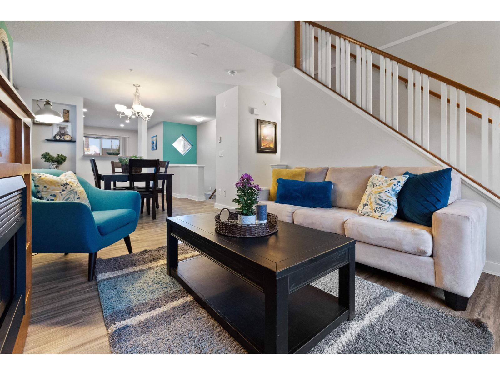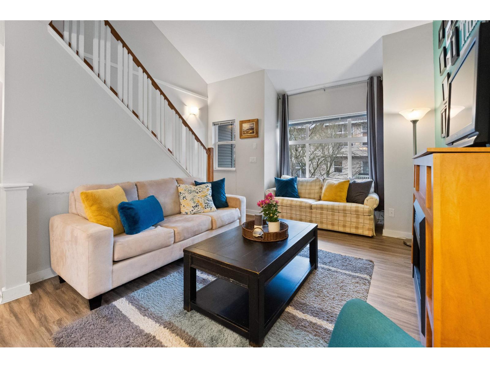 | Welcome to this bright and spacious end-unit townhome in the highly sought-after Denim community! This 2-bedroom home features vaulted ceilings in the living room and bedrooms, surround sound speakers, designer paint tones, and laminate flooring. The large kitchen offers ample cabinetry, a generous island, and access to a covered balcony-perfect for entertaining. Enjoy a sunny south-facing patio and fully fenced yard. Conveniently located near schools, with shopping, amenities, transit, and quick Highway #1 access just minutes away. Truly a must-see! (id:5347) | |||