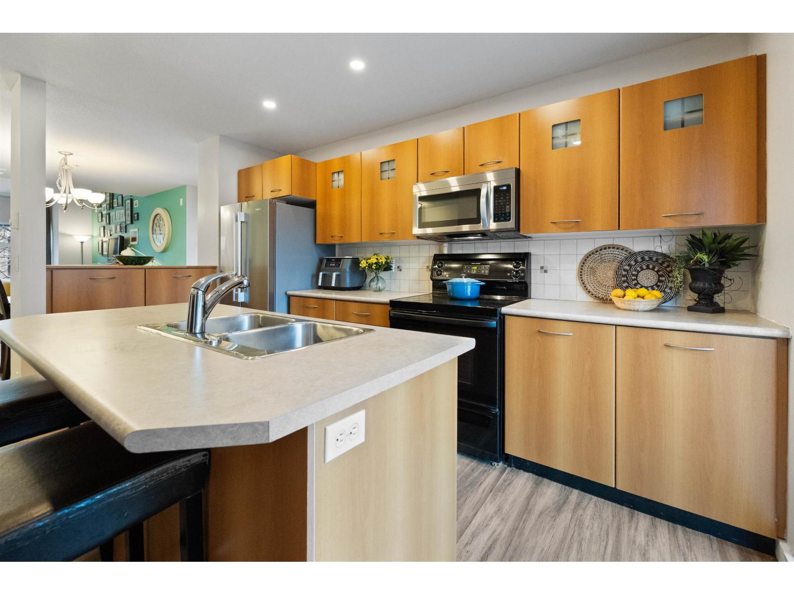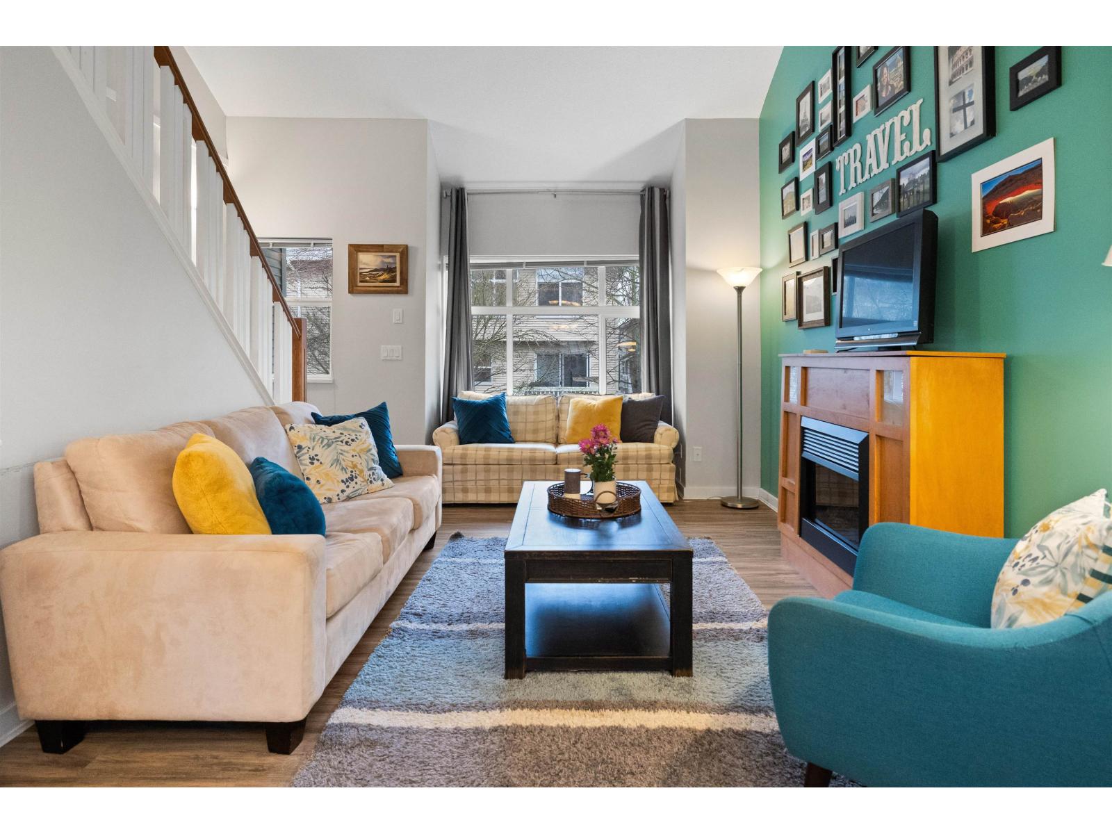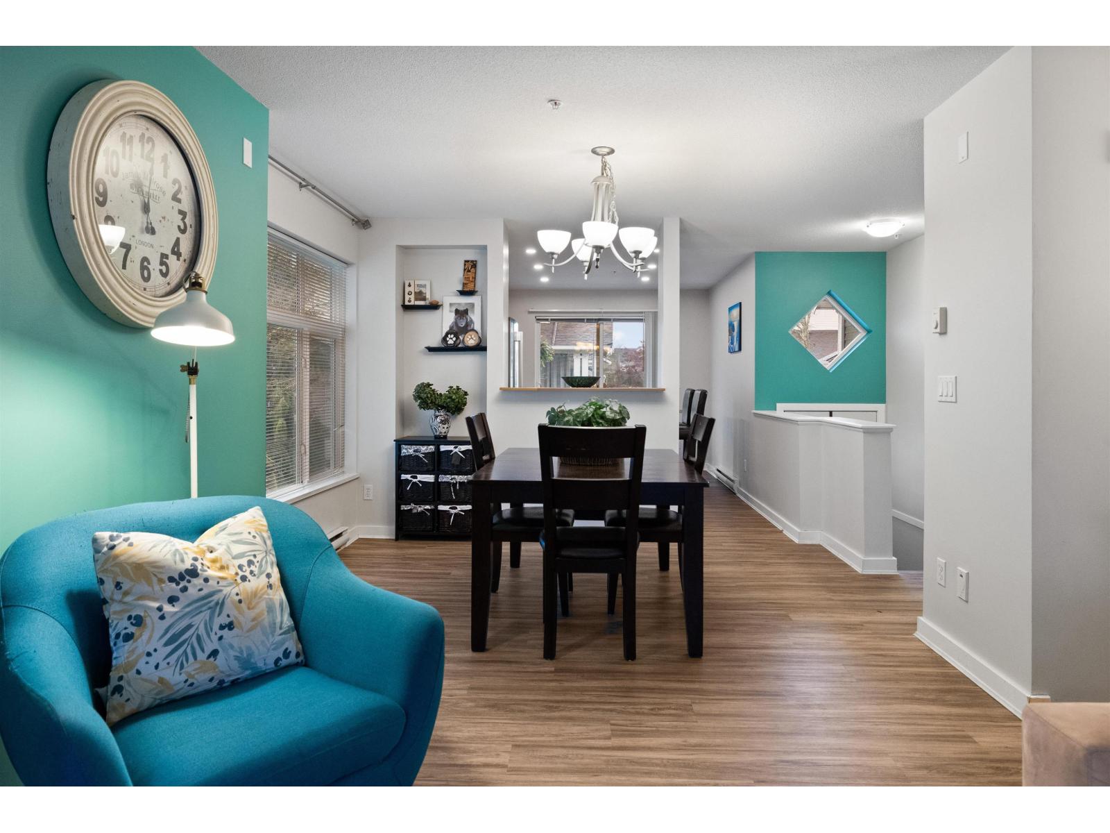 | Welcome to this bright and spacious end-unit townhome in the highly sought-after Denim community! This 2-bedroom home features vaulted ceilings in the living room and bedrooms, surround sound speakers, designer paint tones, and laminate flooring. The large kitchen offers ample cabinetry, a generous island, and access to a covered balcony-perfect for entertaining. Enjoy a sunny south-facing patio and fully fenced yard. Conveniently located near schools, with shopping, amenities, transit, and quick Highway #1 access just minutes away. Truly a must-see! (id:5347) | |||