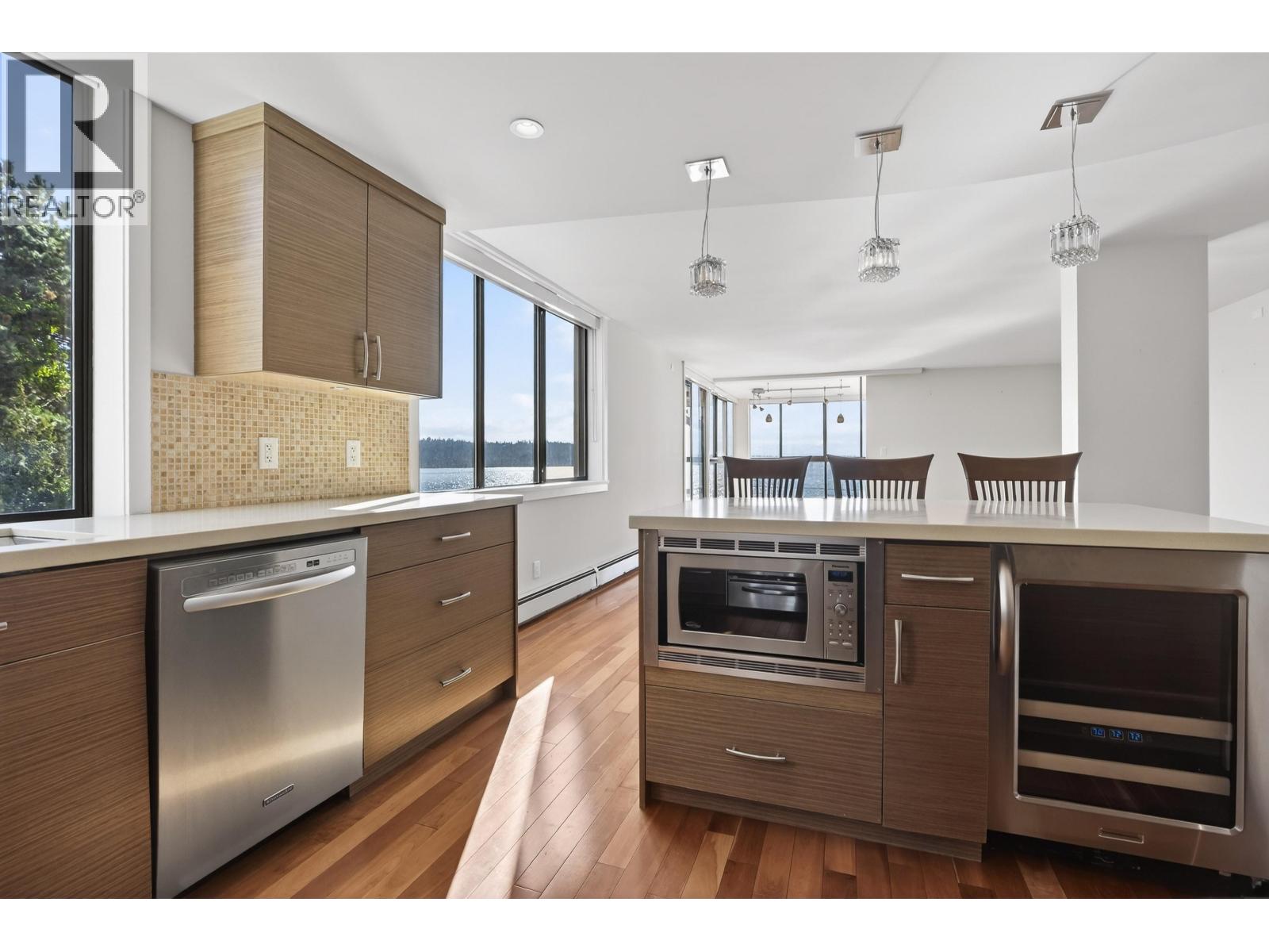 | A beautiful 2BD, 2BTH waterfront residence in the heart of Dundarave. This bright & spacious home captures stunning unobstructed ocean views through expansive windows that fill the living space with natural light and the calming presence of the water just beyond. The open living & dining area is ideal for entertaining, while the thoughtfully designed kitchen offers quality finishes & excellent functionality. The generous primary suite features a private ensuite & a peaceful outlook. Located just steps from the Seawall and Dundarave Village, you will enjoy easy access to cafés, restaurants, & boutique shops. The West Vancouver Memorial Library, Lawn Bowling Club, Seniors´ Activity Centre, West Vancouver Community Centre & main bus route are all within walking distance. (id:5347) | |||