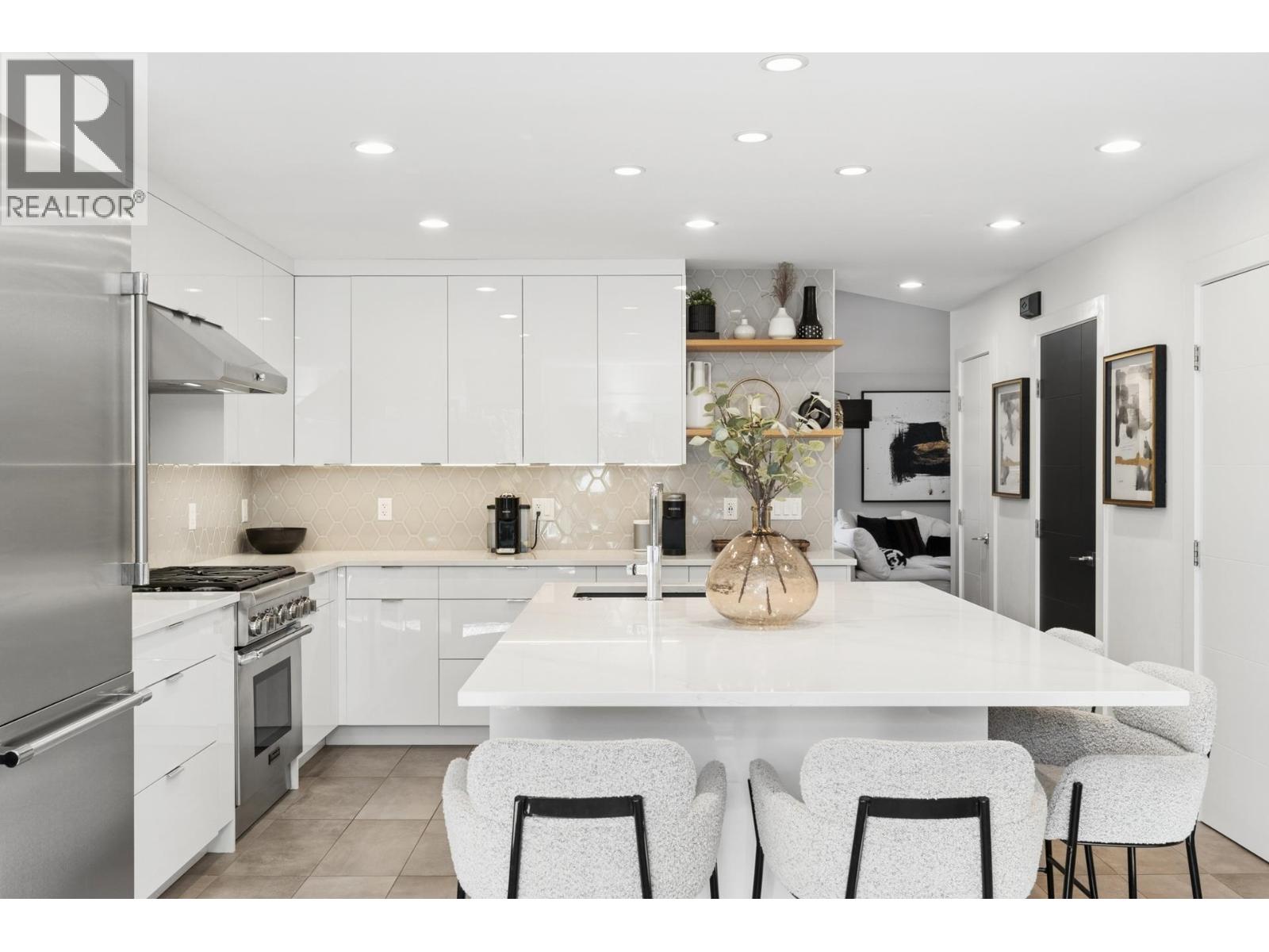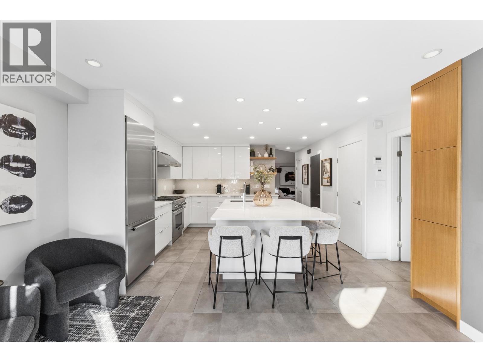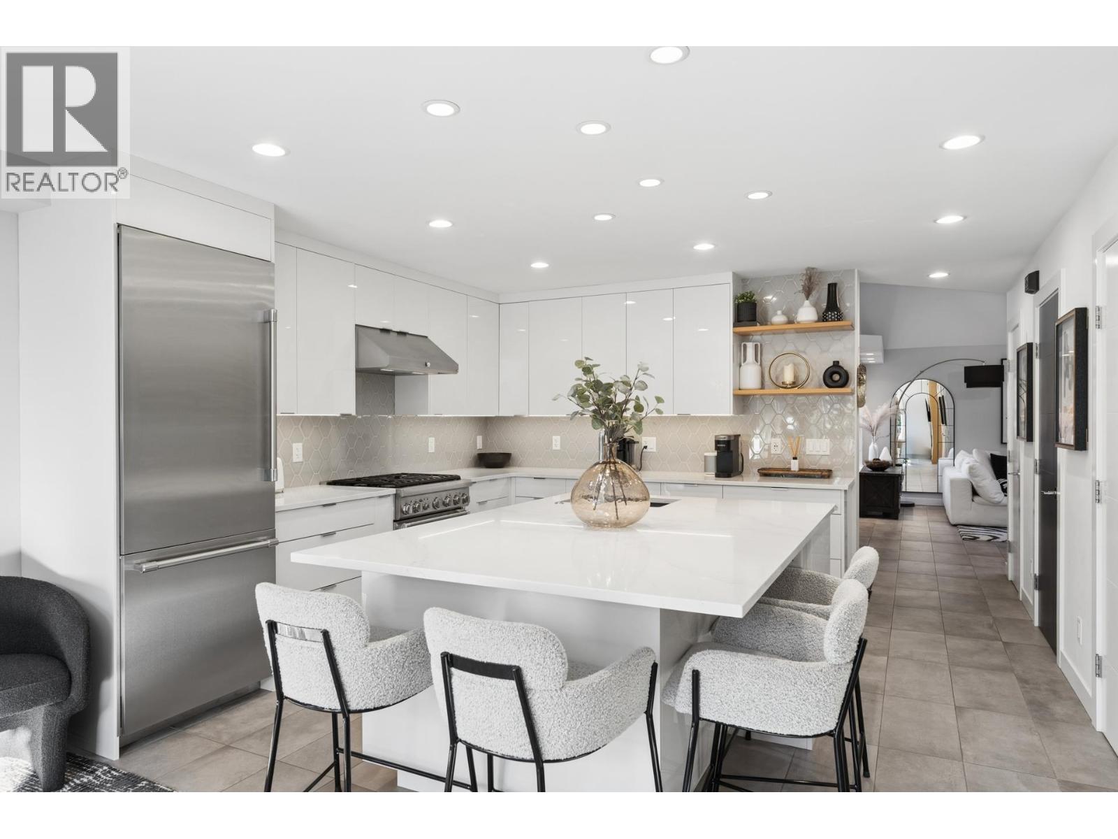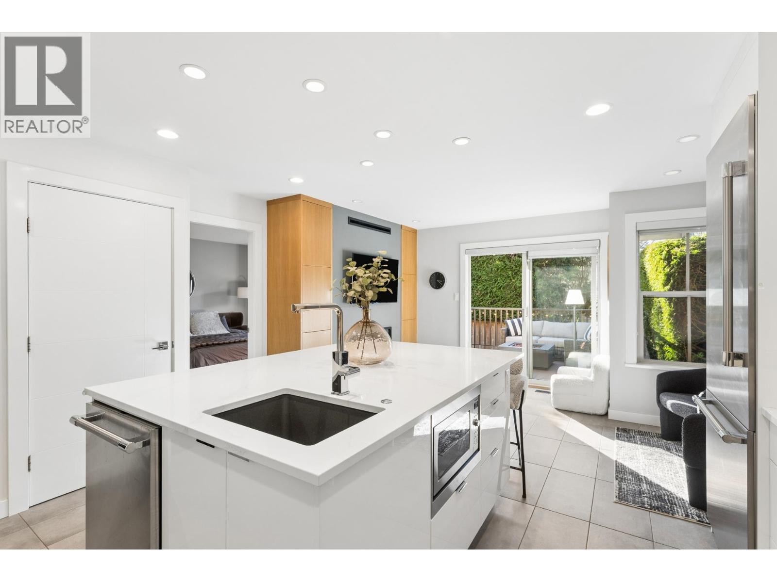 | Stunningly renovated townhome in sought-after Nahanee Woods. Offering 3 bedrooms, 3 bathrooms, and over 1,800 square ft on two levels, including a spacious main-floor primary bedroom. The foyer opens to an open-concept living and dining area with vaulted ceilings, gas fp, and white oak stairs with metal and glass railings. Tile flooring with radiant in-floor heating spans the main level, complemented by a recent heat pump and A/C upgrade. The open kitchen features sleek white cabinetry, quartz counters, a large island, and Thermador appliances. A flex space with a second gas fireplace opens to a private west-facing deck. The main-floor primary retreat includes bay windows, walk-in closet, and renovated 5-piece ensuite. Upstairs are two generous bedrooms, a 4-piece bath, and flexible landing. Quietly located near parks, shopping, recreation, schools, and trails. (id:5347) | |||