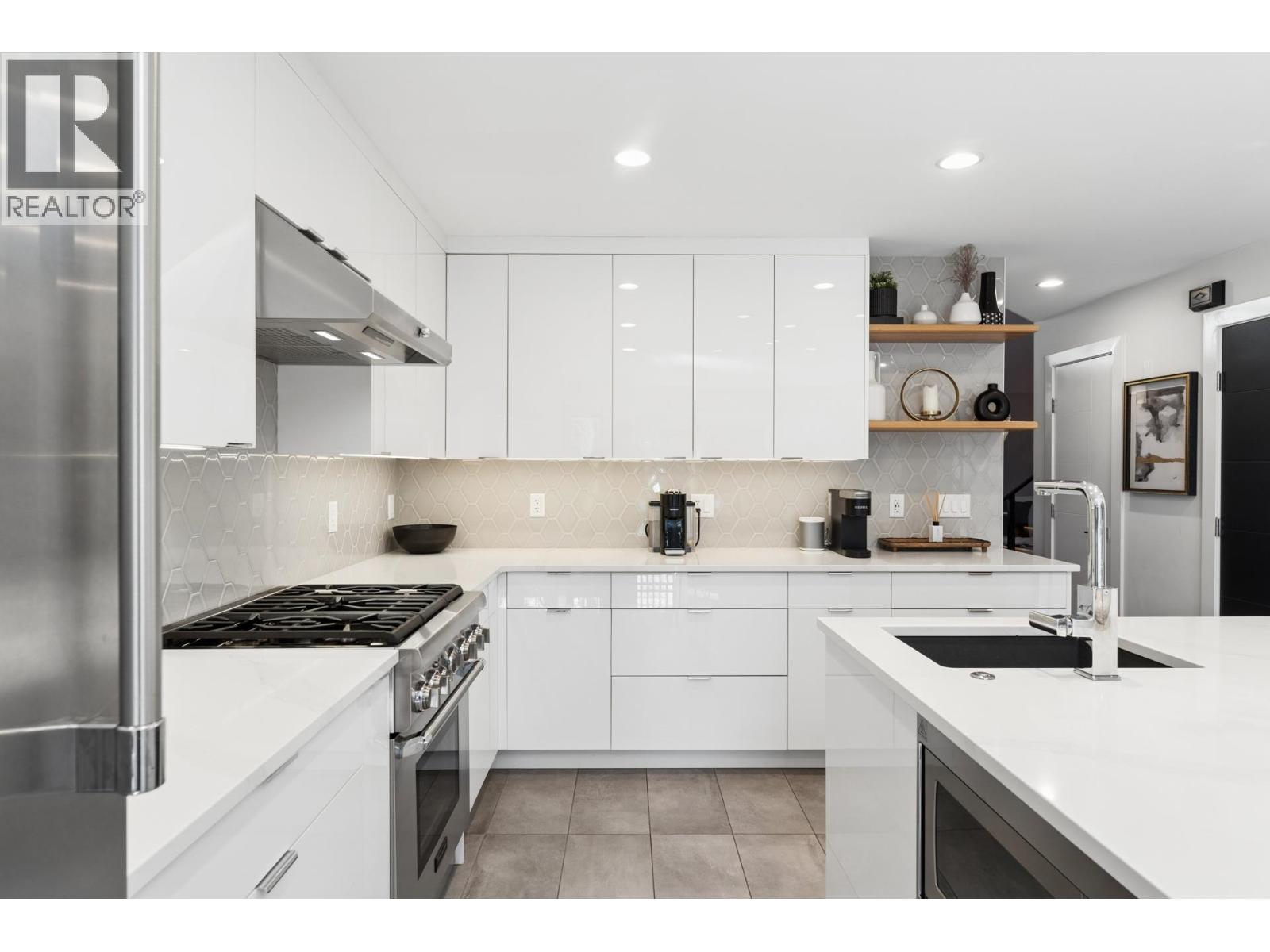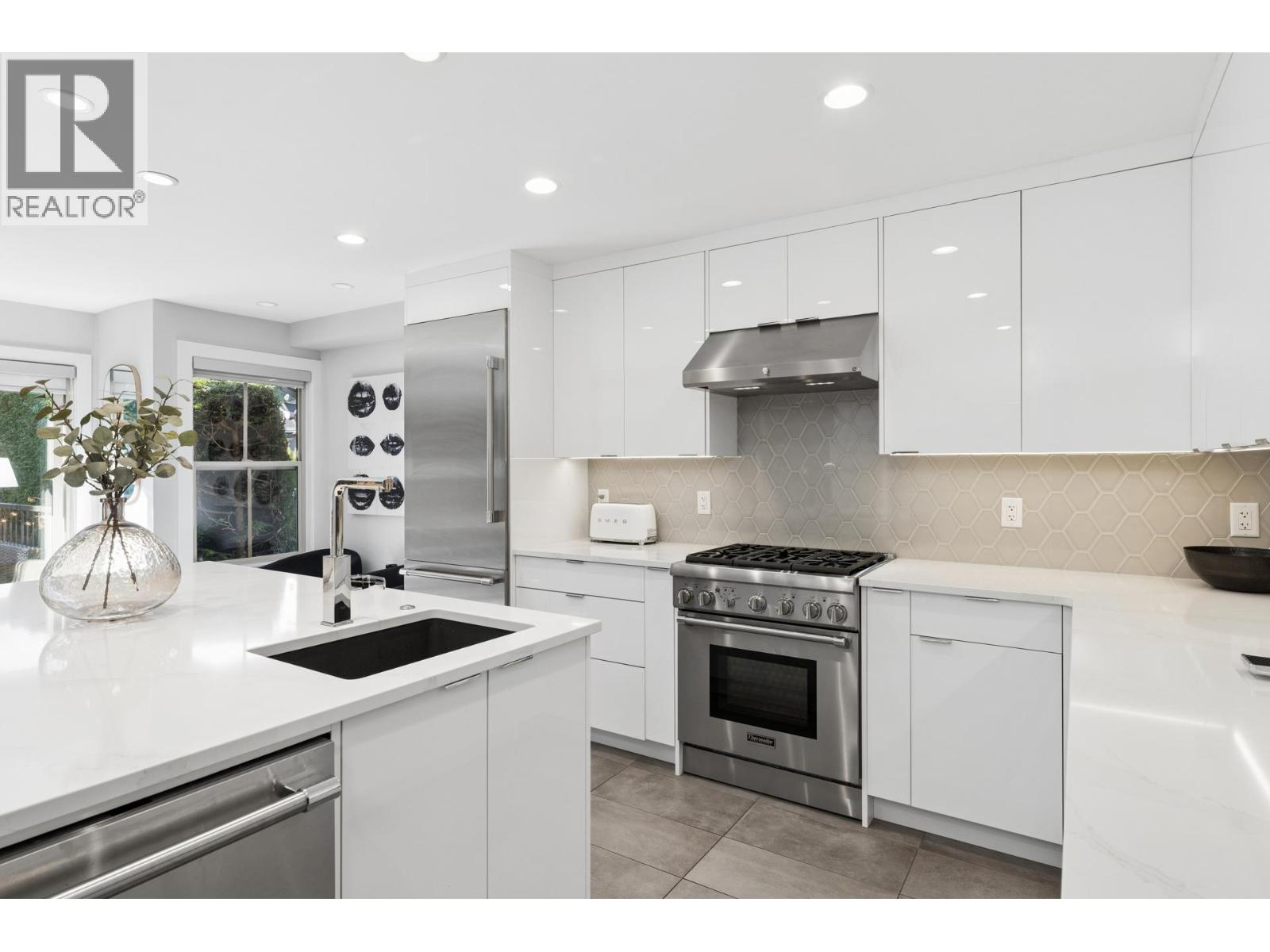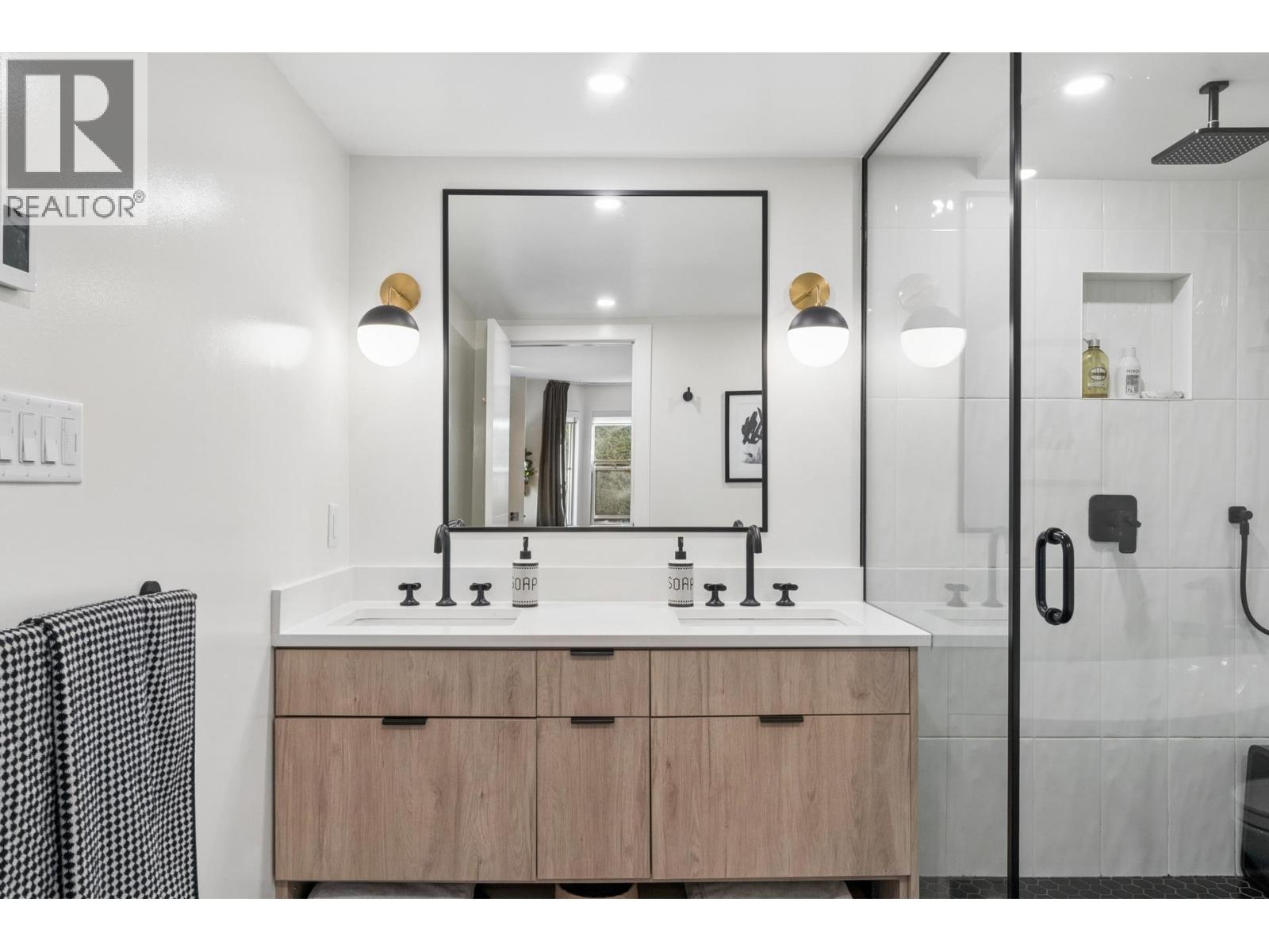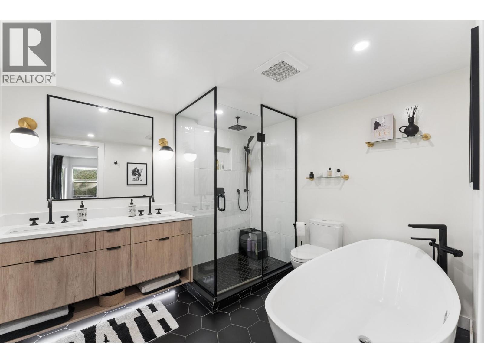 | Stunningly renovated townhome in sought-after Nahanee Woods. Offering 3 bedrooms, 3 bathrooms, and over 1,800 square ft on two levels, including a spacious main-floor primary bedroom. The foyer opens to an open-concept living and dining area with vaulted ceilings, gas fp, and white oak stairs with metal and glass railings. Tile flooring with radiant in-floor heating spans the main level, complemented by a recent heat pump and A/C upgrade. The open kitchen features sleek white cabinetry, quartz counters, a large island, and Thermador appliances. A flex space with a second gas fireplace opens to a private west-facing deck. The main-floor primary retreat includes bay windows, walk-in closet, and renovated 5-piece ensuite. Upstairs are two generous bedrooms, a 4-piece bath, and flexible landing. Quietly located near parks, shopping, recreation, schools, and trails. (id:5347) | |||