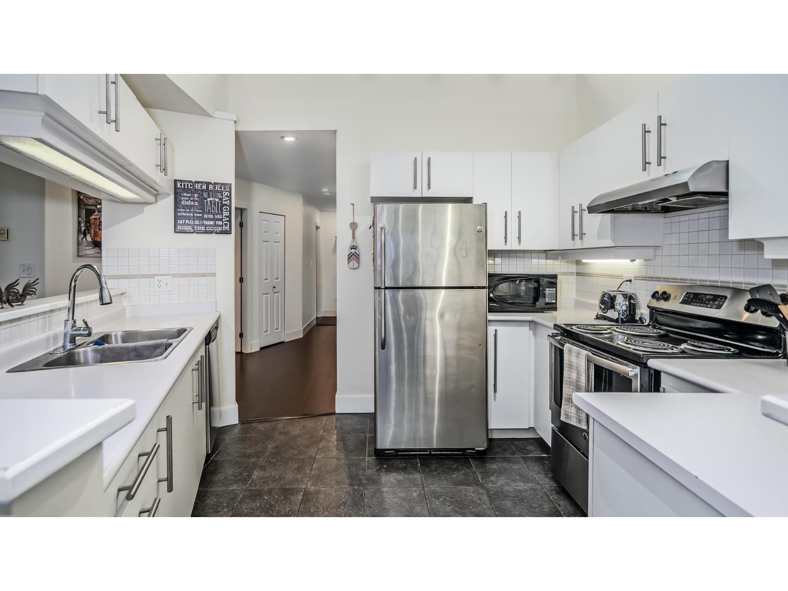 | Welcome to Monique Place, a boutique hidden gem in the heart of Central Abbotsford. This rare, top-floor corner penthouse offers over 1,200 sq. ft. of bright, airy living space defined by soaring vaulted ceilings and expansive windows. The unique building design features only 12 units with private exterior entrances, providing a house-like feel with the security of a condo. Inside, enjoy a spacious 2-bedroom, 2-bathroom layout featuring a cozy gas fireplace, a large in-suite laundry room, and a private balcony. This unit also includes the rare bonus of two secure underground parking stalls and a storage locker. The location is unbeatable for convenience. You are steps McCallum Junction and a few minute drive from Mill Lake, Abbotsford Hospital, Seven Oaks Shopping Centre and Hwy #1. (id:5347) | |||
