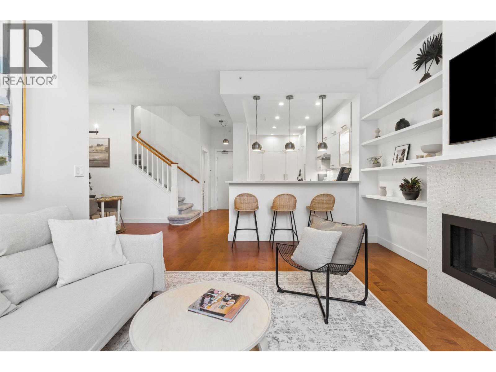 | Located in the heart of Arbutus Walk, this Mozaiek townhome blends classic redbrick charm with modern design. The main level features an open layout with a redesigned kitchen, integrated appliances, quartz countertops, and gas cooking, plus a thoughtful office. Upstairs, the bright, well-proportioned bedrooms offer smart storage and a flexible bonus space-ideal for a home gym or additional WFH setup. Enjoy spa-inspired renovated baths with a steam shower, a private front patio entry, and access to a shared rooftop deck perfect for entertaining. Complete with two parking stalls, a storage locker, bike room, and workshop-just steps from parks, schools, cafés, and the best of Kitsilano living. PRK STL 21/22 STRG LRK 103. Open House Sat/Sun 2-4PM! (id:5347) | |||