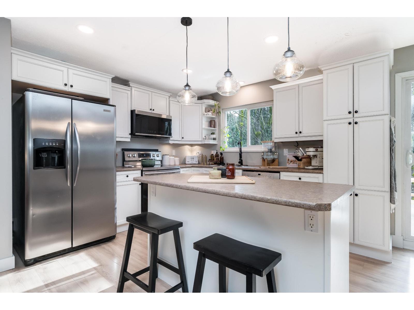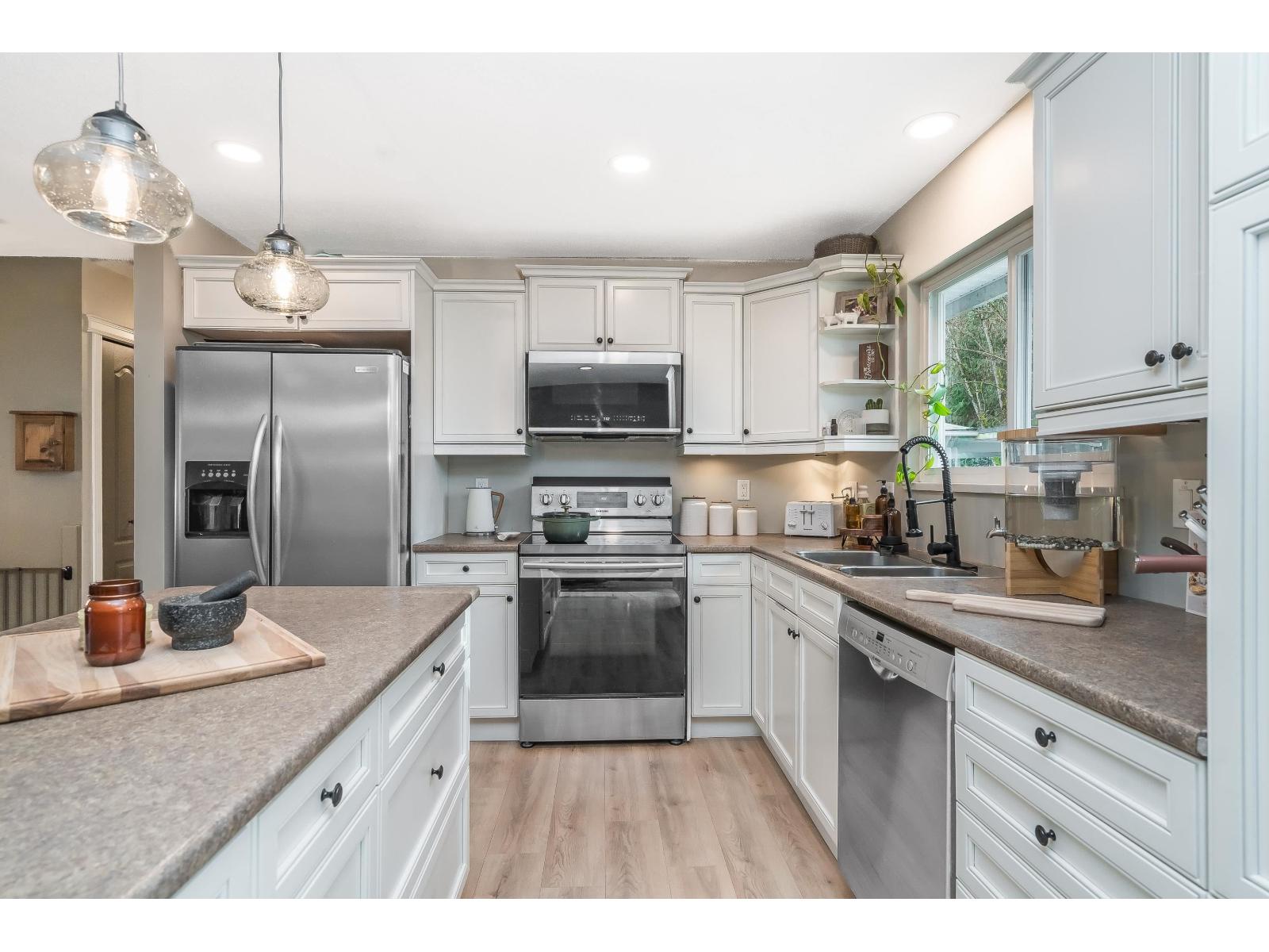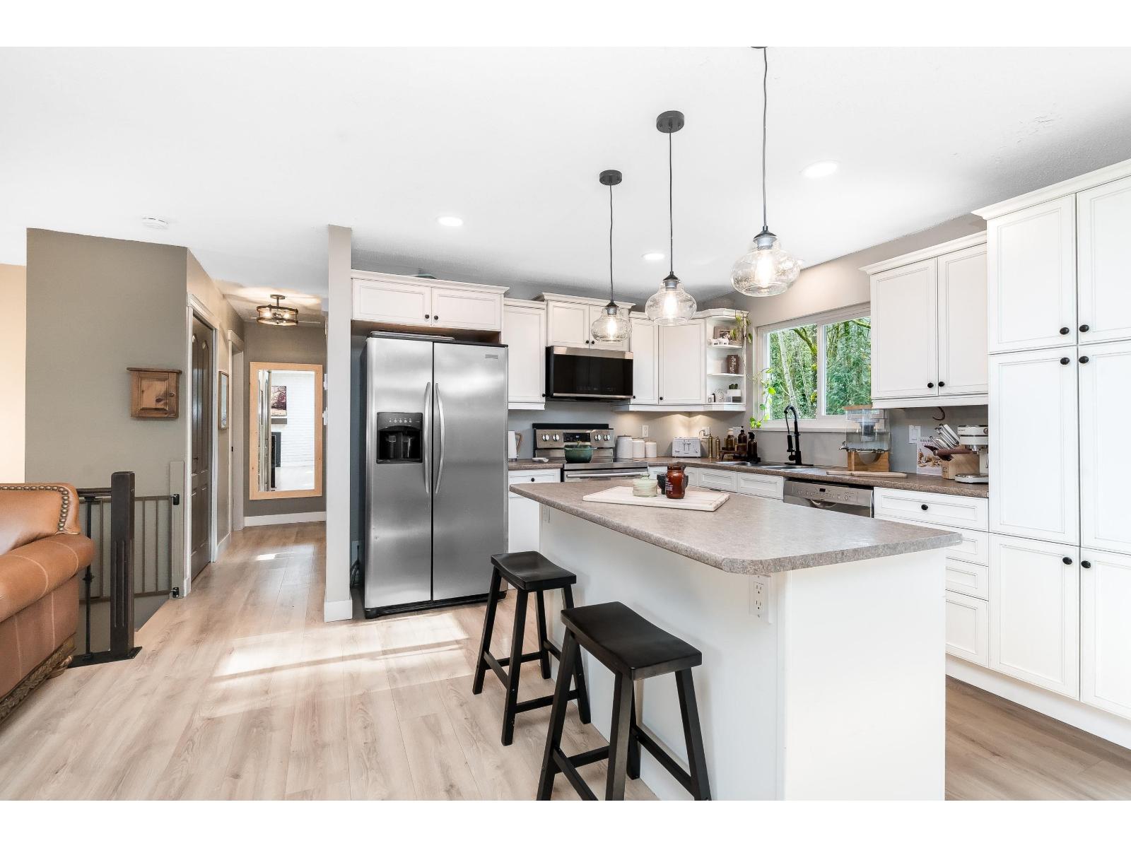 | Beautiful 4 bed, 2 bath suite-able home on a quiet street in East Abbotsford, close to excellent schools, transit and quick hwy access. A fantastic starter home for families or investors. The main features a cozy new stunning gas fireplace (2024) and striking brick feature wall, with new flooring and updated lighting adding a modern touch. The basement rec room is wired for a theatre setup with surround sound, perfect for movie nights. Recent updates include roof, gutters and soffits (2021), new flooring and gas fireplace (2024) and a renovated lower bathroom (2025). Enjoy the level backyard with deck backing onto private greenbelt with a creek, RV parking & 2 large storage sheds. Best of East Abbotsford's most desirable neighbourhoods. (id:5347) | |||