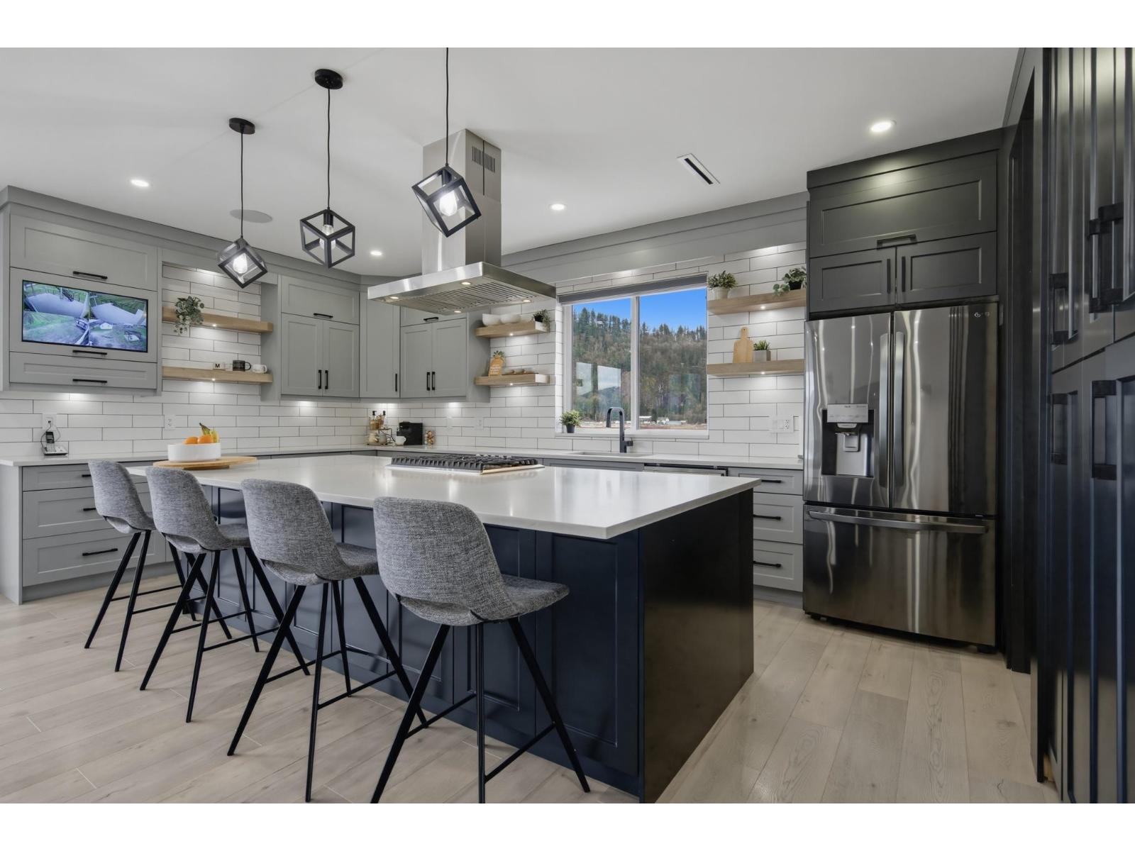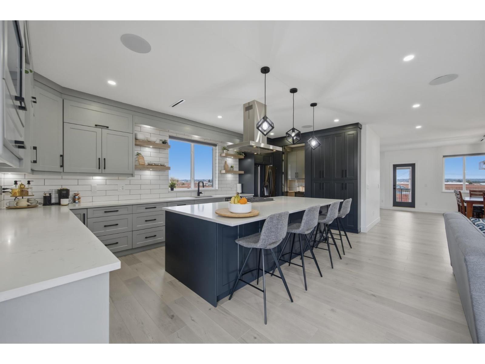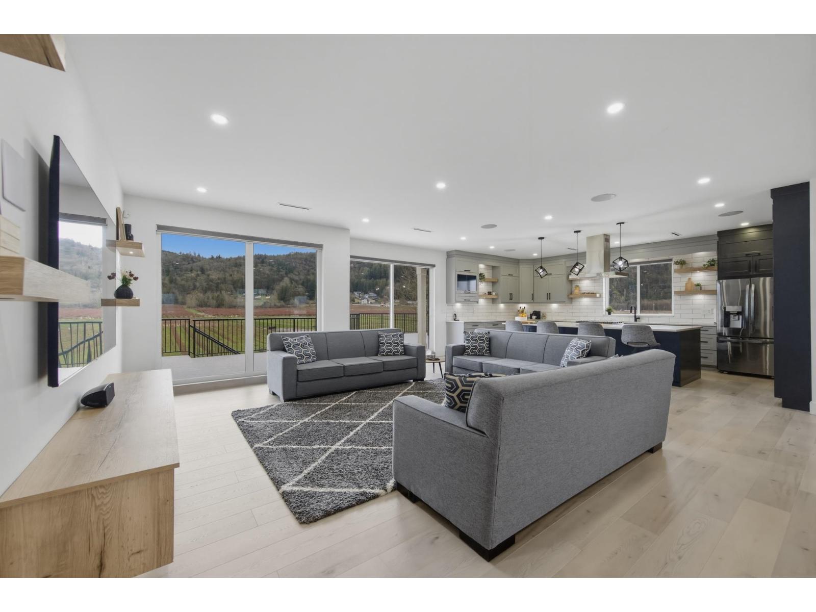 | Welcome to 5390 Beharrell Road, a stunning 16.5-acre estate in Abbotsford featuring an approximately 6,500 sq.ft. luxury home. Extensively renovated, it offers 9 bedrooms and 8 bathrooms, including 5 main-floor bedrooms each with its own ensuite and a grand primary suite with breathtaking mountain views. Enjoy a bright open-concept kitchen with full spice kitchen, large living and family rooms, plus a luxurious theatre room, spacious recreation area, and stylish bar. A separate 2-bedroom suite provides excellent rental or multigenerational living options. The farm includes 12 acres of Duke and 2.25 acres of Calypso blueberries with outstanding crop production, delivering strong yields and impressive income potential. (id:5347) | |||