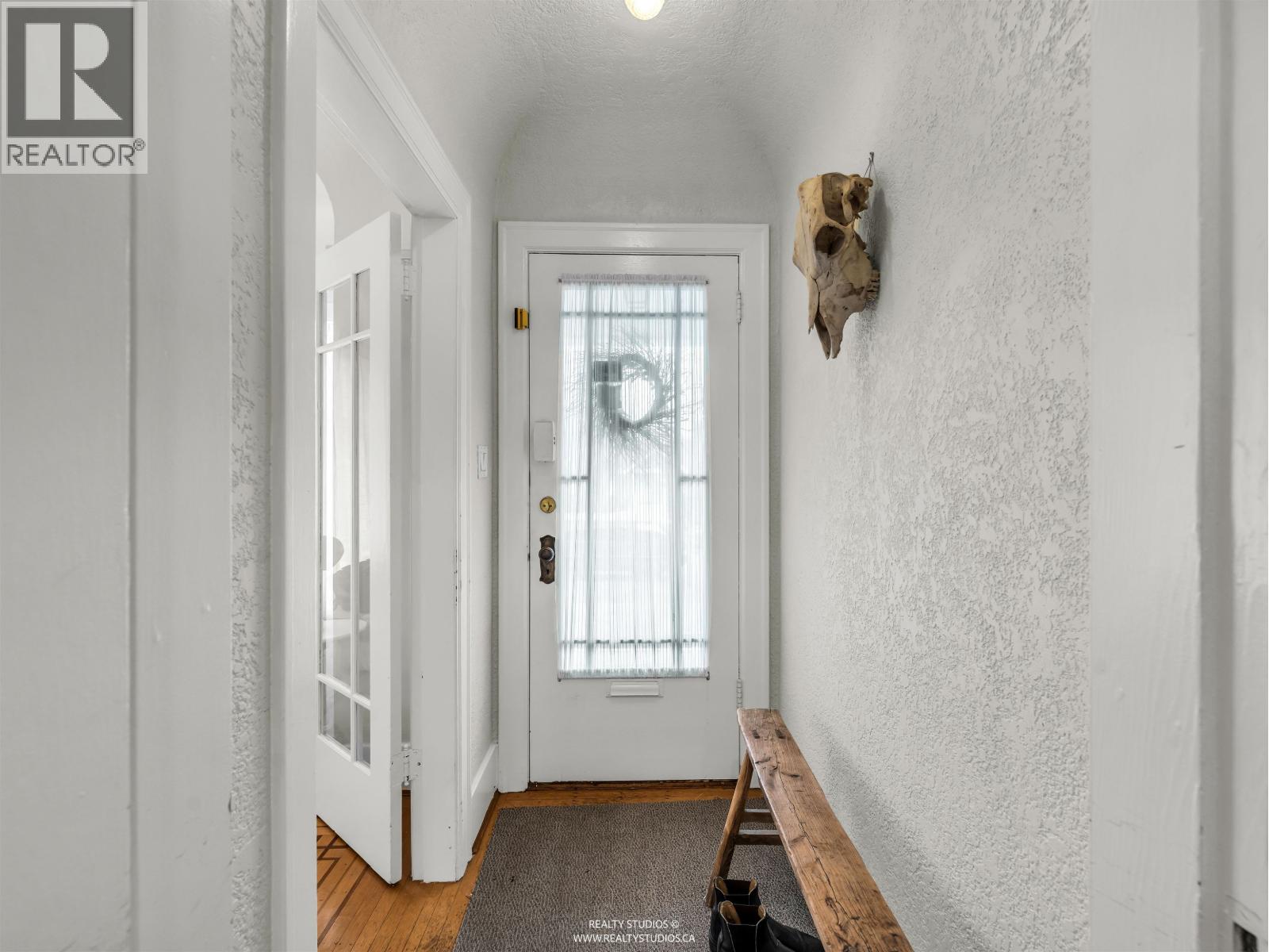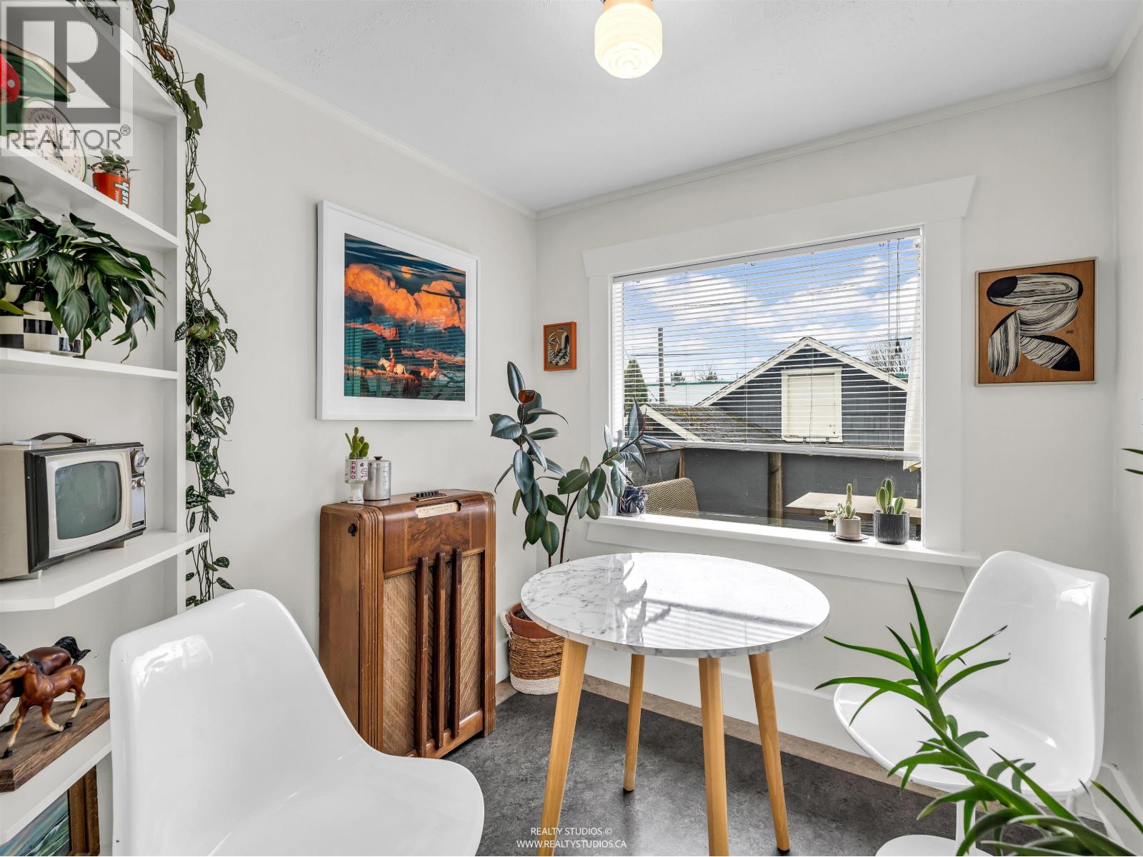 | Classic 1930s character home on a corner lot of quiet traffic calm street. East-facing with original oak inlaid floors with walnut detail, wood-burning fireplace with brick surround, and timeless built-ins. Bright kitchen with updated cabinet fronts, breakfast nook and deck access. Beautiful rounded ceilings throughout. Flexible main-floor den/bedroom plus full bath. Upstairs offers two bedrooms including a primary with built-in drawers and ample storage. Double garage with workshop and attic storage. Large ground level legal bachelor suite with kitchen and bath provides excellent passive income. Walking distance to thriving Fraser Street! A special property waiting for its new owners!! (id:5347) | |||