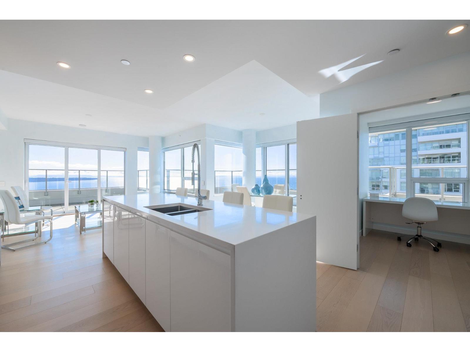 | PANORAMIC OCEAN VIEWS!! SOUTH WEST Exposed SUB-PENTHOUSE in Miramar by Bosa Developments. A Truly ONE-OF-A-KIND Offering. Overlooks the Inner Courtyard with 750 sq. ft. wrap around Balconies. Open and Spacious Sundrenched Living area with a High end Kitchen, Gas Range, Island, and Large Pantry. 2 Bedrooms plus a Den. Primary Bedroom boasts Walk-in-Closet and wardrobe. Full Ensuite with double sinks. 4th floor courtyard includes and outdoor pool and hot tub. Gym and Putting Green. Located near various shops, restaurants, and banks. On site Concierge. 3 Secure Underground Parking spots (1 is EV) and Storage Locker. (id:5347) | |||