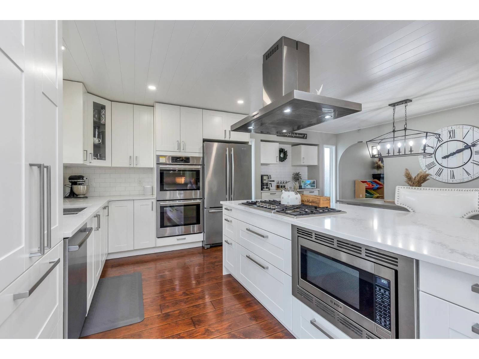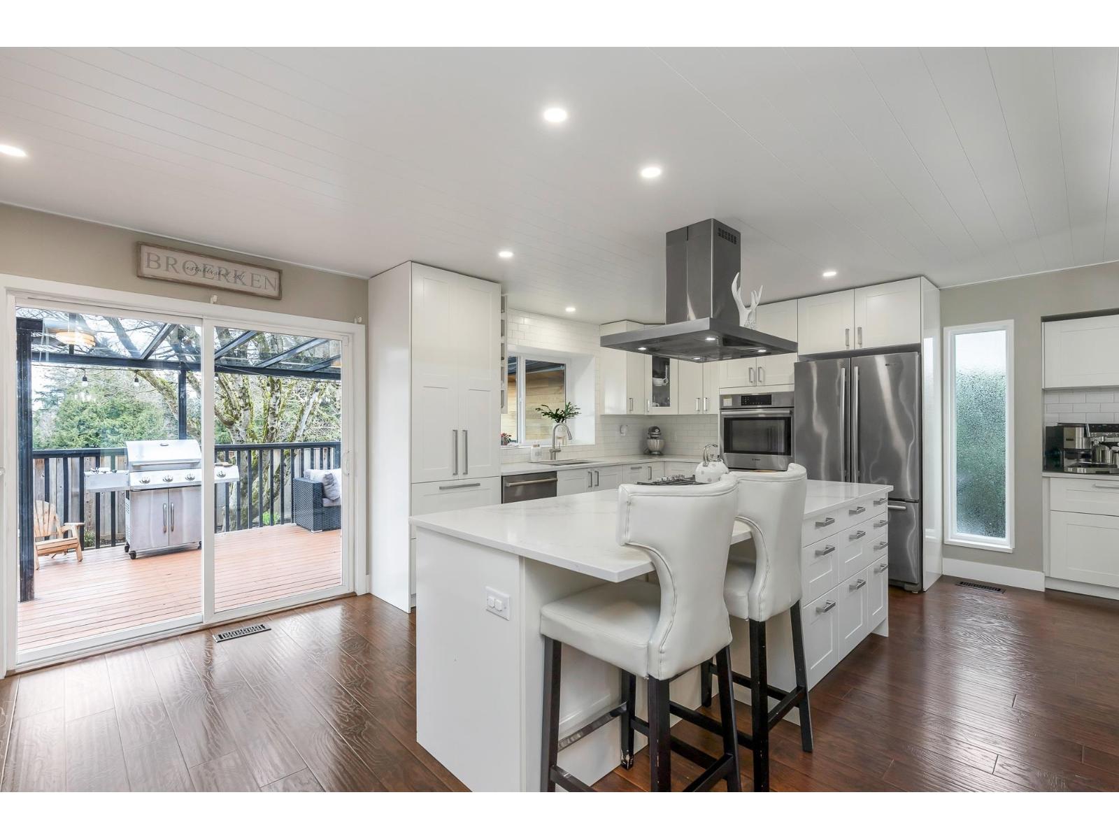 | Fantastic home with tasteful, modern renovations in a great East Abbotsford subdivision. Very well cared for 3 level split with a stunning kitchen including a large island and high end appliances. Plenty of cabinets and storage space, including a practical mud room area off garage entrance. Spacious primary bedroom with walk in closet and 3 pce ensuite with updated shower. Den or office on the main floor. Walk out to your entertainers covered sundeck and hot tub area for added enjoyment. Private fenced backyard with storage shed. RV parking and an oversized garage. Desirable family area. Close to Ledgeview Golf Course, walking trails and parks. Fantastic value for a home that you can be proud of right away. (id:5347) | |||