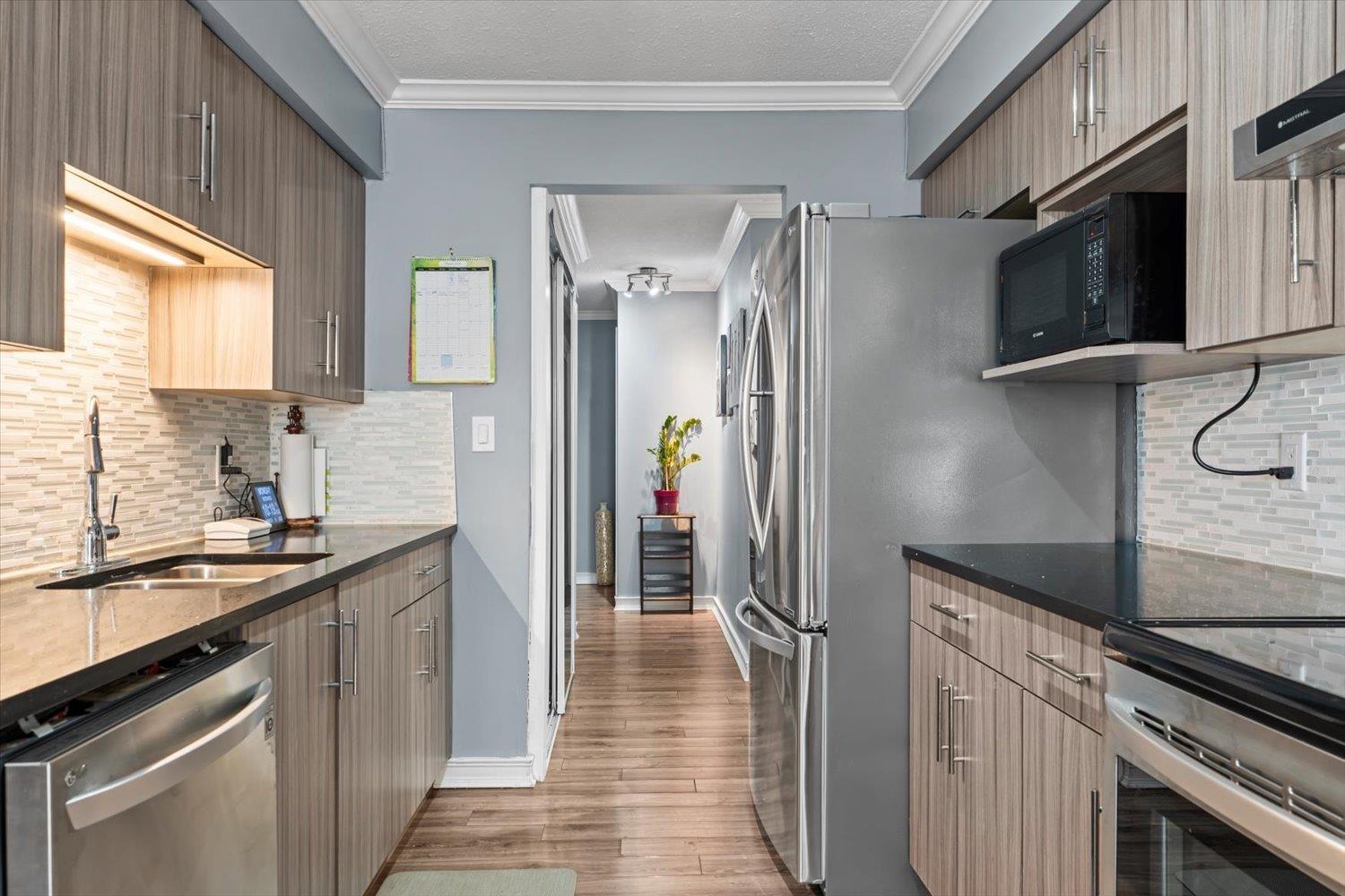 | Welcome to The Nottingham, a quiet and friendly 55+ community in a prime central location. This bright, fully renovated unit offers over 1,000 sq ft with a beautiful modern kitchen, updated walk-in shower, air conditioning, and convenient in-suite laundry. Enjoy the sunny south-facing wrap-around balcony with an enclosed sunroom-perfect for plants or relaxing with your morning coffee. The well-maintained building features secure underbuilding parking and plenty of visitor parking. Ideally located with a bus stop right outside and within easy walking distance to Sevenoaks Mall, Mill Lake, Rotary Stadium, shopping, restaurants, and everyday amenities. Comfortable, low-maintenance living in a welcoming community. (id:5347) | |||