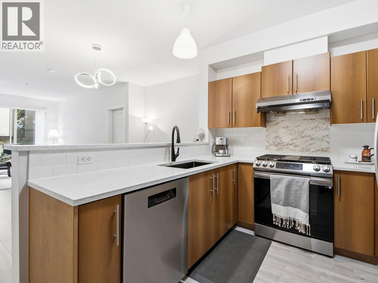 | Welcome to Serenity by Polygon ! This exquisite one-level 2-Bedroom townhome offers an open concept layout, 9 ft ceilings, oversized windows with plenty of natural light, modern kitchen equipped with high-end appliances. Enjoy cozy evenings by the fireplace in the living room. A large patio is perfect for outdoor entertaining. Upgrades in 2021, 2024 and 2026 include new flooring, new painting, all new appliances, new window blinds and new kitchen countertops. Just 2 minutes walk to the bus, daycare, SFU & Cornerstone Shopping Village with fresh groceries, restaurants, bank & coffee shops. Strata fee INCLUDES gas. BONUS: 2 parking stalls & 1 locker. Open House : March 15 (Sun) 2-4pm. (id:5347) | |||