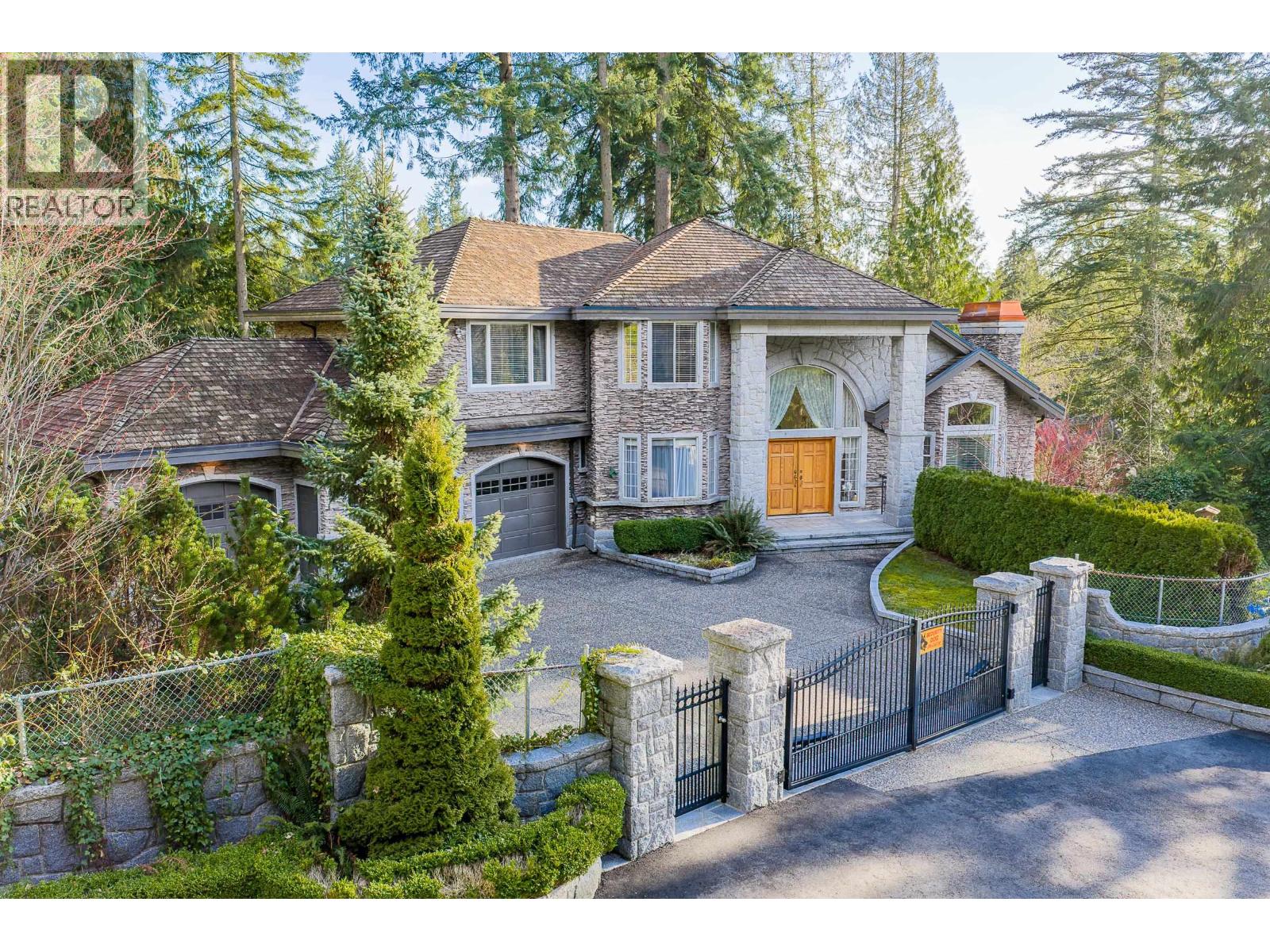 Sophisticated Anmore estate with full one-acre, private lot and SUBDIVISION POTENTIAL. Surrounded by mature landscaping, this residence features an upper and a lower driveway equipped with electric gates for a grand entrance. Step inside to the inviting foyer with beautiful curved staircase, front living room with vaulted ceiling, and a spacious kitchen with access to the large, covered deck, allowing for seamless indoor-outdoor living. A true entertainer´s dream. The main also features a full bathroom and laundry room with second staircase to upper level, where you´ll find 4 large bedrooms and 3 bathrooms including the stunning en-suite. Down offers a spacious suite, full bathroom, media room and outdoor patio. Three car garage and endless opportunities in this beautiful neighbourhood. (id:5347)