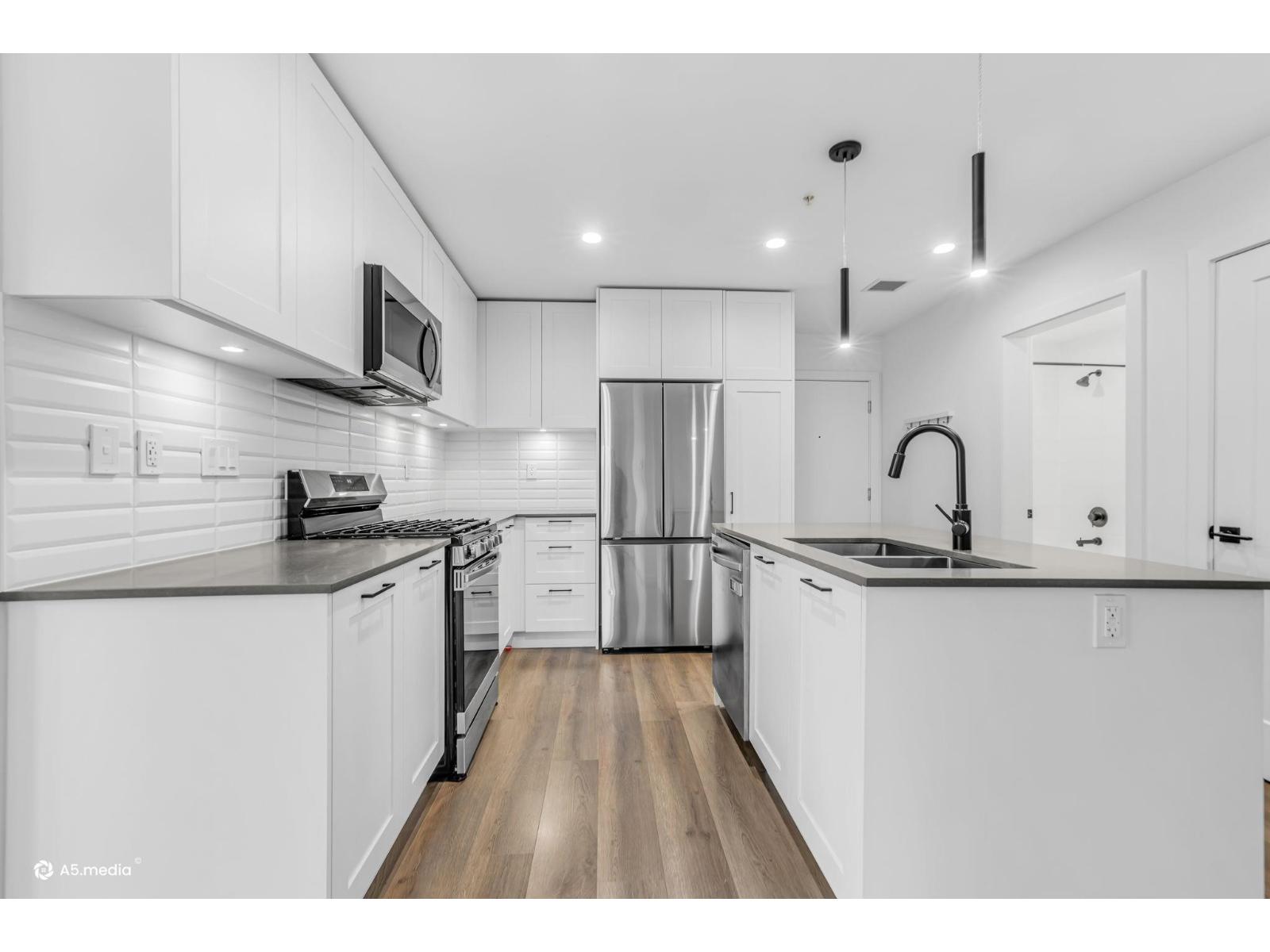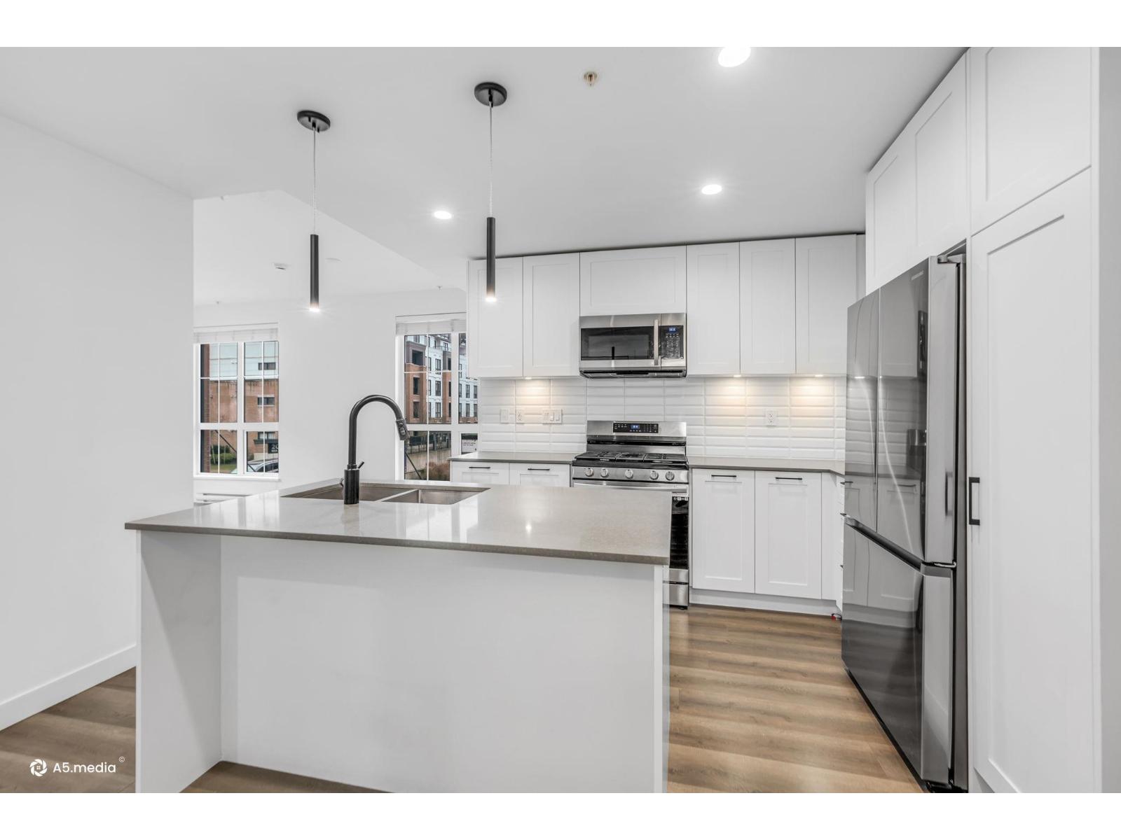 | LATIMER VILLAGE in Langley! Beautiful, bright corner unit with 2-bed, 2-bath in 866 sq ft. This open, sun-filled layout features 9-ft ceilings , laminate floors, a large bright white kitchen with gas range. Spacious master with large closets and a luxurious 5-piece ensuite. Stacking washer and dryer, a deck off the living room, two parking stalls, and a storage locker. The building also features a rooftop deck with a bar-b-q area, playground for kids, community garden plots and picnic tables. Steps to restaurants, transit and amenities-perfect blend of convenience and comfort. (id:5347) | |||