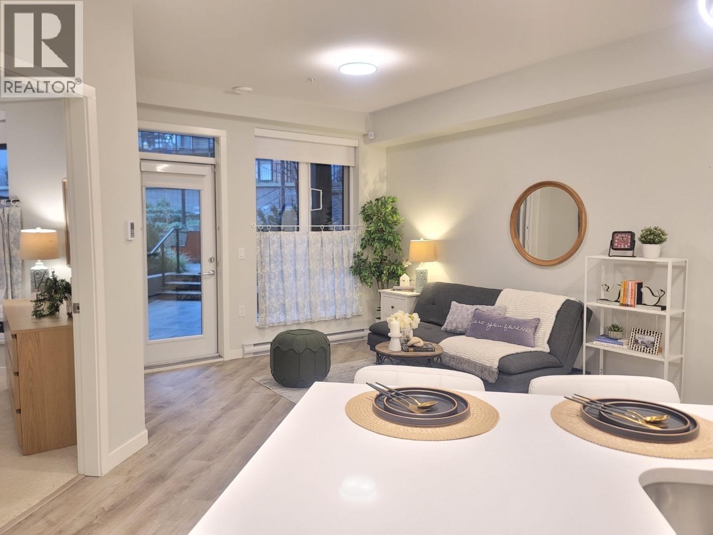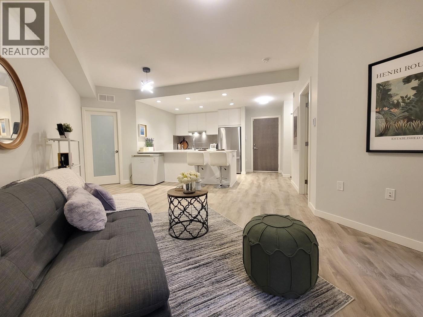 | Experience modern urban living in this brand new 1BEDROOM + DEN home in the vibrant Burquitlam community. This stylish residence features a bright open-concept layout, high ceilings, and large windows overlooking the quiet courtyard. The contemporary kitchen is equipped with quartz countertops and stainless steel appliances, perfect for both everyday living and entertaining. The versatile den offers an ideal space for a home office, study area, or additional storage. Enjoy the convenience of in-suite laundry and unwind on your extra-large private patio. Residents benefit from excellent building amenities including a fitness centre, amenity room, and beautifully landscaped courtyard. Prime location just steps to shopping, restaurants, and transit. ***NOTE-1 EVPARKING STALL AND STORAGE *** (id:5347) | |||