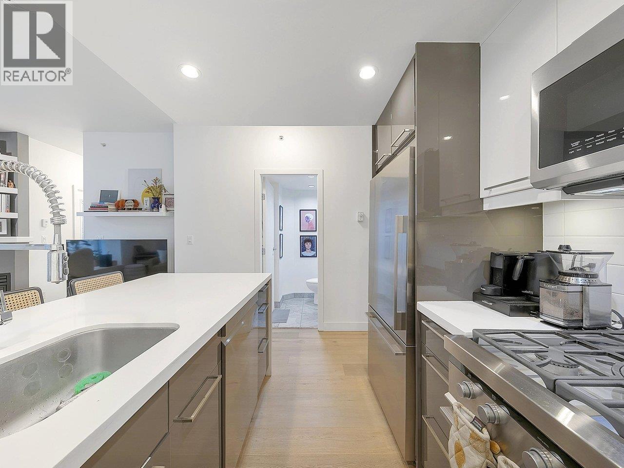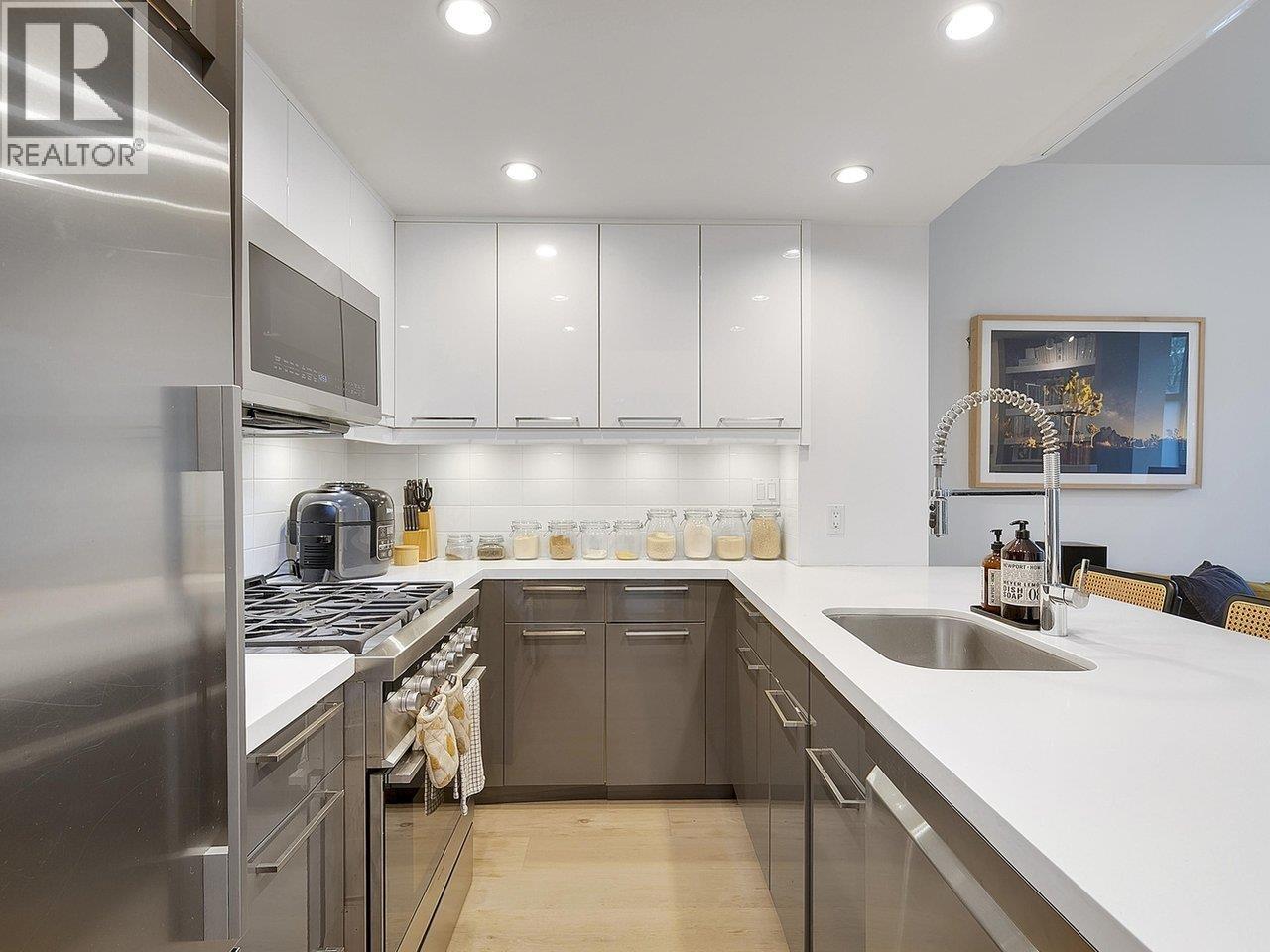 | This beautifully renovated 1 level, 2 bed/2 ba corner-unit townhome, flooded with an abundance of natural light, at the well-appointed Savoy awaits you. Enter from the street (walk-up townhouse) or from private back entrance & large private courtyard patio within the building to this air-conditioned unit with open concept kitchen, breakfast bar, stainless steel high end appliances & high ceilings. Amenities incl indoor pool w/skylights allowing for natural light & patio, well appointed gym, hot tub, saunas, games room guest suite and more. 1 parking & 1 full sized storage locker. Walking distance to everything. Strata plan shows 735sq ft, professionally measured @ 746 sq ft, buyer to confirm to their satisfaction. Call your agent today to view this gorgeous home. (id:5347) | |||
