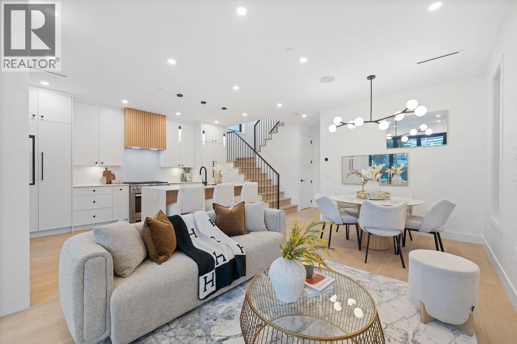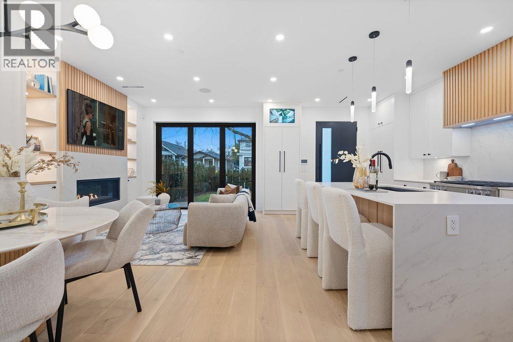 | Built by renowned Westside builder Mann Bros Construction, this brand-new front 1/2 duplex in the heart of Kitsilano is a masterpiece of design and craftsmanship, with no detail spared. This 3 bed, 4 bath home blends timeless style with modern comfort. The main floor boasts an expansive, open-concept layout with a sleek Miele kitchen, Dekton counters, custom cabinetry, and a 7-ft island. High ceilings, triple-glazed windows, radiant in-floor heat, and eclipse doors create seamless indoor-outdoor living. Features include A/C, built-in speakers, EV-ready garage, and smart home features. Spa-inspired bathrooms feature Riobel and Kohler fixtures, frameless glass showers, and smart toilets. Enjoy mountain views in one of Vancouver´s most walkable and family-friendly neighbourhoods. OPEN HOUSE: Sun Mar 15th @2-4pm (id:5347) | |||