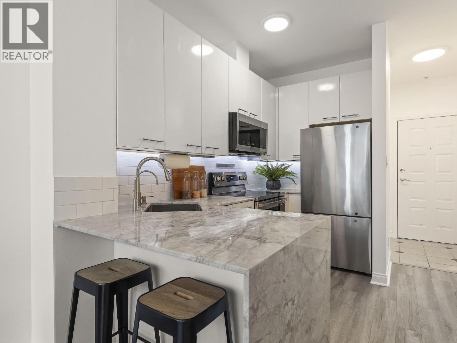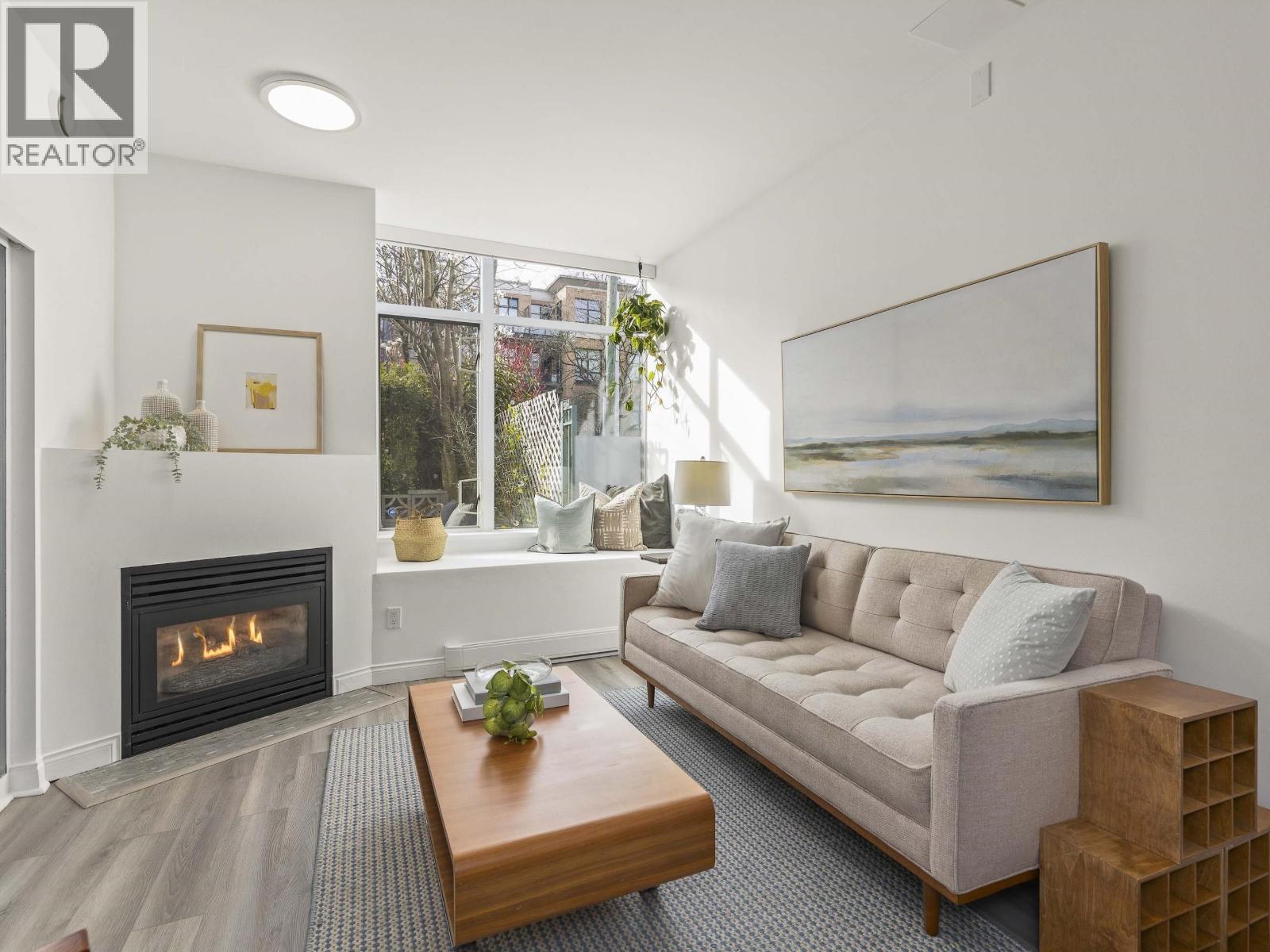 This one stands out (just like you). A rare find: a patio, south-facing and sun-soaked, but secluded - tucked behind hedges, across a green courtyard, protected by a fobbed gate - with no pet restrictions, its perfect for yours! A gas fireplace and soaring ceilings make for a cozy & bright 575sf home in the concrete Maples building, steps to Arbutus Walk and Arbutus Skytrain (2027); Settle onto natural light on the window seat or the office nook. Marble counters and vinyl-plank flooring bring a clean, modern finish. Move-in ready, with walk-through closet & flex space built-ins and motorized blinds - parking spot too! Exit to Kits via a quiet cul-de-sac, steps to Pallet Roasters, Greens, Connaught Park, Plaisir Sucre and Pete´s Meat. Come discover this exceptional home. SNEAK PEAK Thurs 530-630; Open House Sat/Sun 2-4pm. (id:5347)