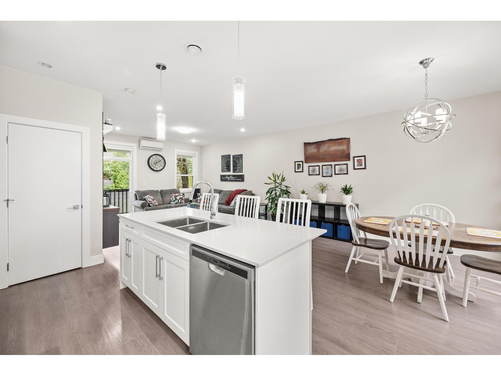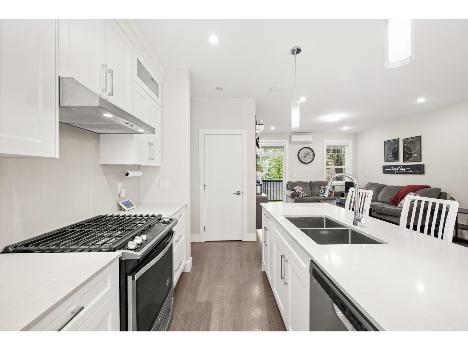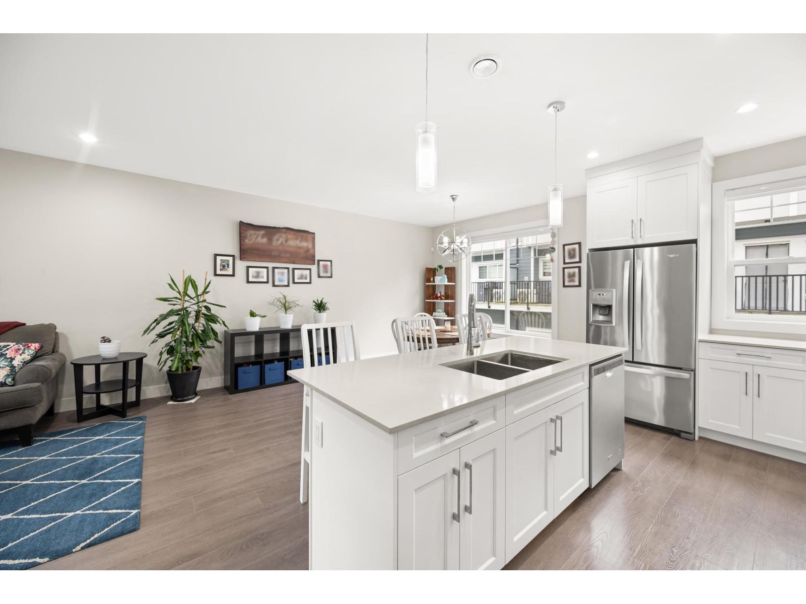 | Tucked away on the quiet side of ONYX and facing greenery, this bright and beautifully maintained 3 bedroom, 3 bathroom townhome offers 1,649 sq ft of thoughtfully designed living space that still feels like new. The main level features an open concept layout with a modern kitchen, quartz countertops, stainless steel appliances, and a spacious living and dining area that opens onto an outdoor deck. A private turf backyard below offers the perfect space for kids, pets, or relaxing outdoors. Upstairs are three well sized bedrooms including a bright primary suite with walk in closet and ensuite. A rare side by side double garage adds everyday functionality and convenience. Minutes from parks, Maddaugh Elementary, Willowbrook Shopping Centre and Willoughby Town Centre. (id:5347) | |||