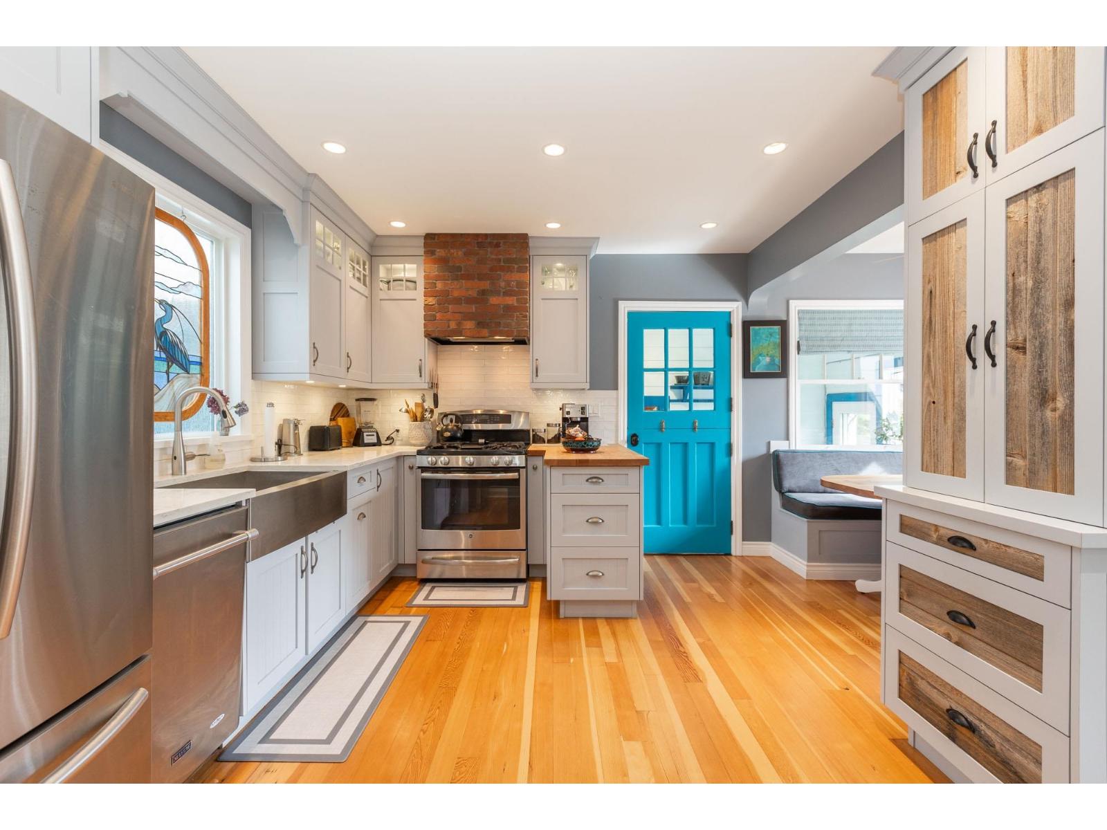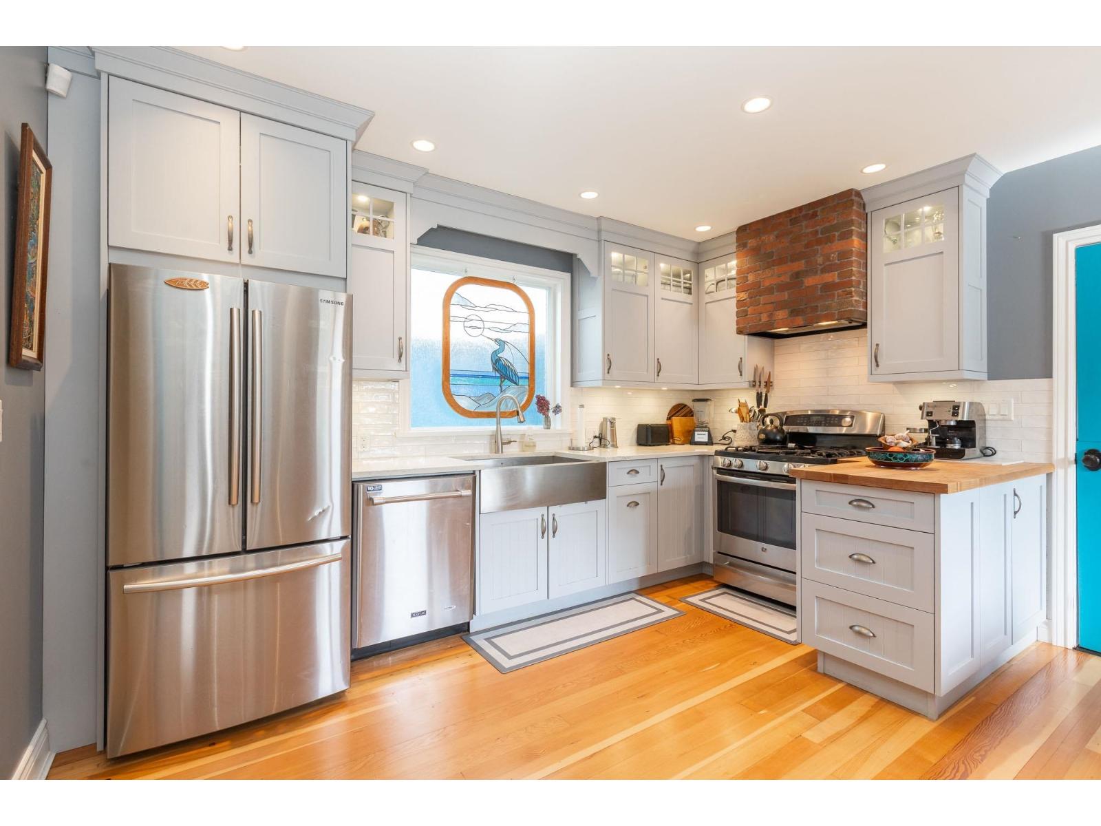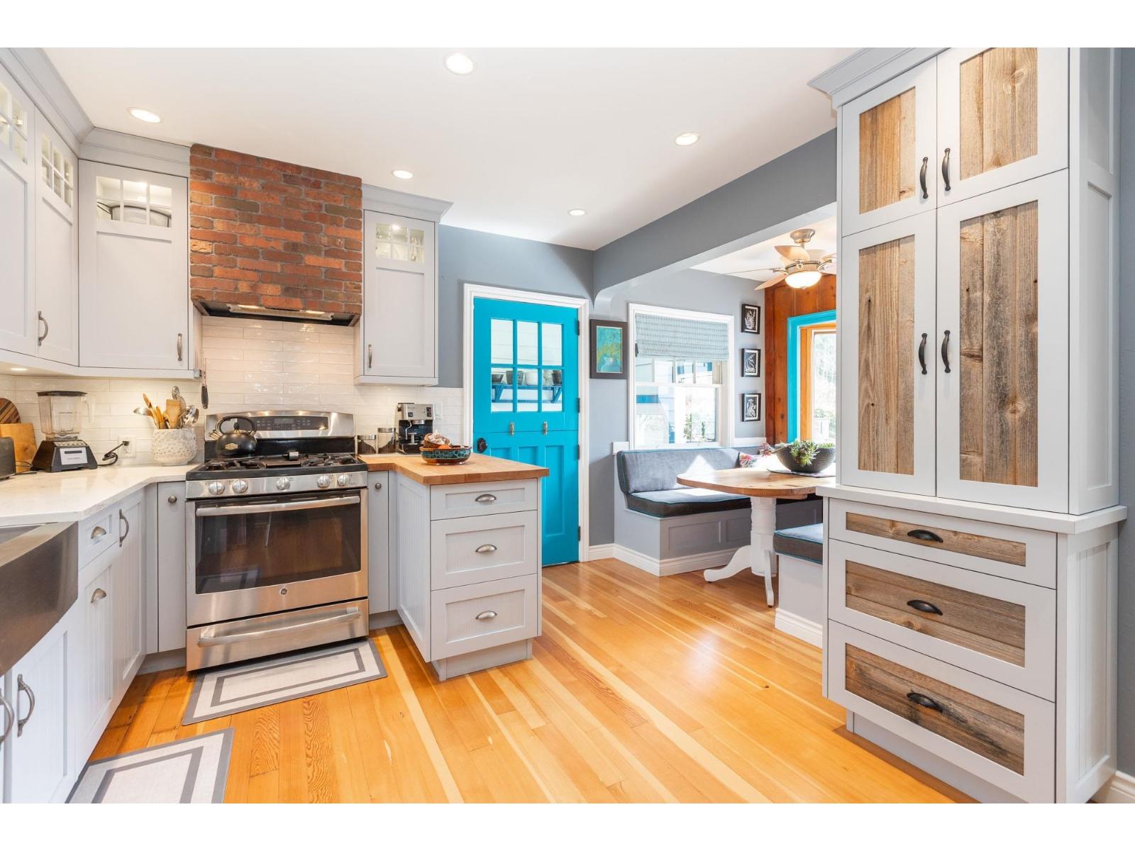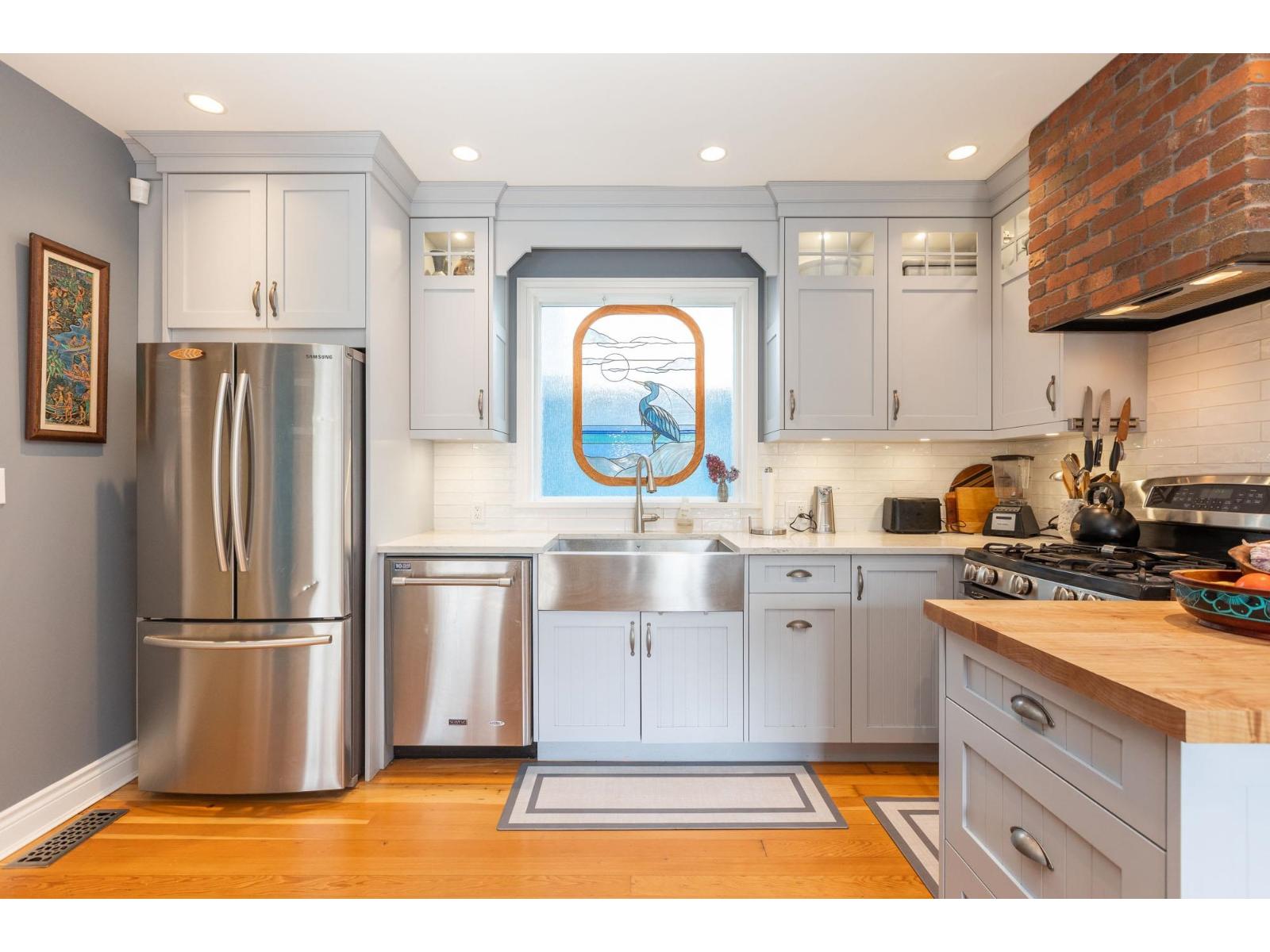 | Blending charm, character & beauty all into a unique floor plan offering 3108 sq ft of living space. Located in White Rock with the beach & shops a short walk from your door & situated on a picturesque, beautifully landscaped 8436 sq ft lot. Kitchen has been updated with white cabinetry, a farmhouse sink & S/S appliances. Cozy eating nook for casual dining & ship deck flooring in well sized dining room for larger gatherings. Huge living rm with fireplace to curl up, relax & read a book. New windows through out & the addition of skylights make this home nice & bright! Up has a primary suite with partial ocean views, 4 pc ensuite, walk in closet & den/flex space. Down includes a 1 bdrm in law/ nanny suite - great for family, or guests. One of a kind & on a great street & neighbourhood! (id:5347) | |||