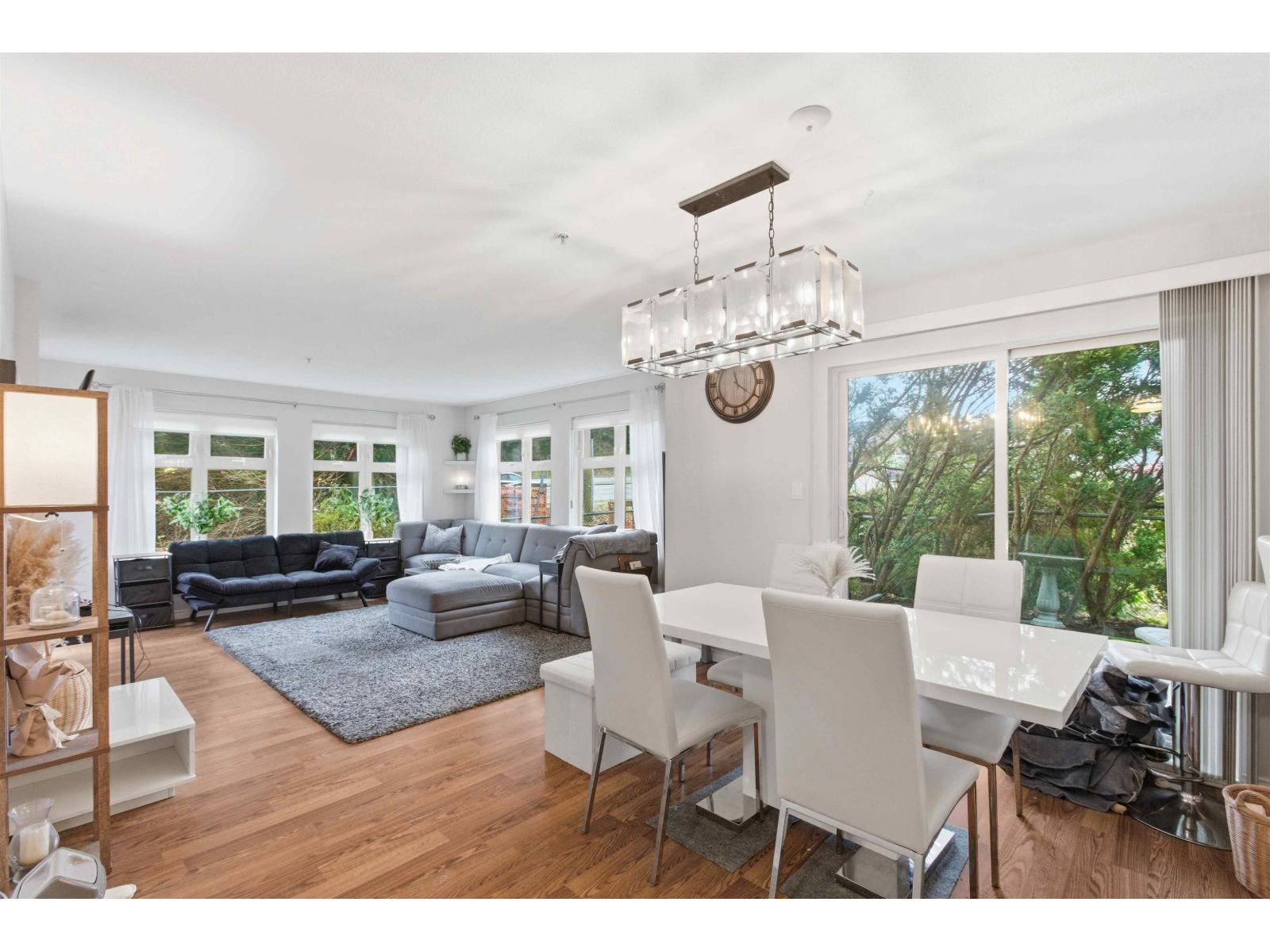 Spacious Ground Floor corner unit in a well-maintained building in the heart of Guildford. This bright north-west facing condo features 2 bedrooms, 2 bathrooms, a large living area, and a separate dining nook. Enjoy two private patios offering great natural light and outdoor space. Ideal for families with easy access to Highway 1 for convenient commuting to Vancouver or Abbotsford. Comes with 2 parking stalls and plenty of visitor parking. Located close to shopping, transit, and amenities. Book your showing today-this one won't last long! Bedroom Pictures are Virtually Staged. (id:5347)