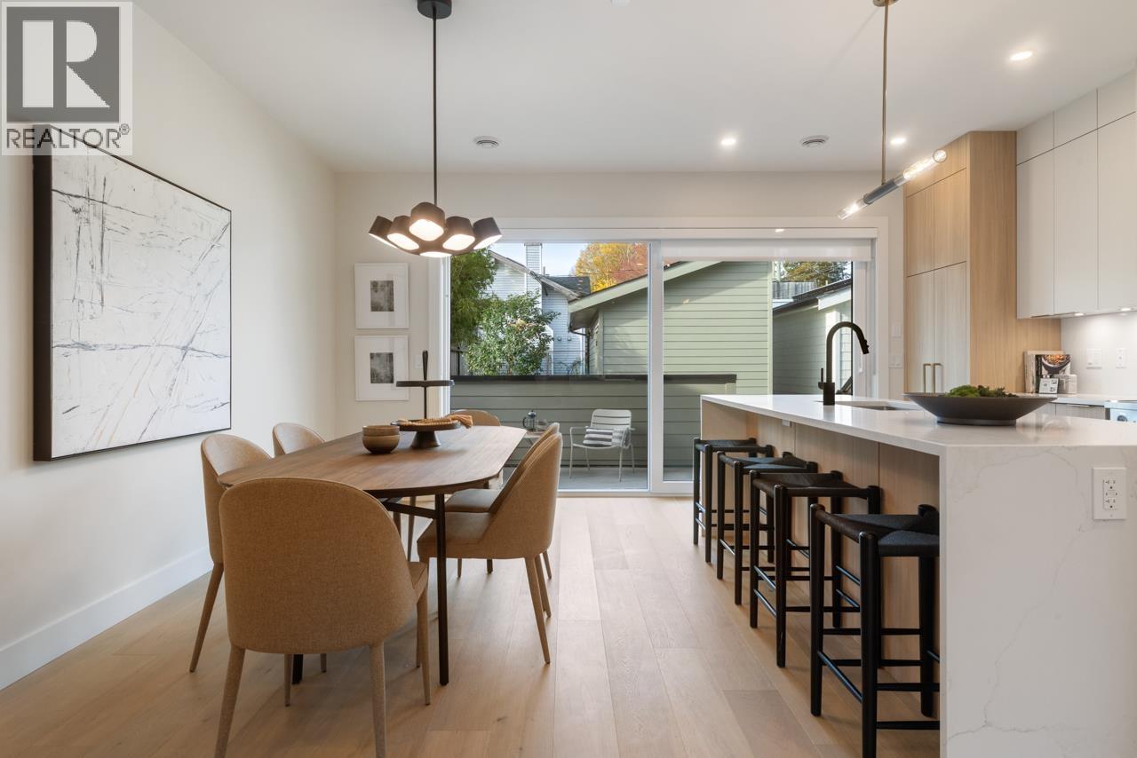 | Welcome to Templeton Green! This modern home was designed by Architrix, built by renowned Fina Homes with curated interiors by Maria De Cotiis. The bright & spacious main floor has generous living & dining spaces, powder rm + a gourmet kitchen with integrated appliances, induction range, large island & massive sliders to the covered deck. Up has 2 bedrooms, 2 baths incl the primary suite with WIC & stylish ensuite. Up top has 2 more bedrooms + flex. The 2 bed, 1 bath garden unit is perfect for extended family or rental income & the separate title gives future resale flexibility. Net Zero means enhanced insulation, high performance windows, solar panels, zero-emission heating, HRV & more. Thoughtful living in The Drive, one of East Van's most community rich neighborhoods. A truly rare offering! (id:5347) | |||