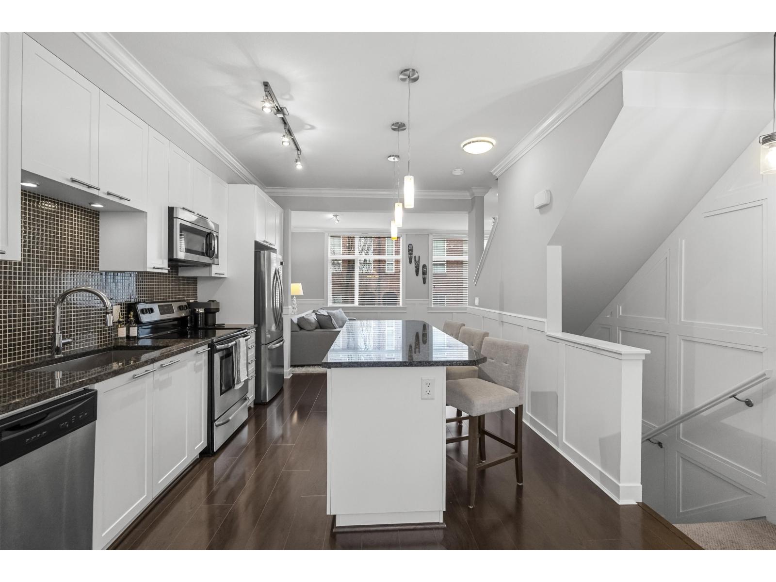 | Welcome to Breeze by Adera in the heart of South Surrey's Grandview! This meticulously maintained 3 bedroom, 3 bathroom townhome showcases West Coast design with beautiful custom moulding millwork throughout. The bright open-concept main floor features white shaker cabinetry, stainless steel appliances, built-ins with an electric fireplace, and a convenient powder room, flowing onto a spacious balcony perfect for morning coffee or evening entertaining. Upstairs offers three bedrooms and laundry. Enjoy the convenience of tandem parking for two vehicles plus visitor parking nearby. Residents have access to the clubhouse with gym, sauna, and playground. Steps to Oak Meadows Park, Grandview Corners, Morgan Crossing, and great schools Edgewood Elementary & Grandview Heights Secondary. (id:5347) | |||