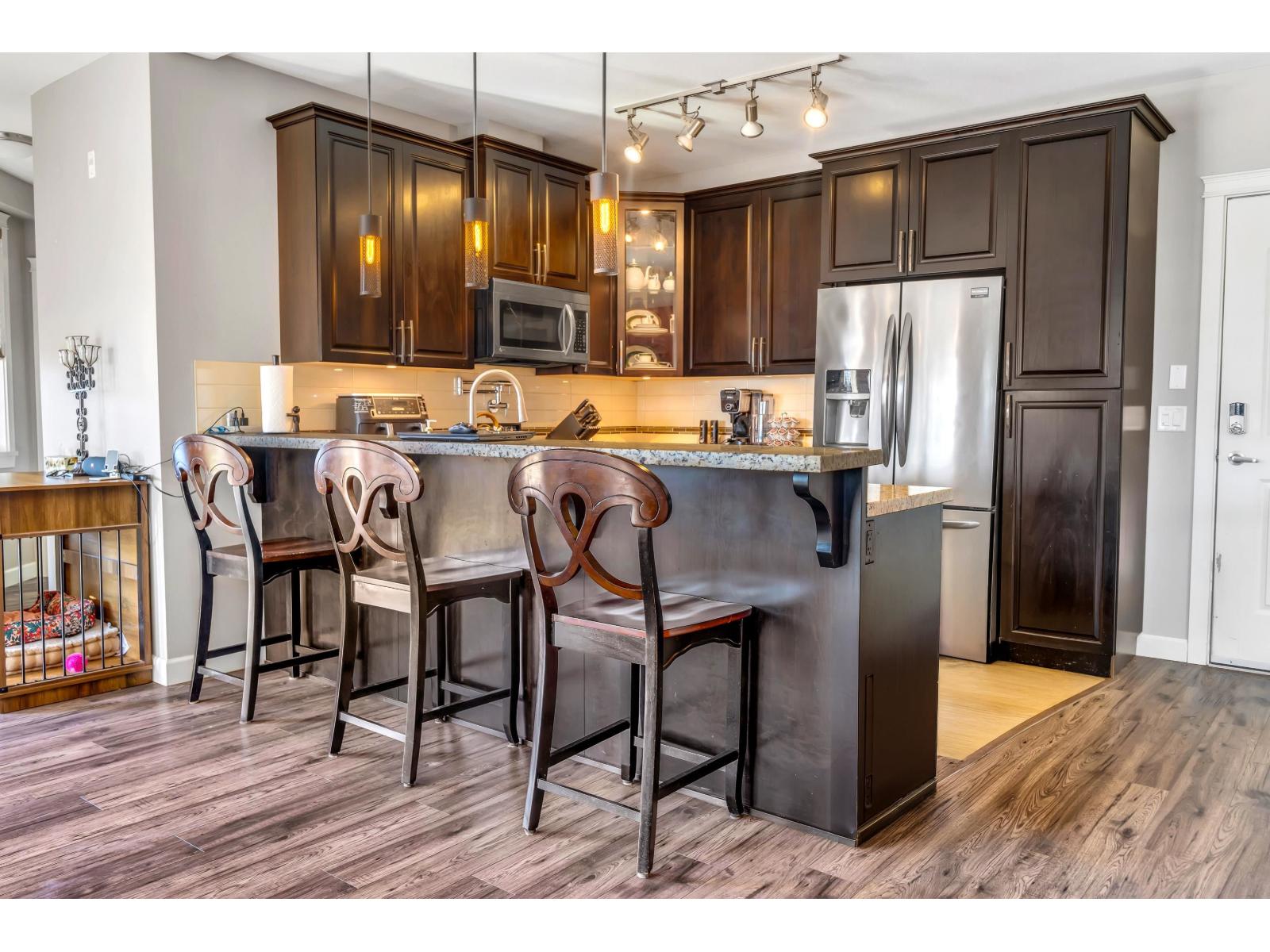 | Experience LUXURIOUS condo living at La Galleria! This rare 1-level beautifully designed home offers close to 1,500 SF of executive space plus an expansive 437 SF PRIVATE BALCONY & 166 SF ENCLOSED SOLARIUM for year round BBQ's. BRIGHT open layout with 2 primary bedrooms + den that blend luxury with everyday comfort. Spa-inspired baths feature double sinks, HEATED FLOORS and mirrors, and a floor-to-ceiling glass STEAM SHOWER. The chef's kitchen boasts GRANITE COUNTERS, under-mount lighting, STAINLESS STEEL appliances, GAS STOVE & pot filler. HEAT PUMP for efficient heating & cooling. Close to Hwy. 1, Abbotsford City Hall, shopping, rec centres & more. Access to amenity rooms & gym! CORNER UNIT! This unit is a must see!! 2 pets allowed. (id:5347) | |||